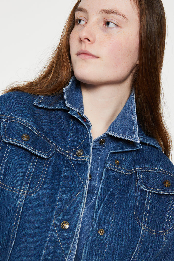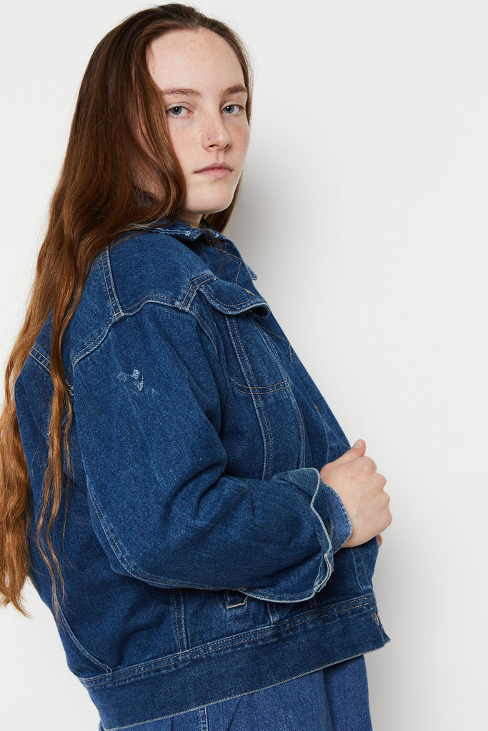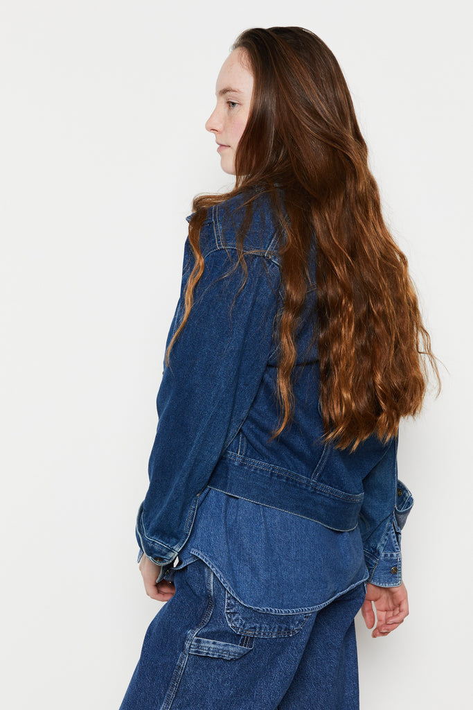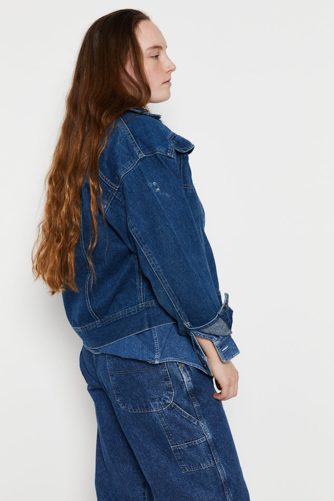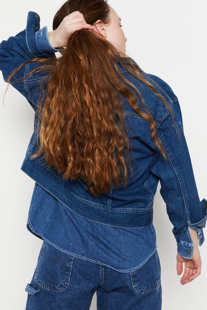FIT / Would look great on smaller sizes for an oversized fit. For reference, model is 5’9 and wears a size 4/6.