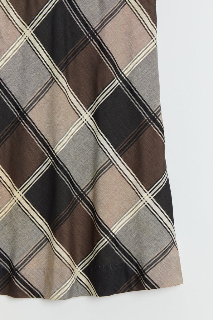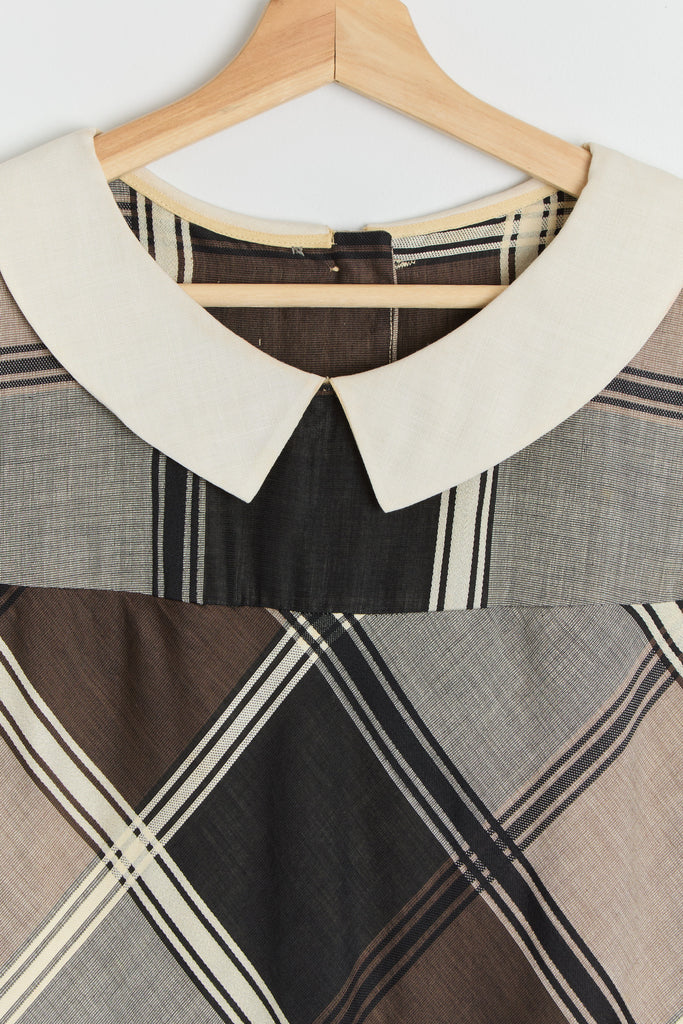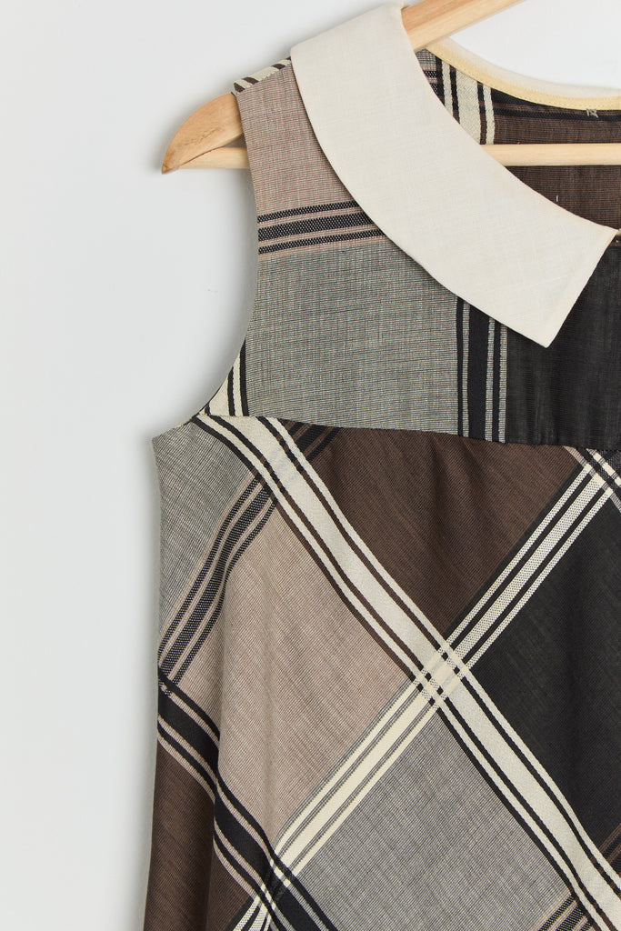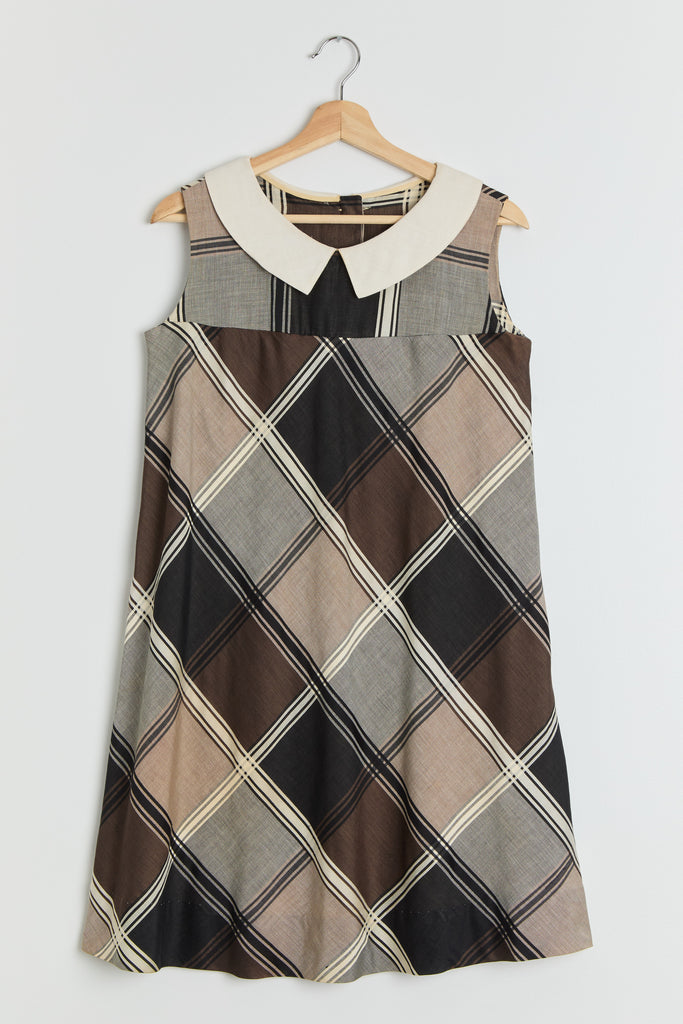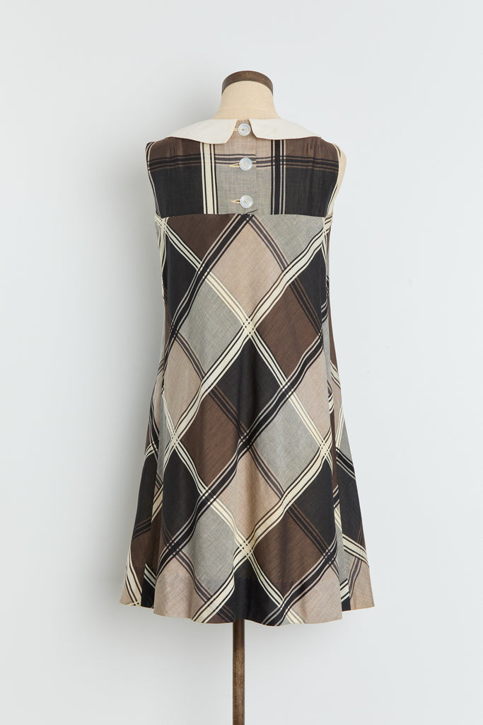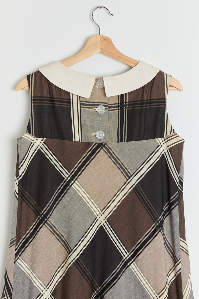 60s Brown Plaid Sleeveless Jumper Dress S/M
