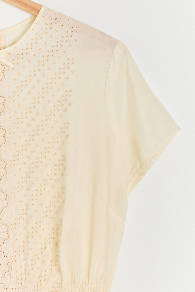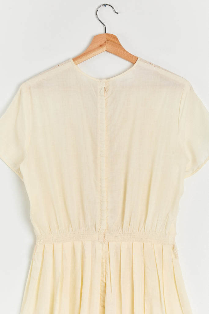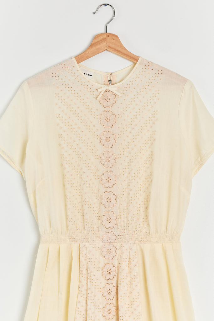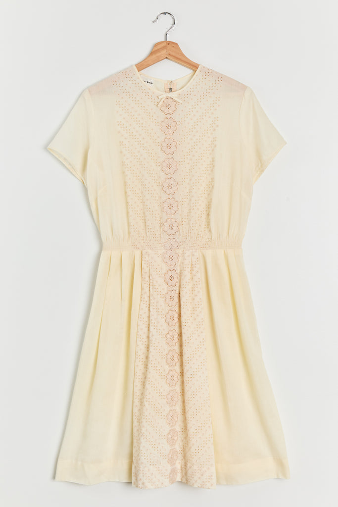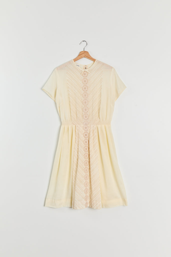 60s Buttercream Cotton Eyelet Dress M/L