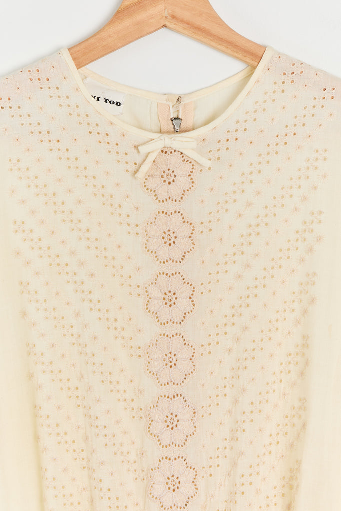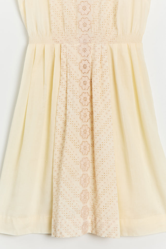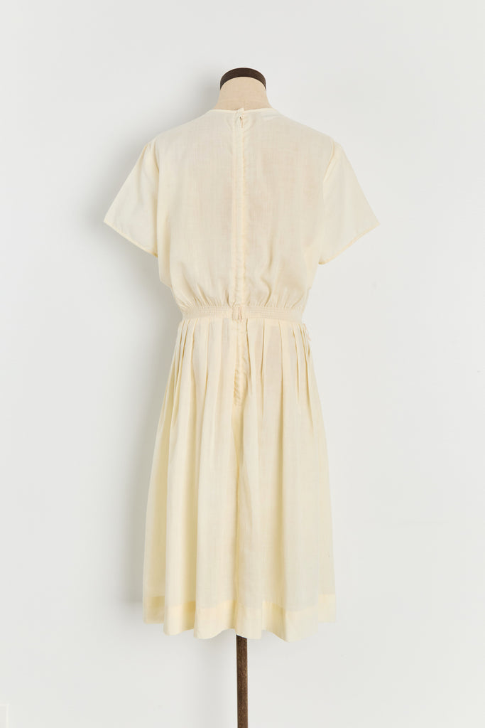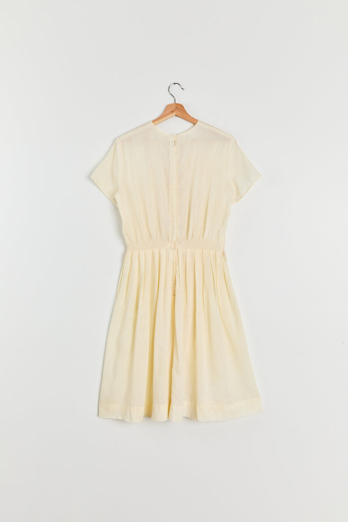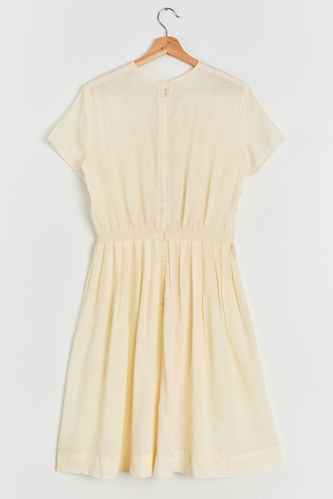 60s Buttercream Cotton Eyelet Dress M/L