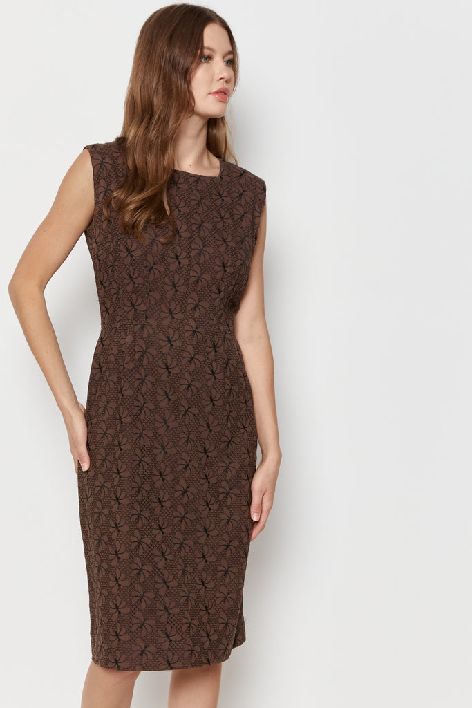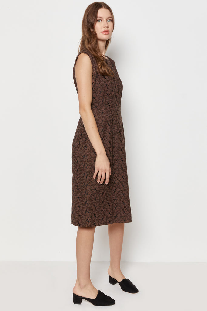 60s Chocolate Butterfly Eyelet Shift Dress L