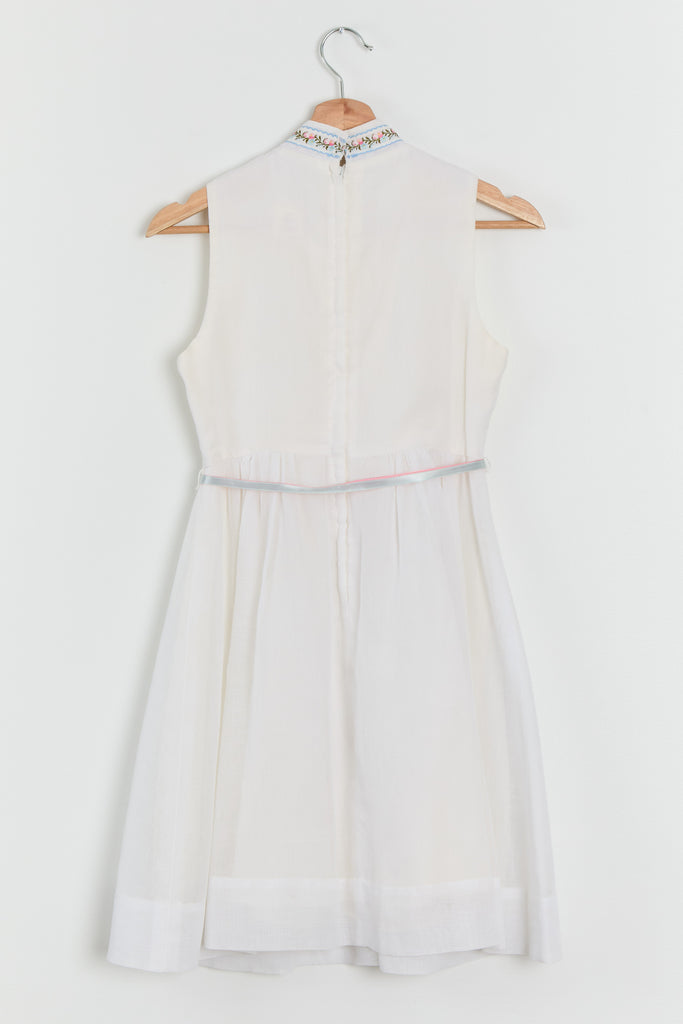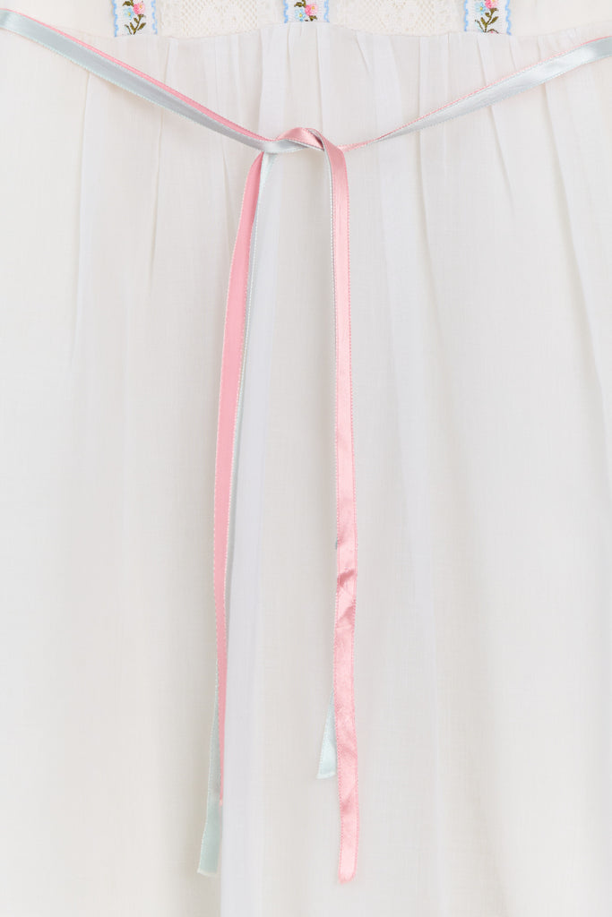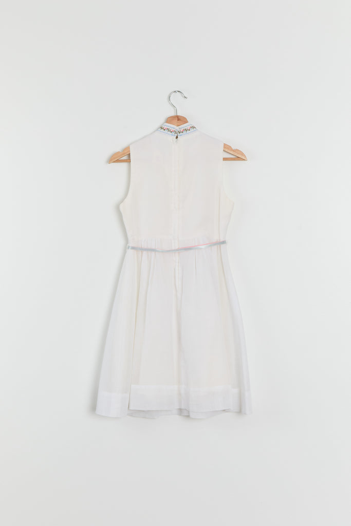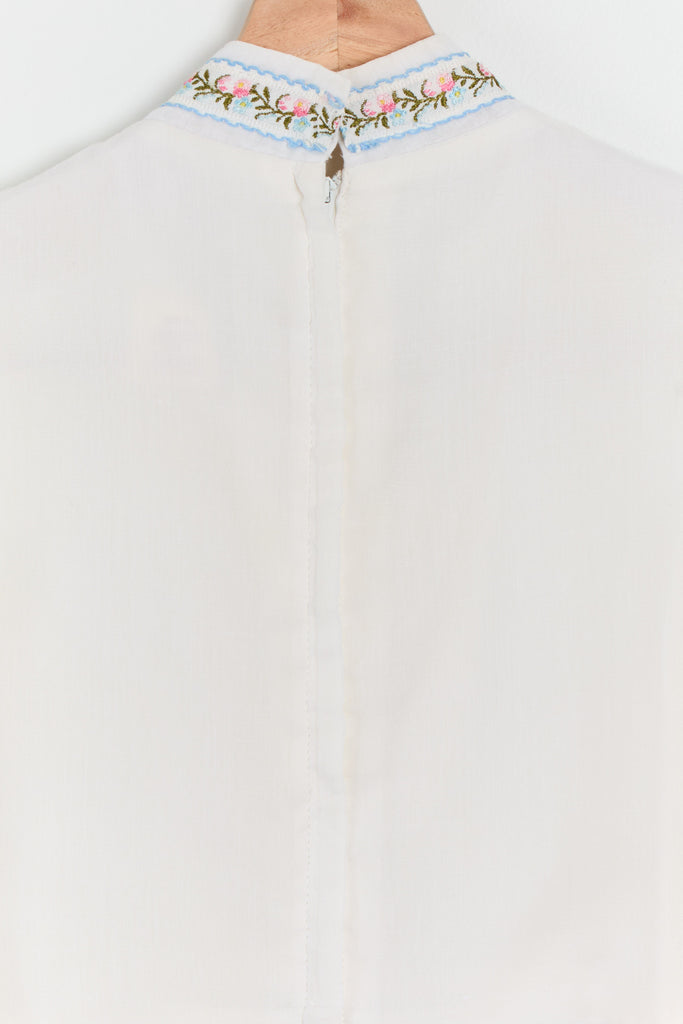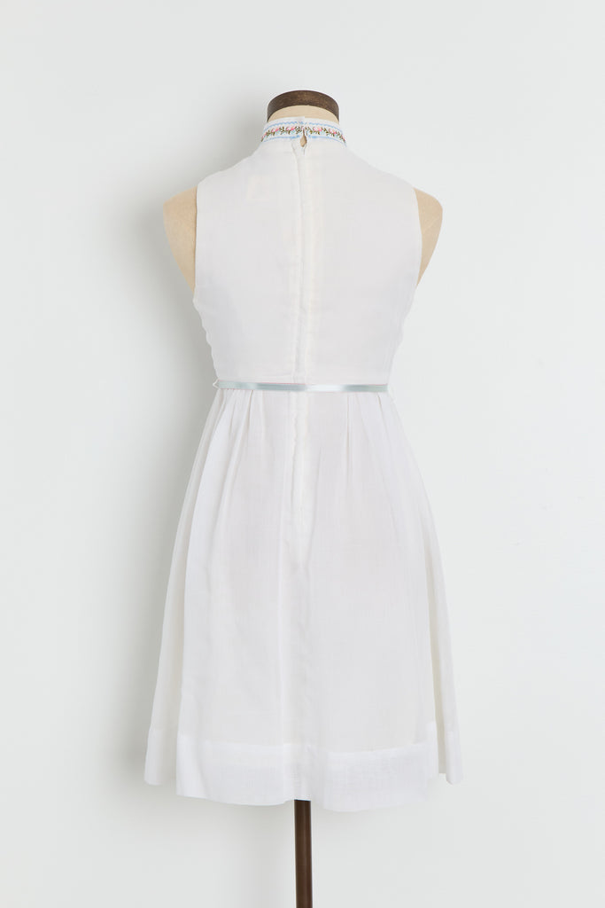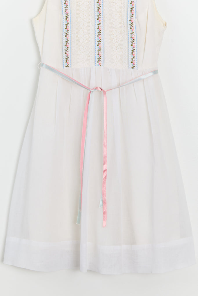 60s Cream Embroidered Lace Bodice Mini Dress XS