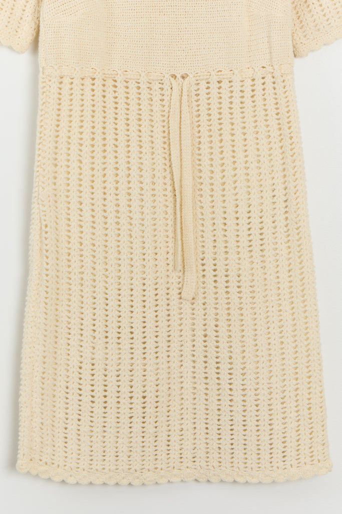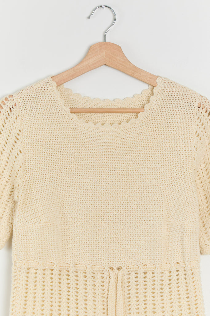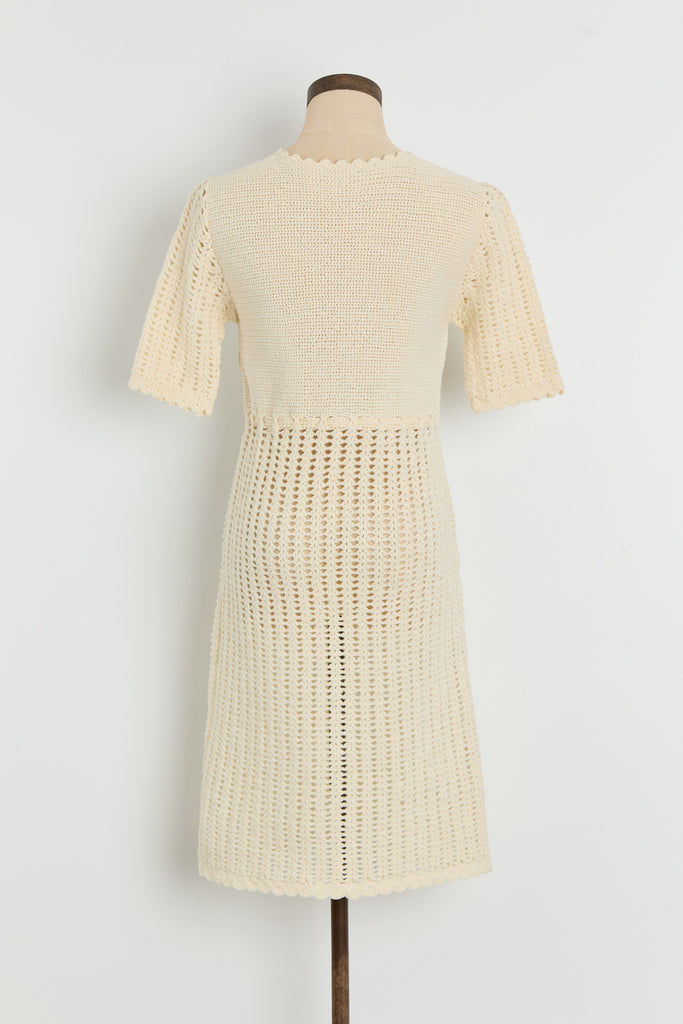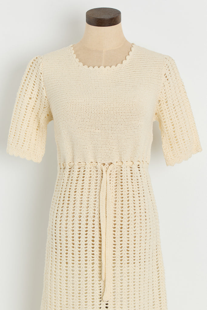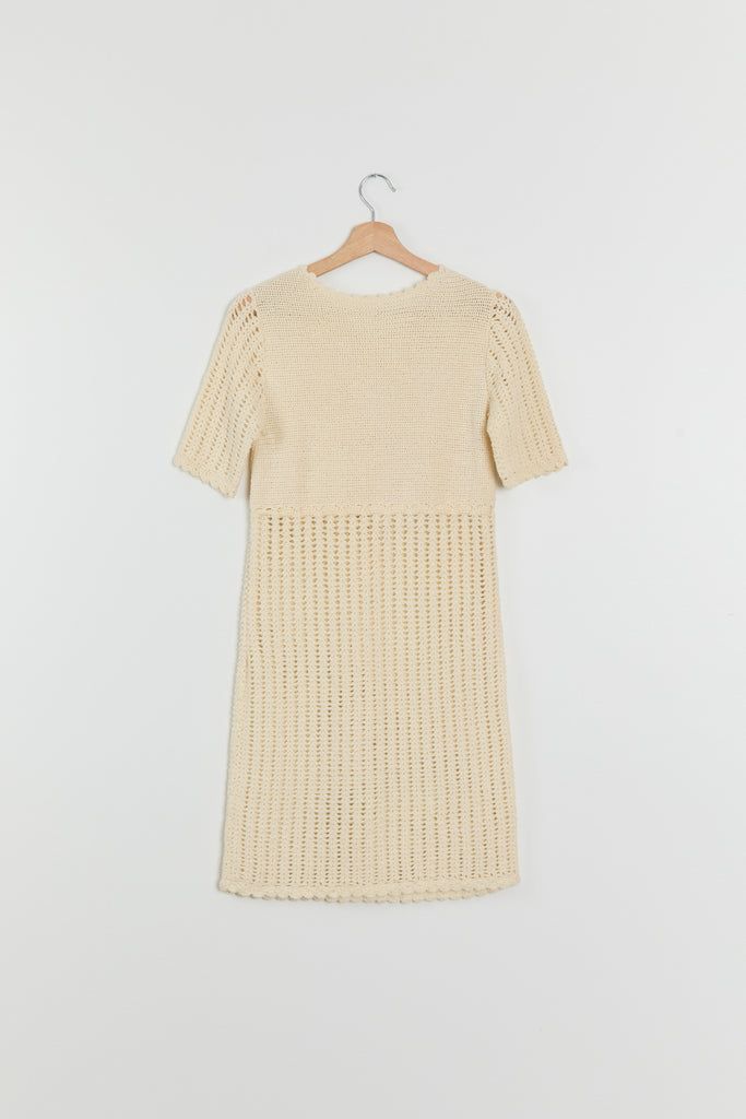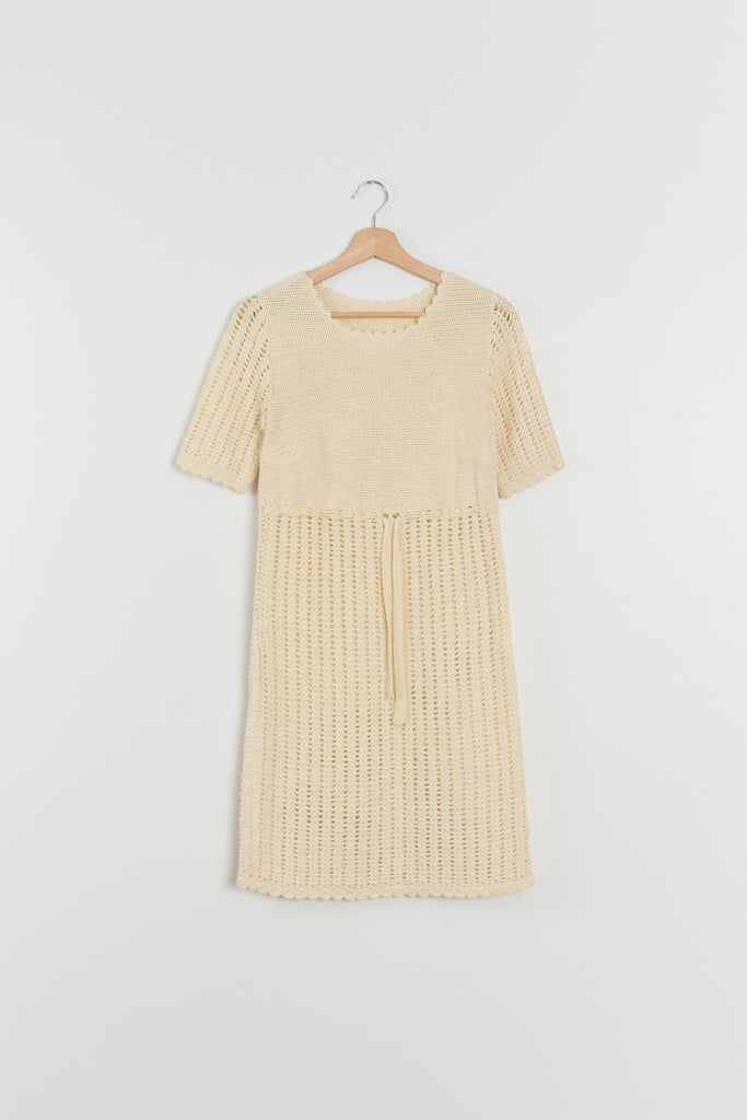 MATERIAL / N/A, feels synthetic, open knit skirt and sleeve, unlined