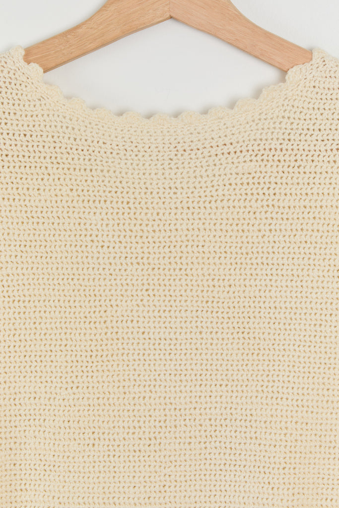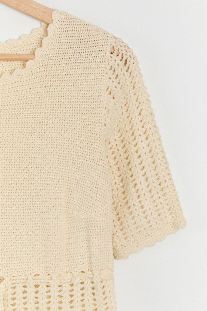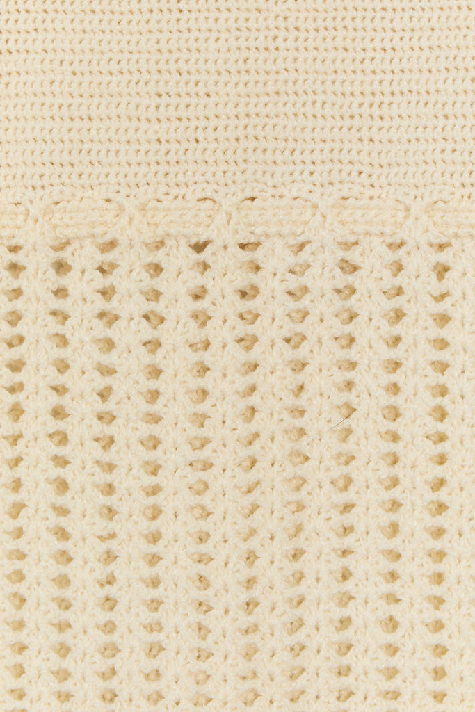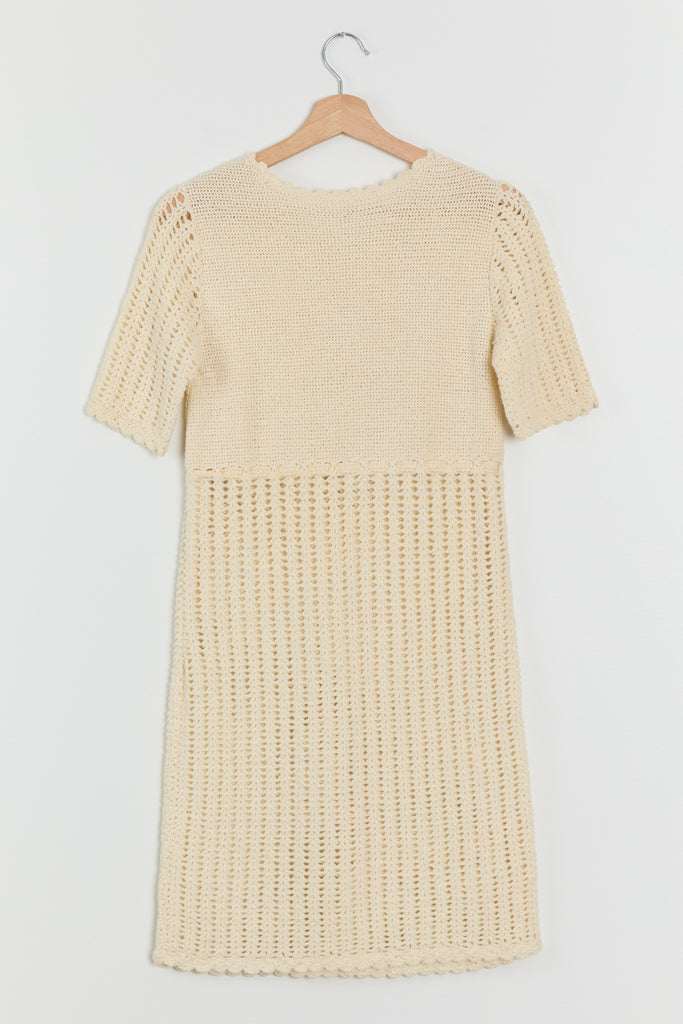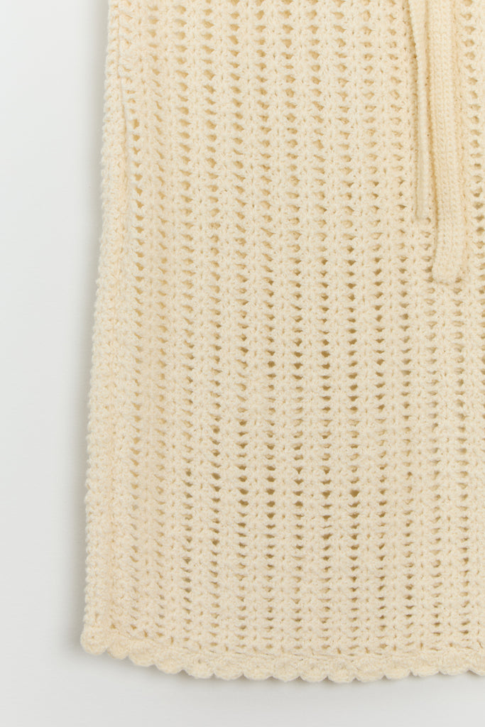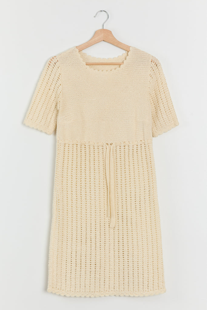 MATERIAL / N/A, feels synthetic, open knit skirt and sleeve, unlined