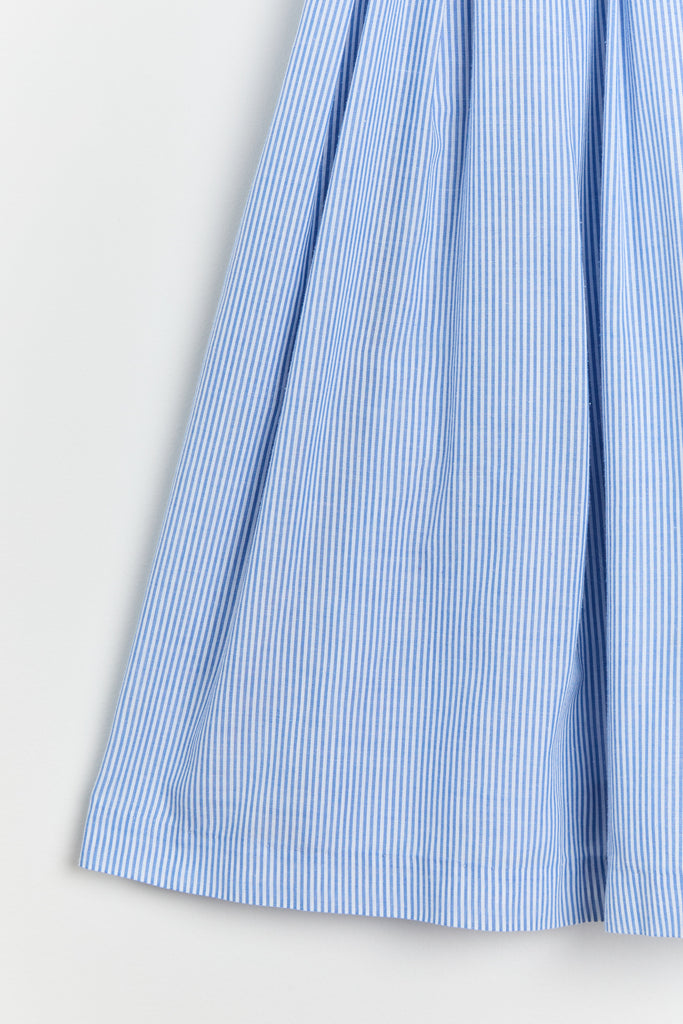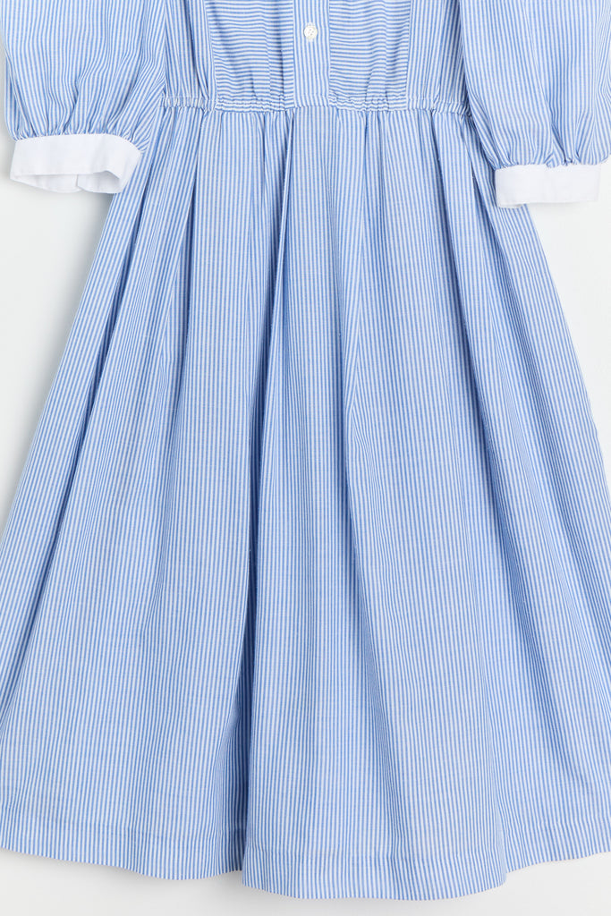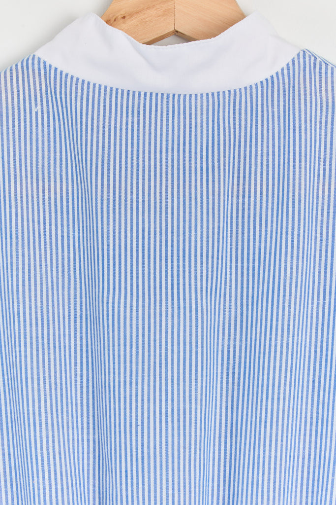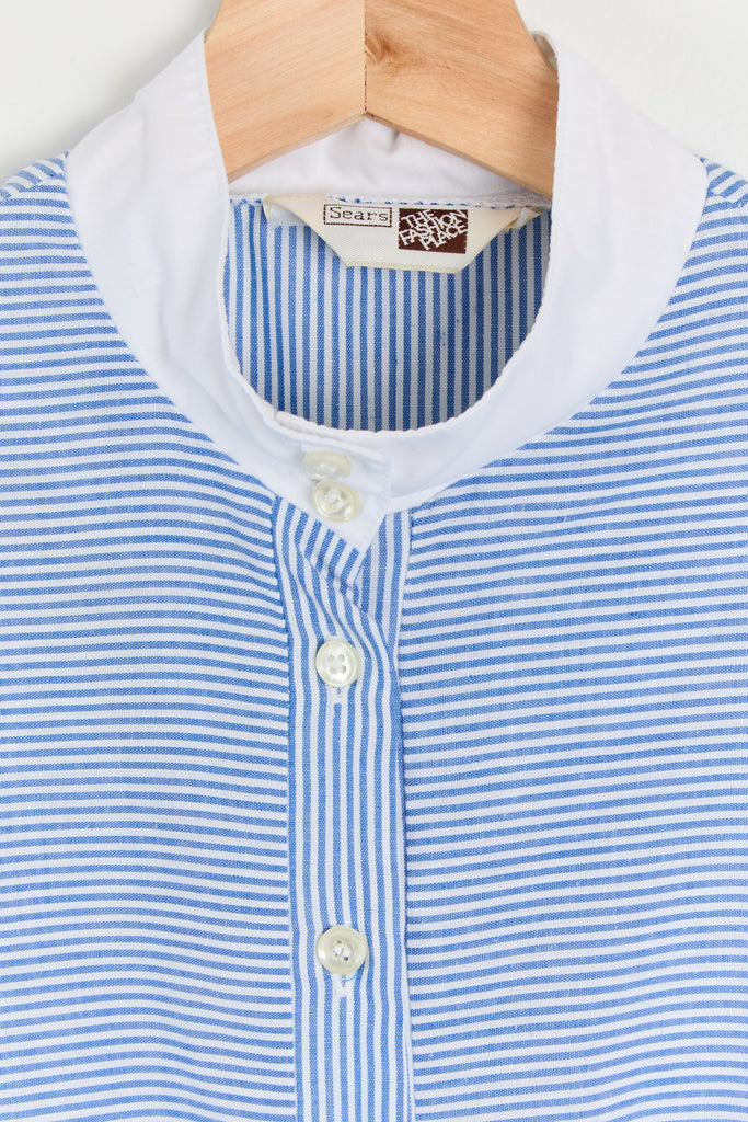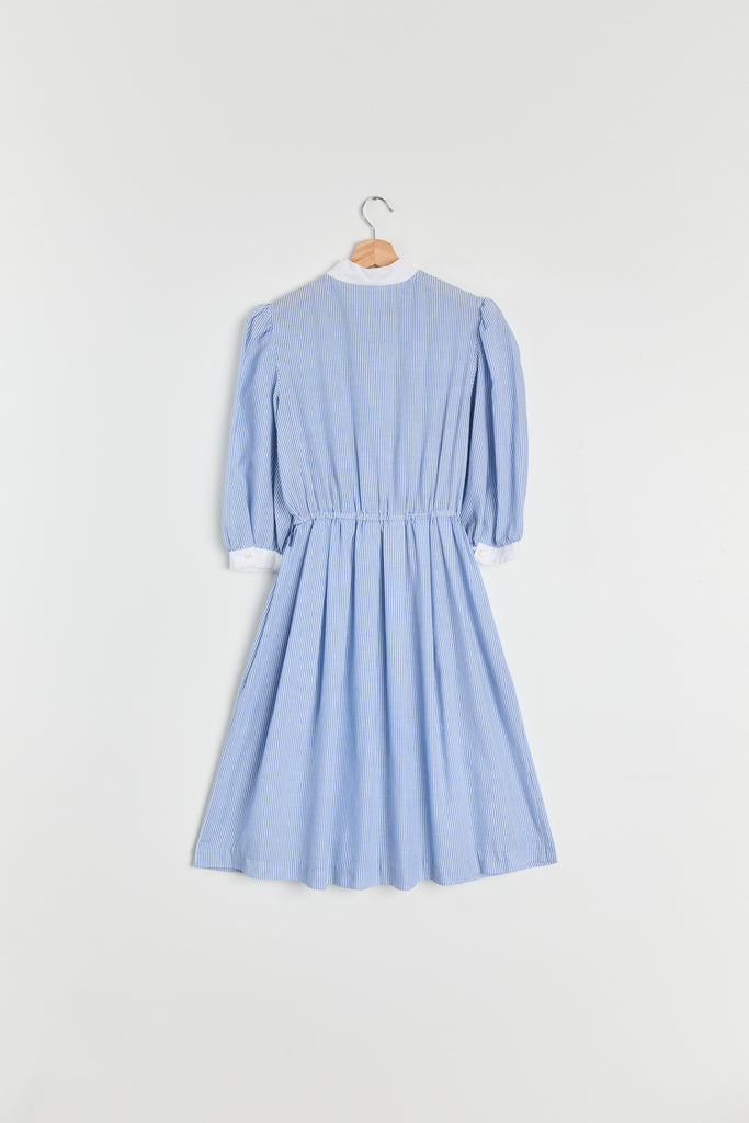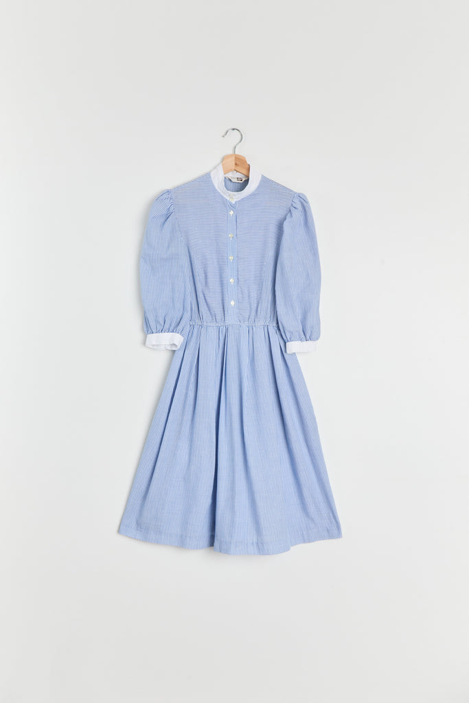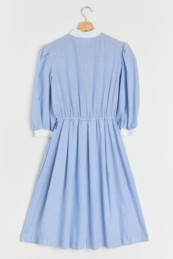 70s Blue White Striped Puff Sleeve Shirt Dress S/M