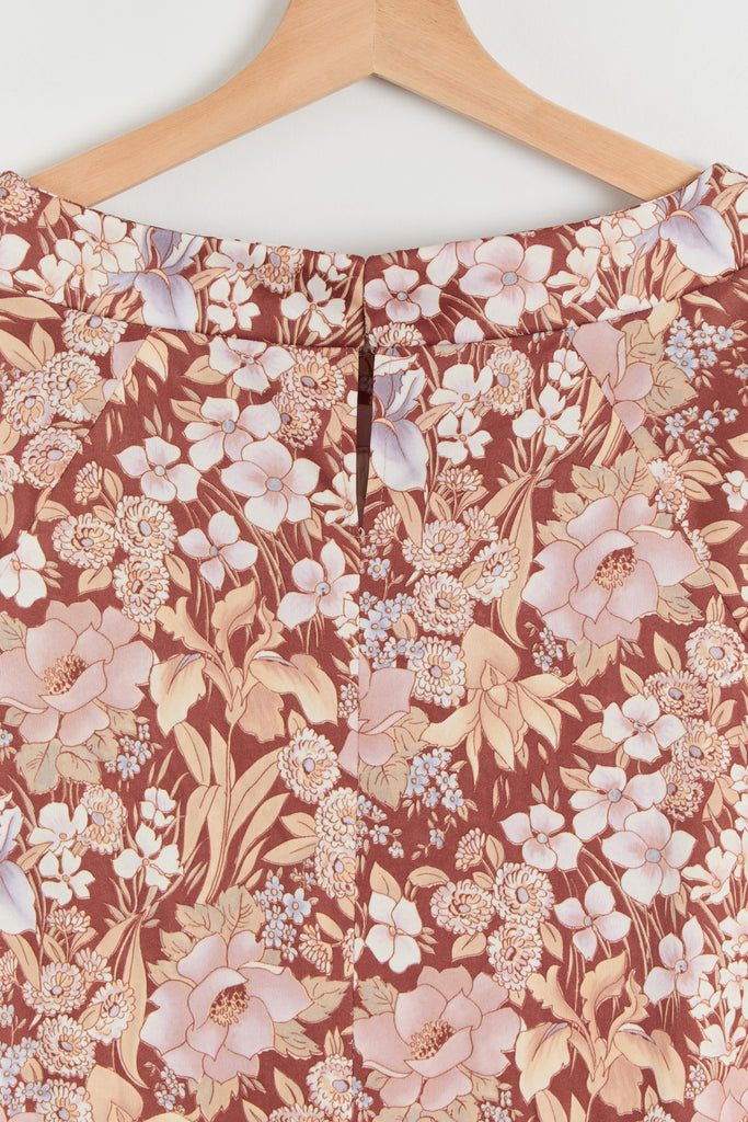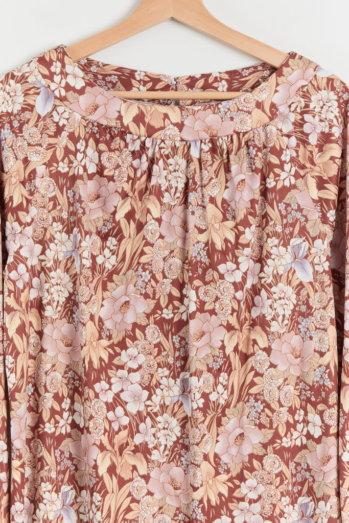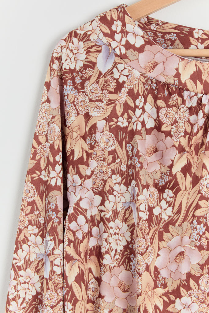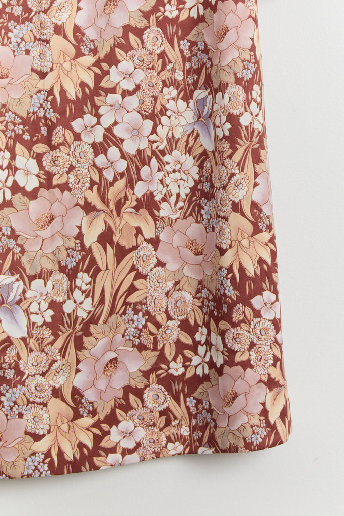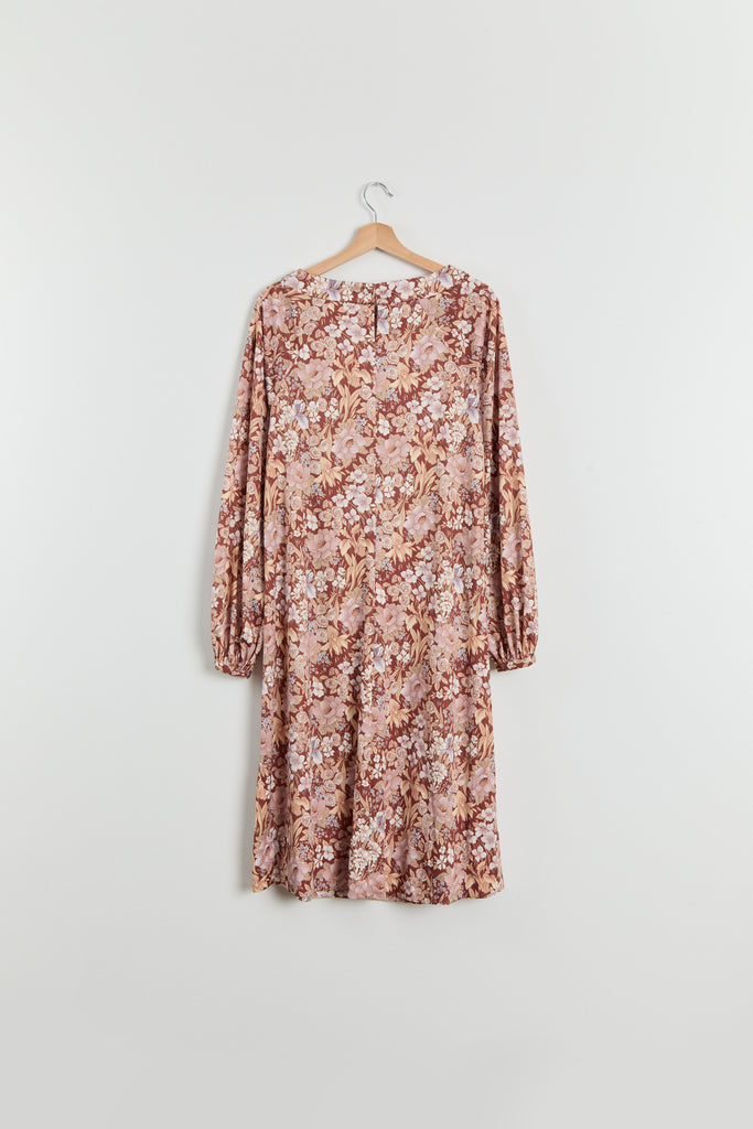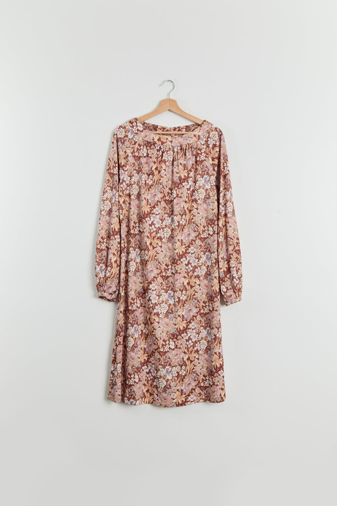 70s Brown Floral Print Polyester Shirt Dress L