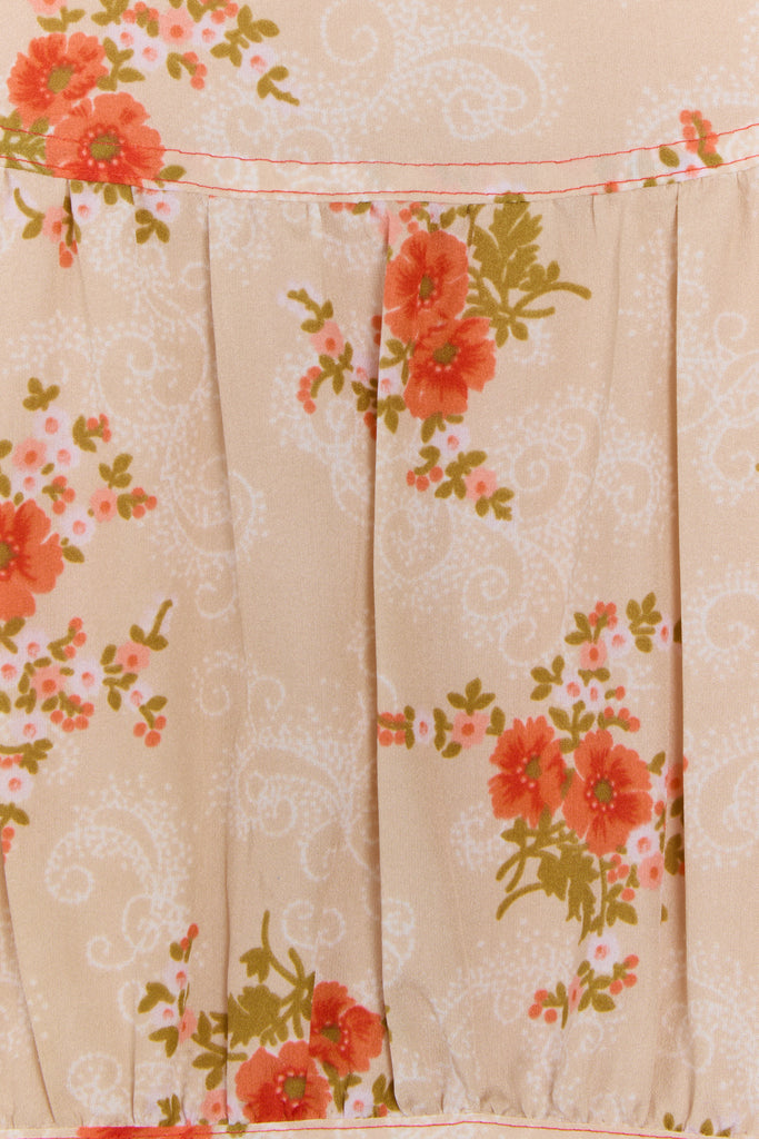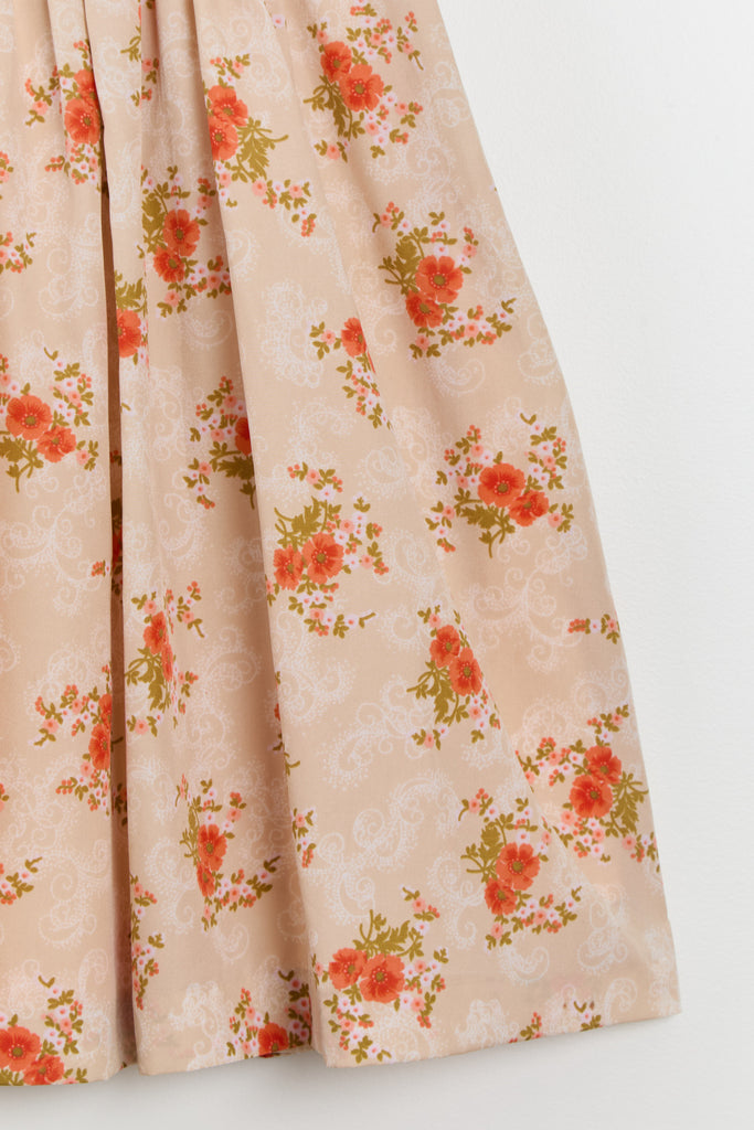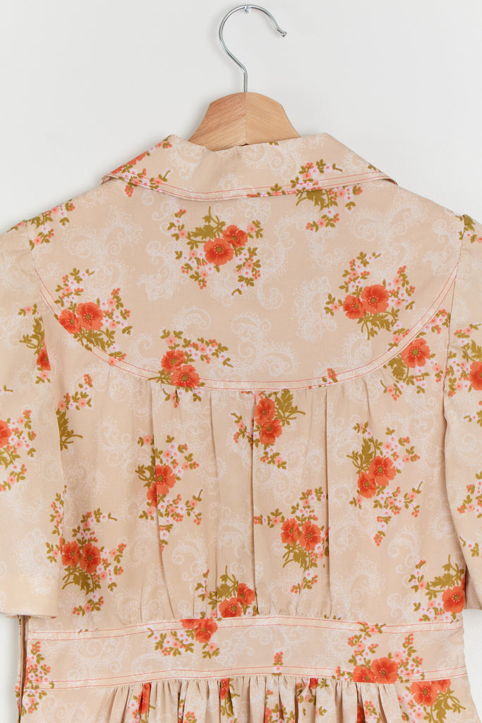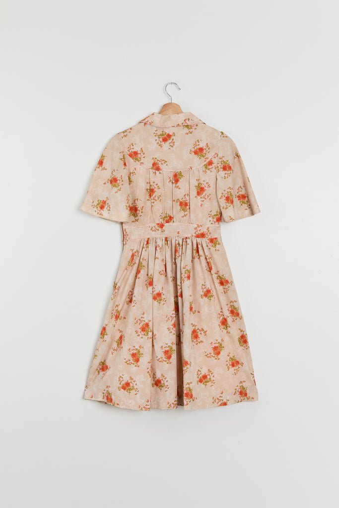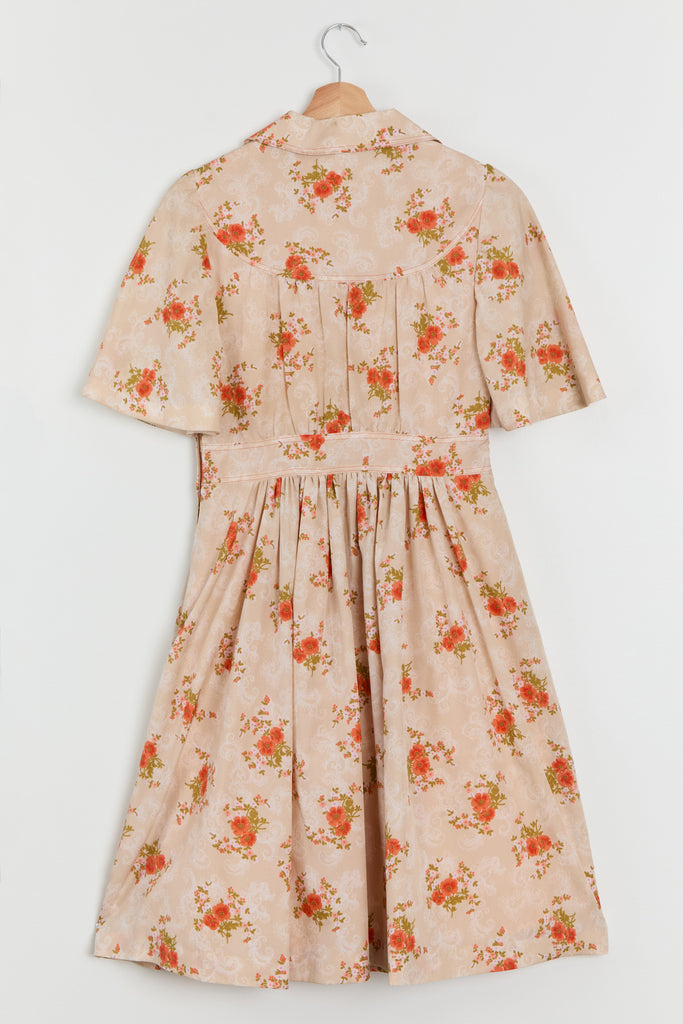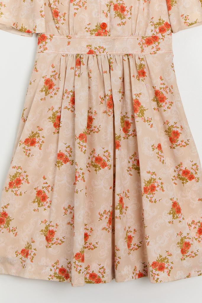 70s Sherbet Orange Floral Shirt Dress M