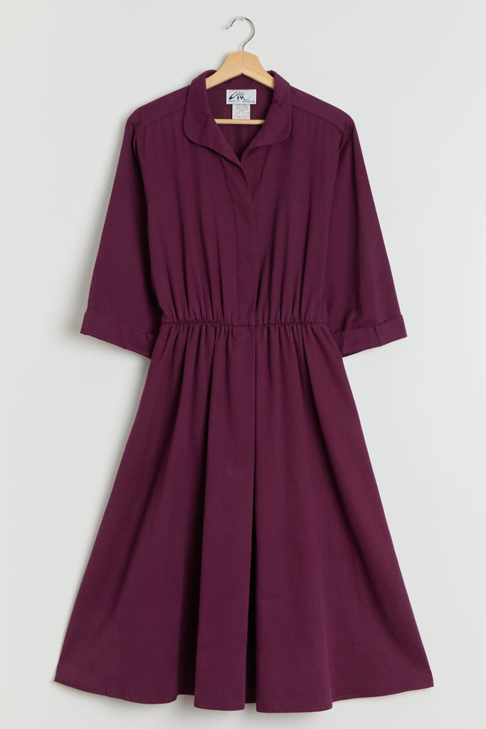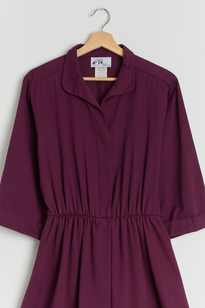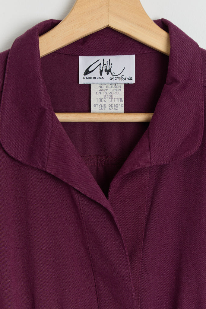 80s Eggplant Cotton Minimal Shirt Dress M/L