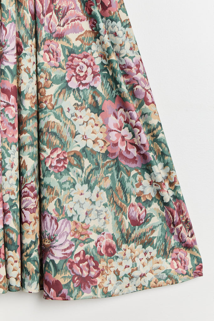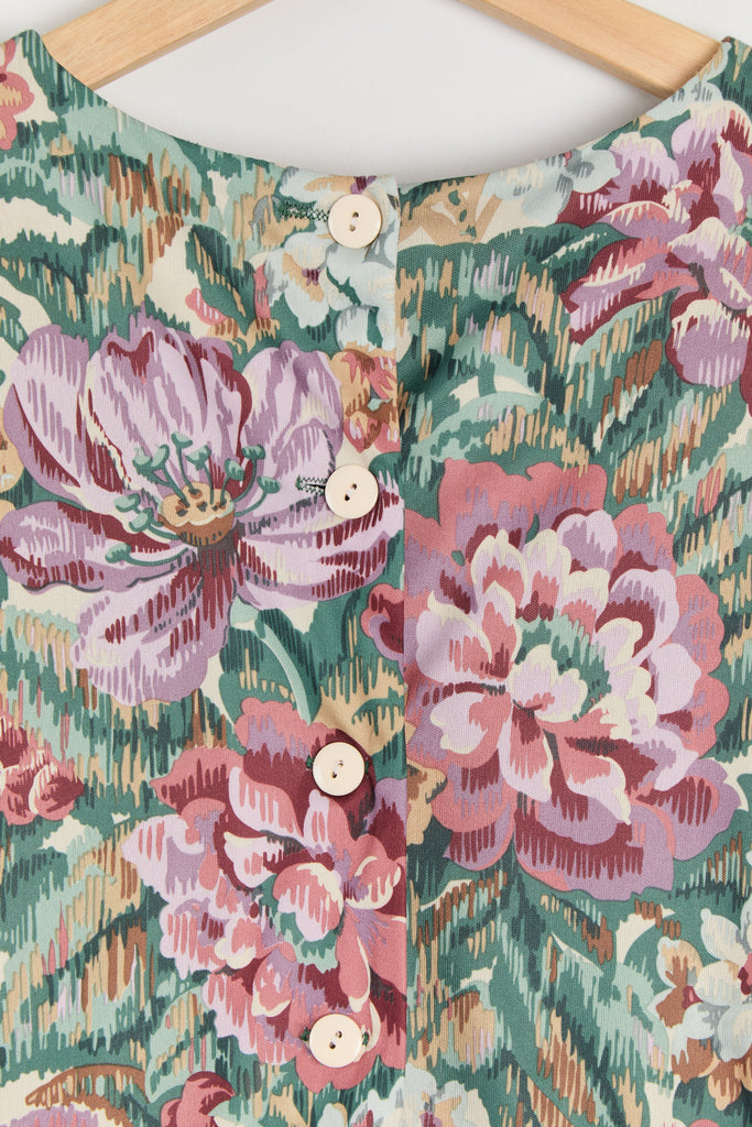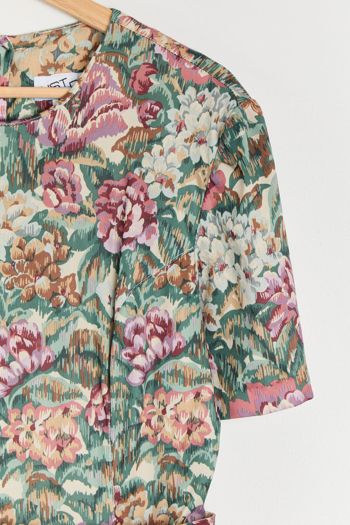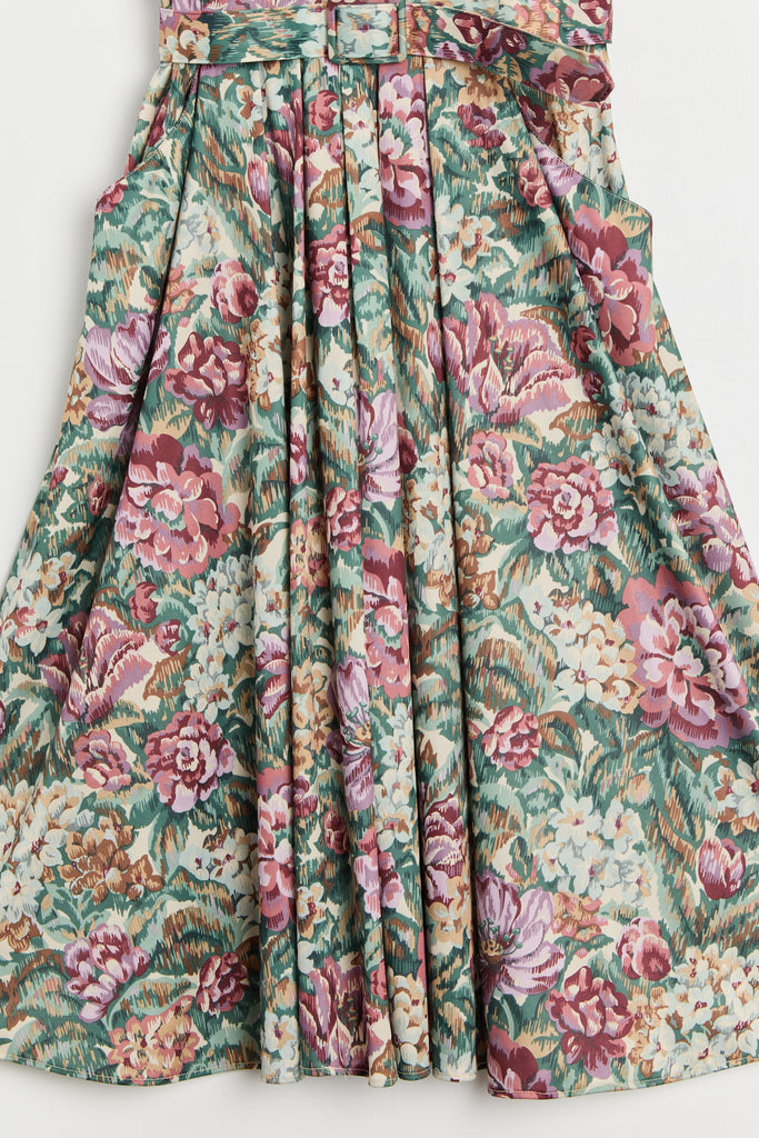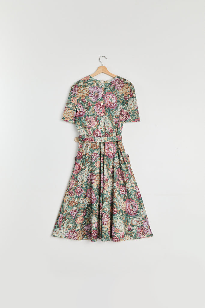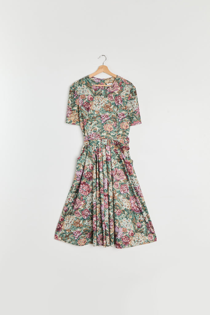 80s Forest Magenta Floral Print Knit Belted Dress L