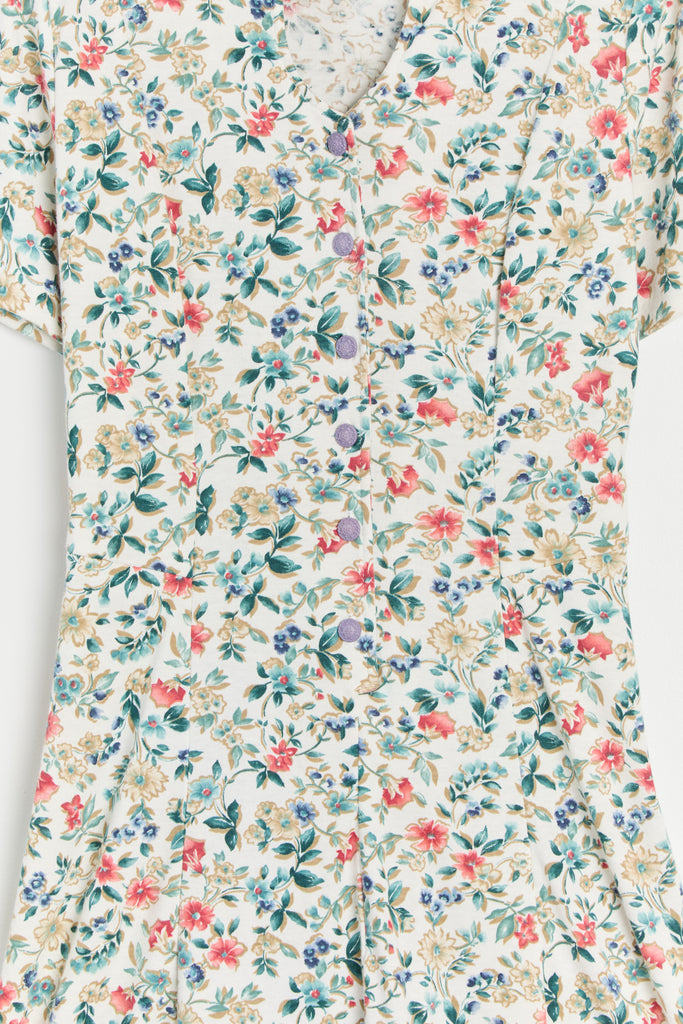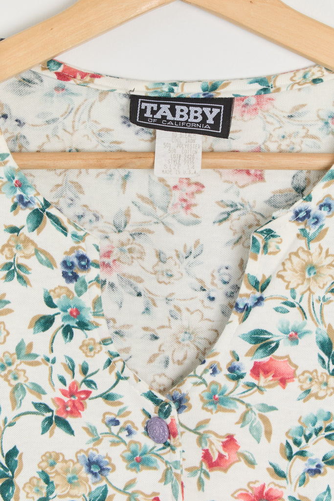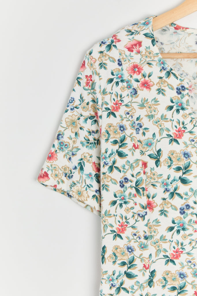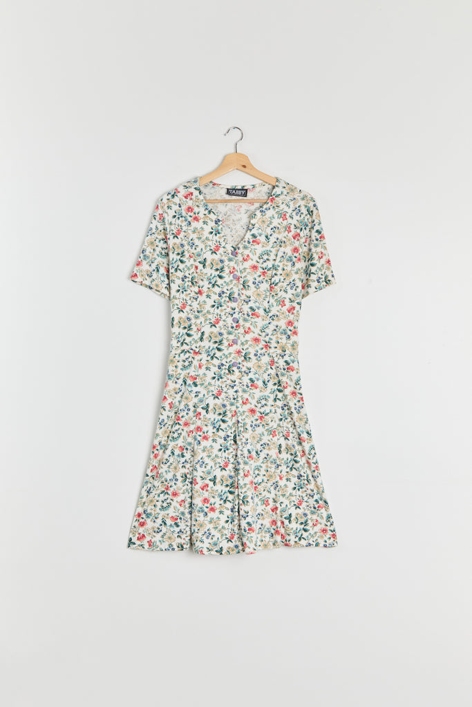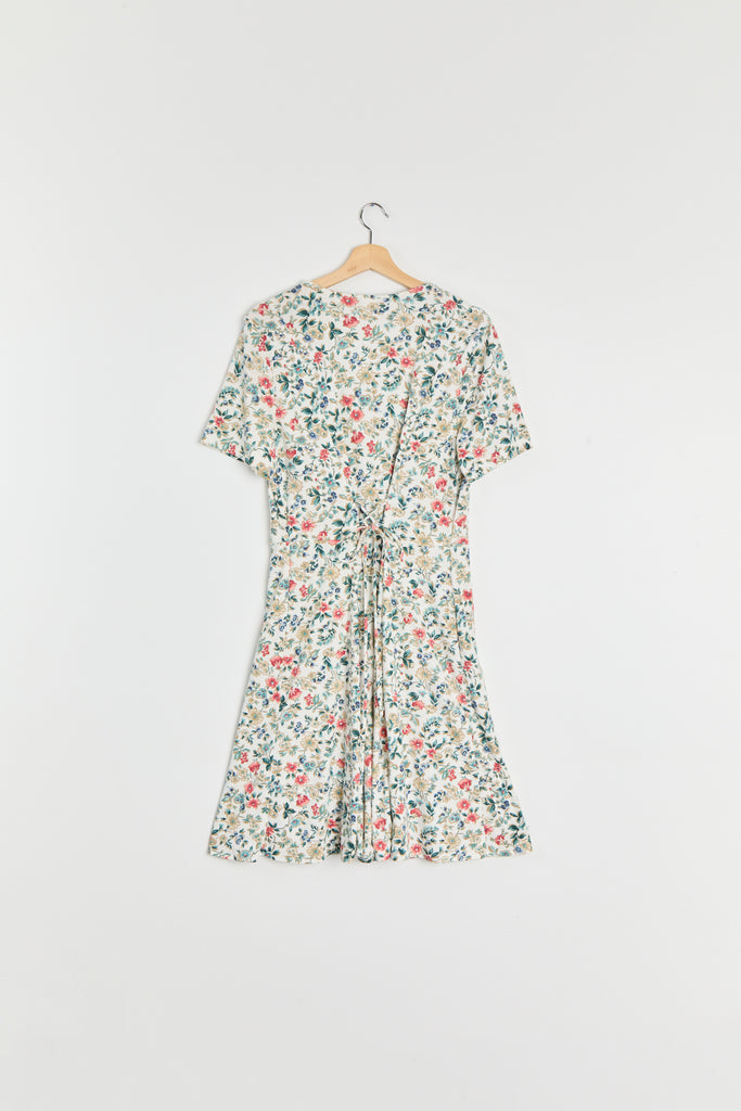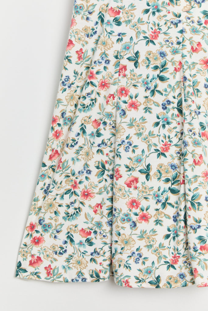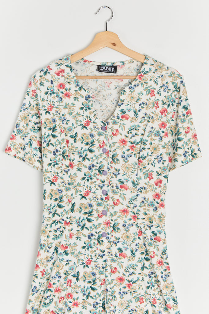 80s White Floral Knit Lace Up Dress L