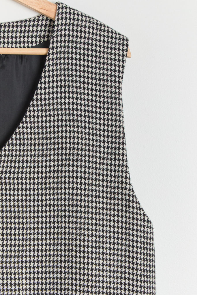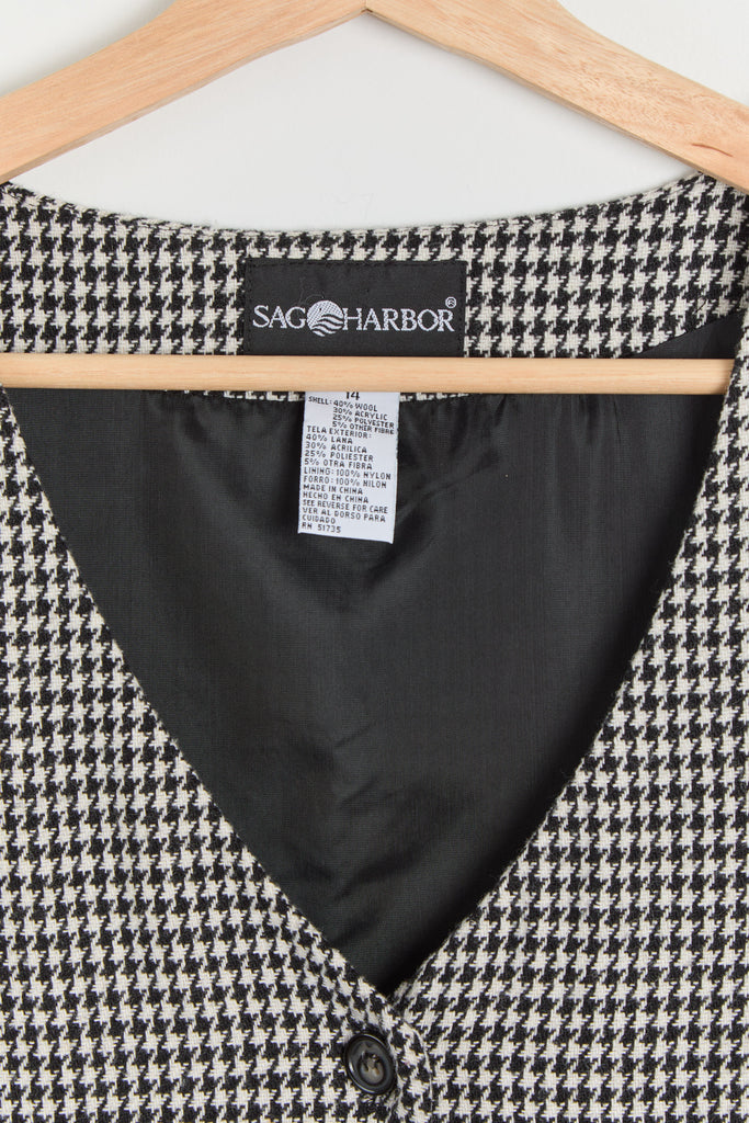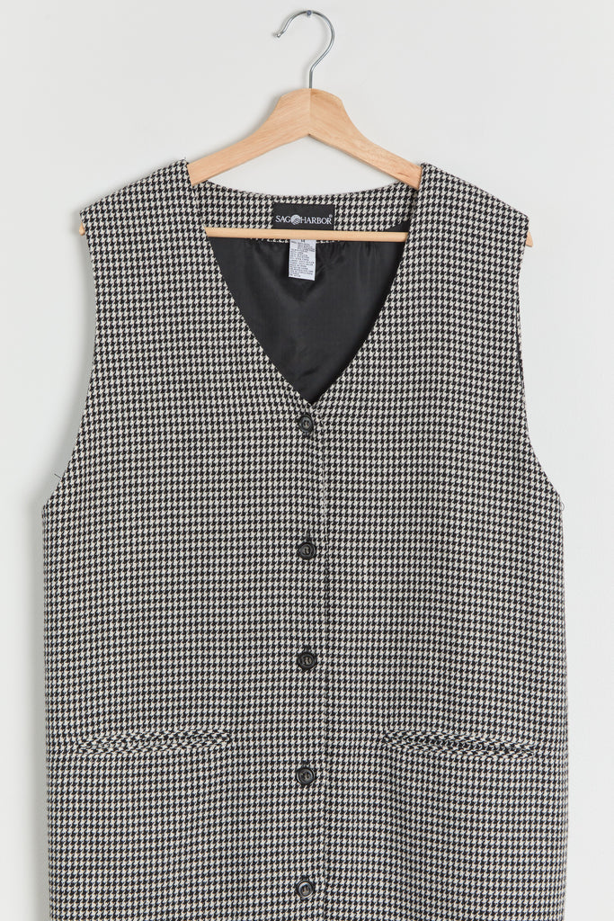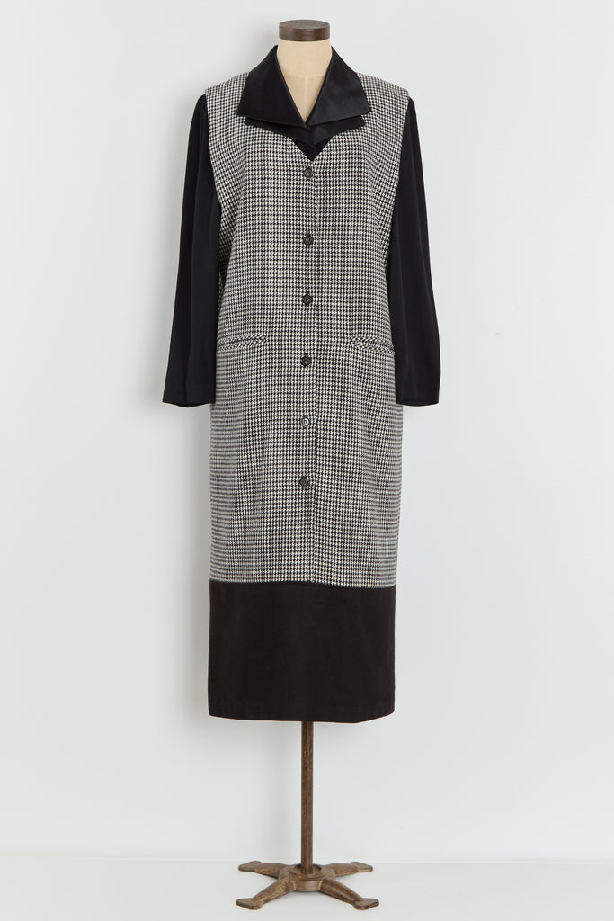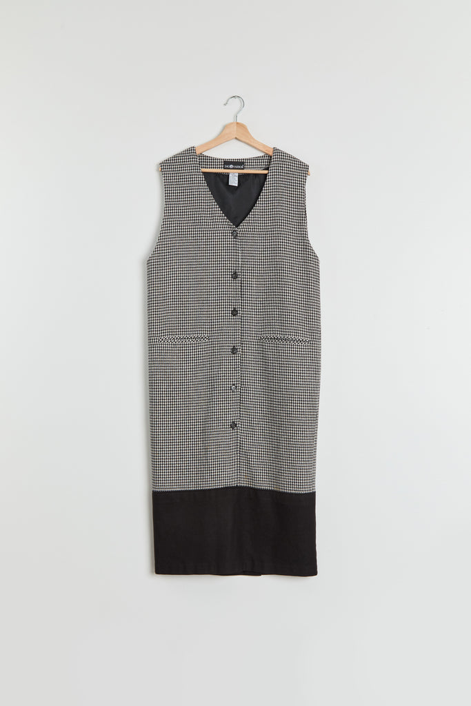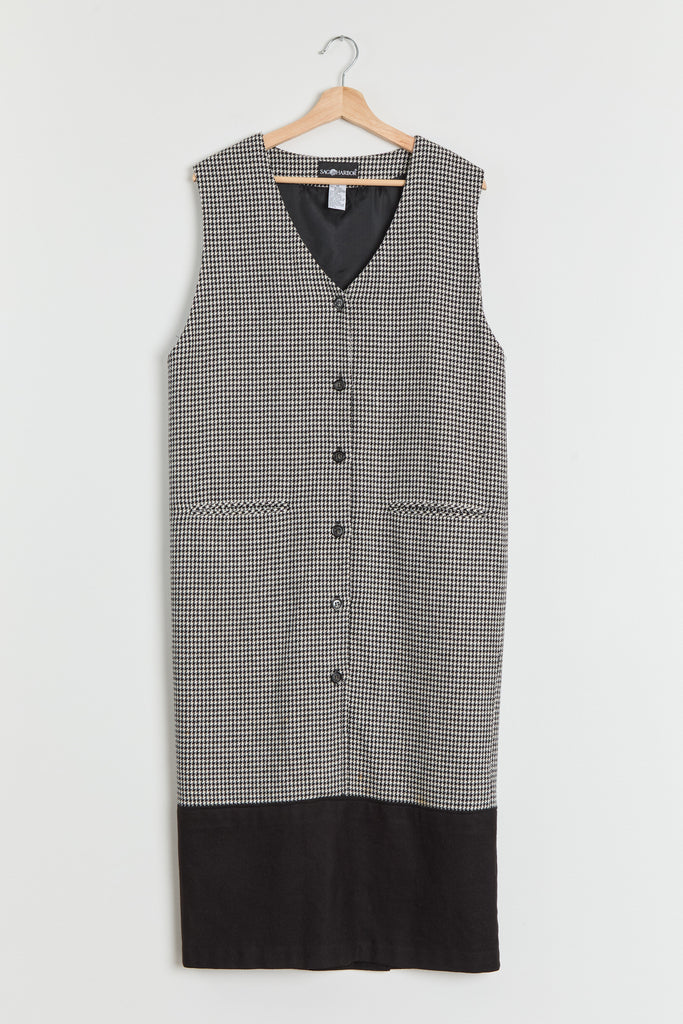 90s B&W Houndstooth Color Block Jumper Dress L