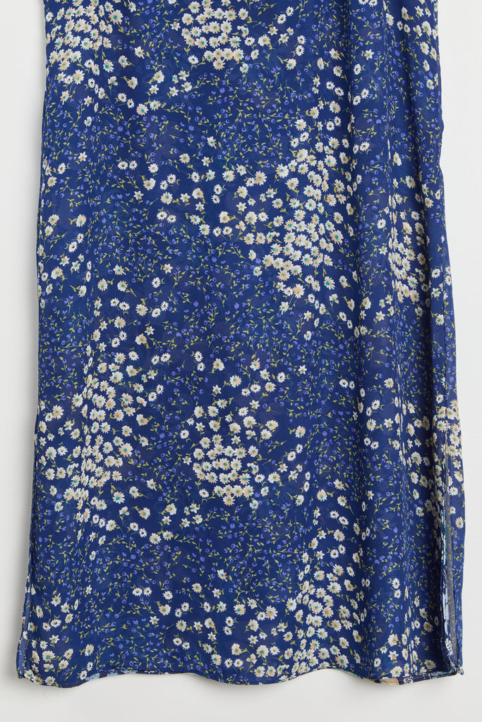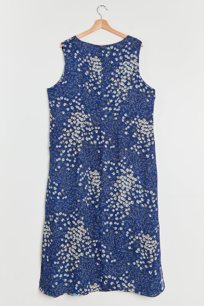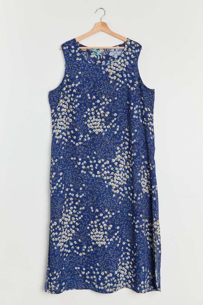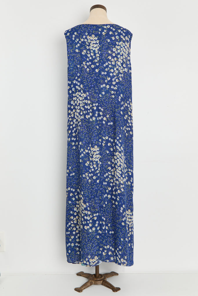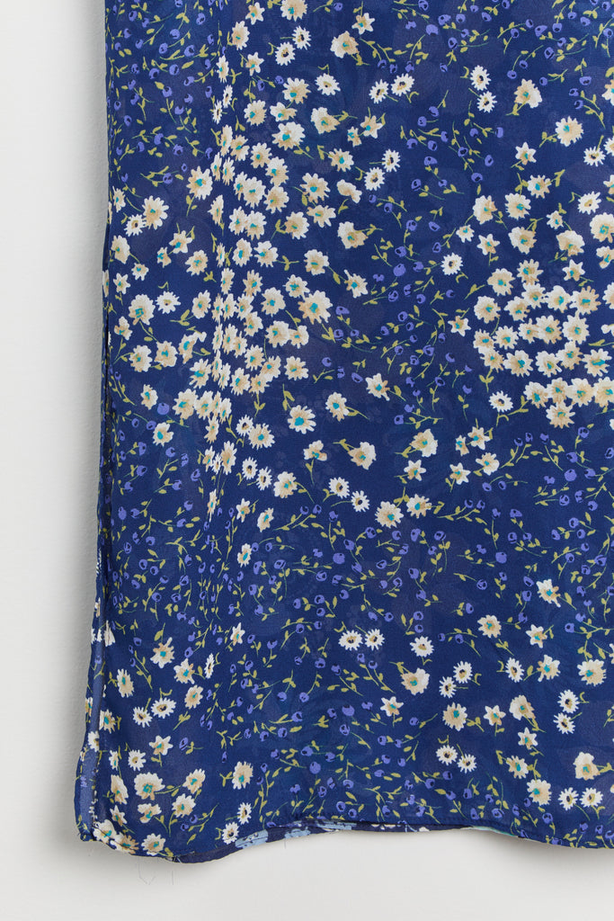 90s Blue Floral Print Chiffon Maxi Dress XL
