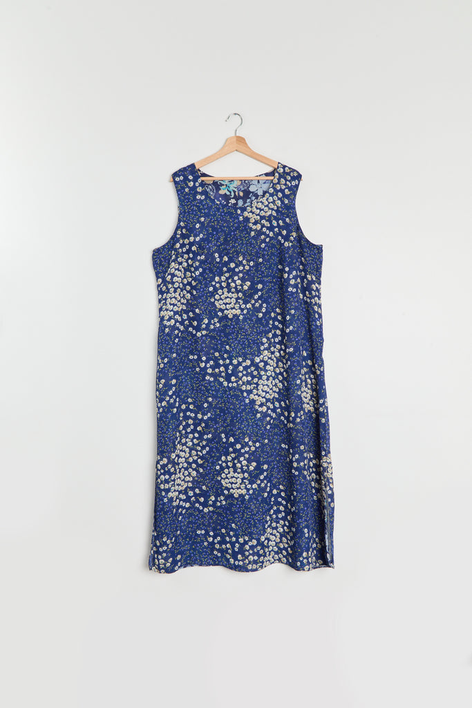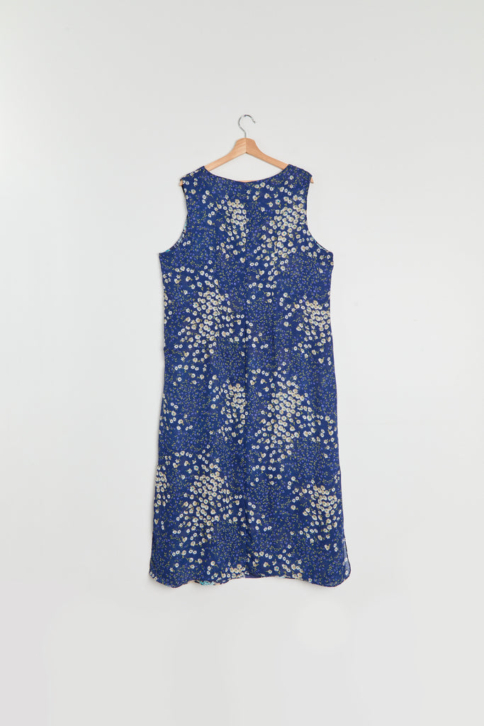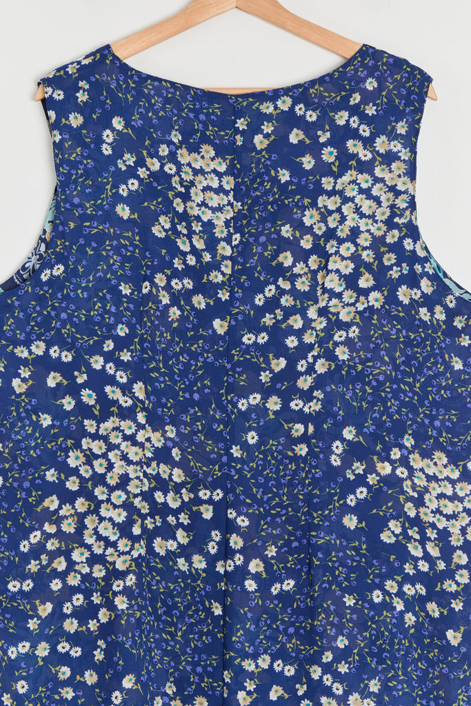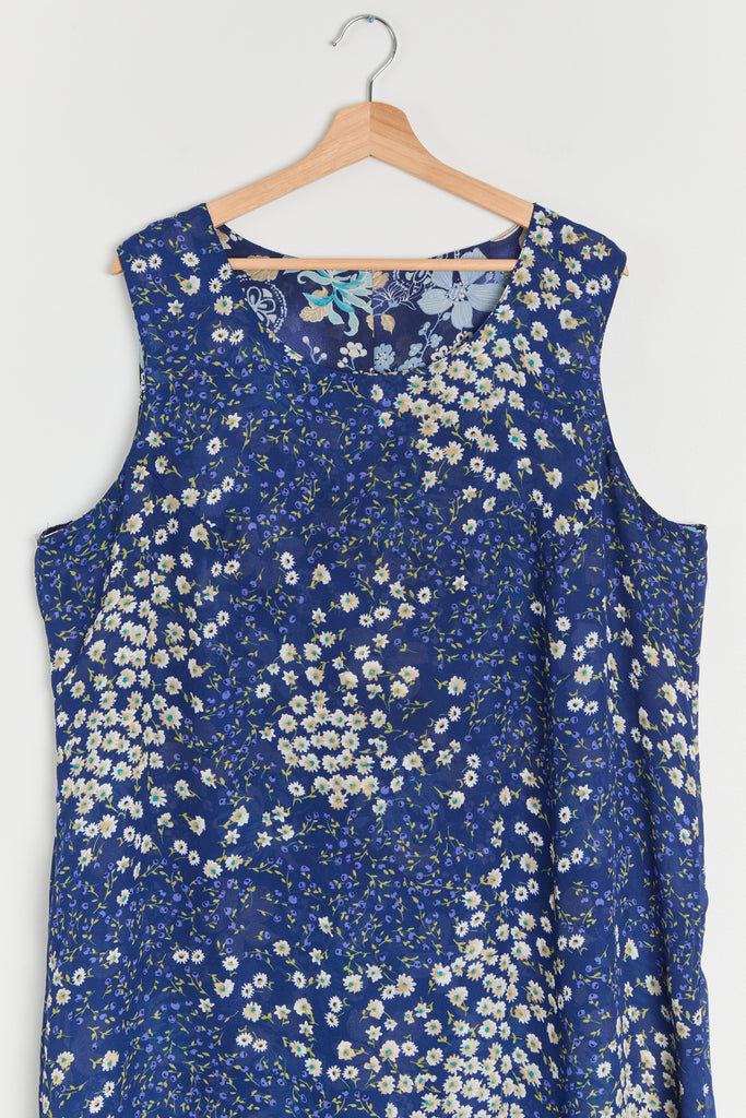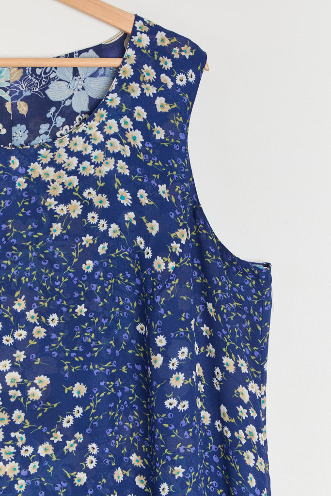 90s Blue Floral Print Chiffon Maxi Dress XL