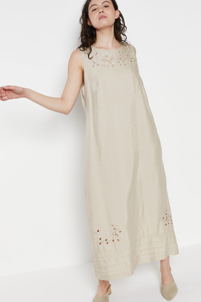 MEASUREMENTS / Shoulder - 14" Bust - 21" Waist - 21" Hips - 25" Length - 50.5" Sleeve - 3"