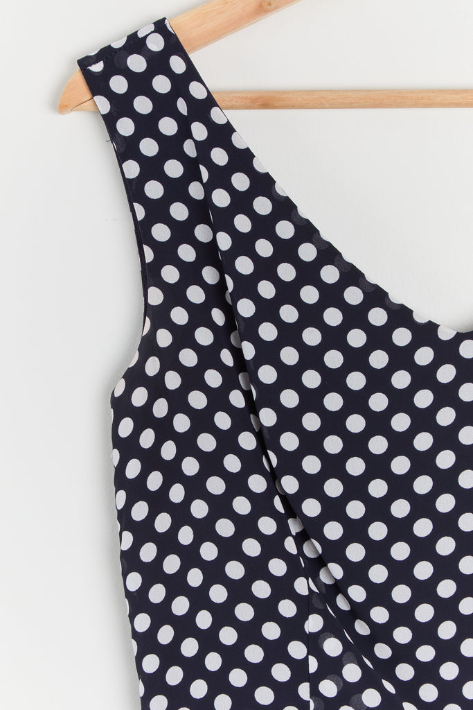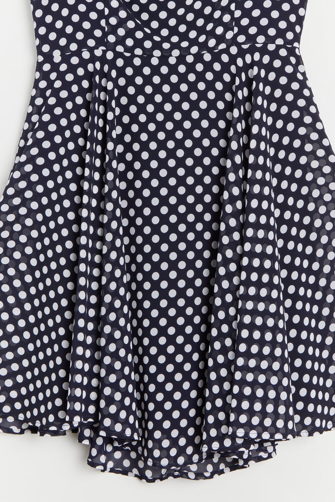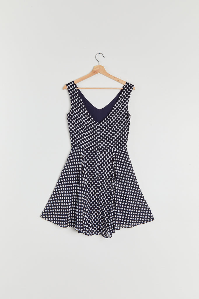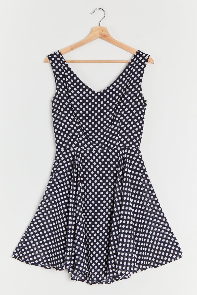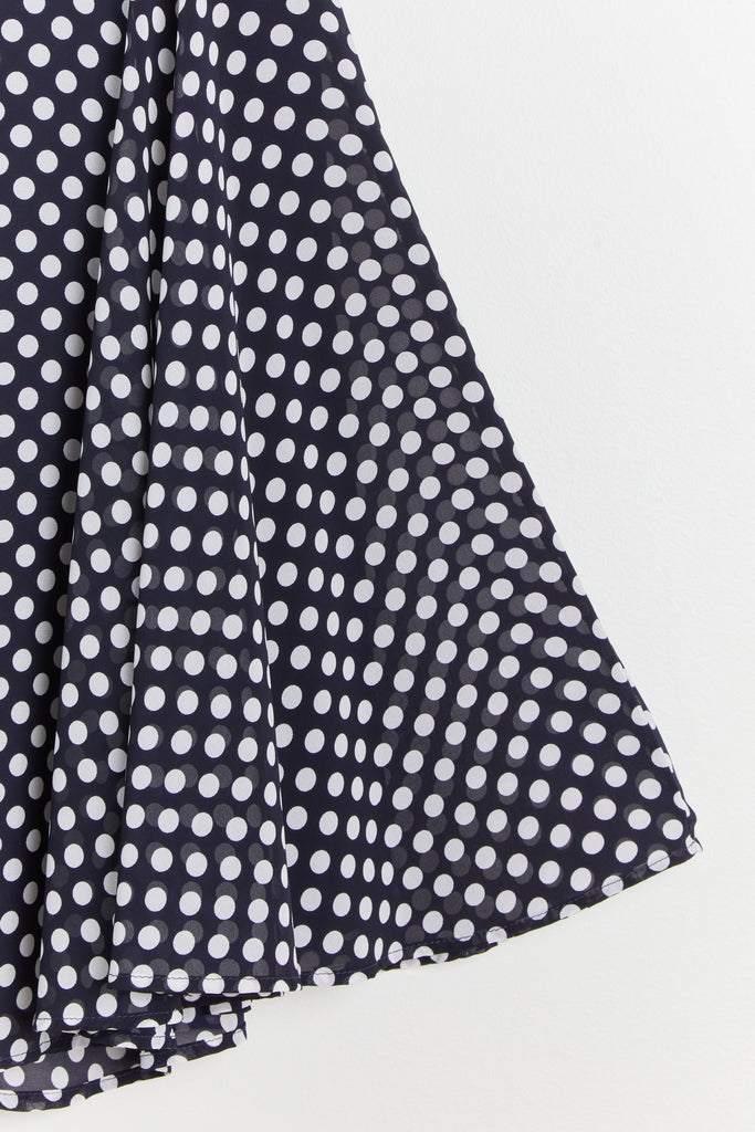 90s Navy White Chiffon Polka Dot Fit & Flare Dress S