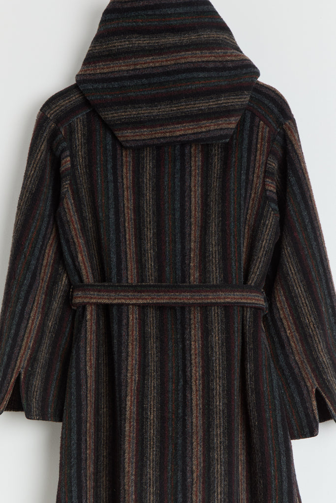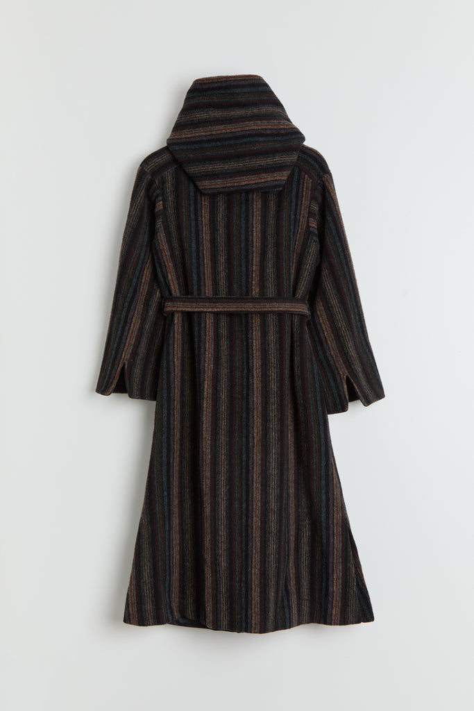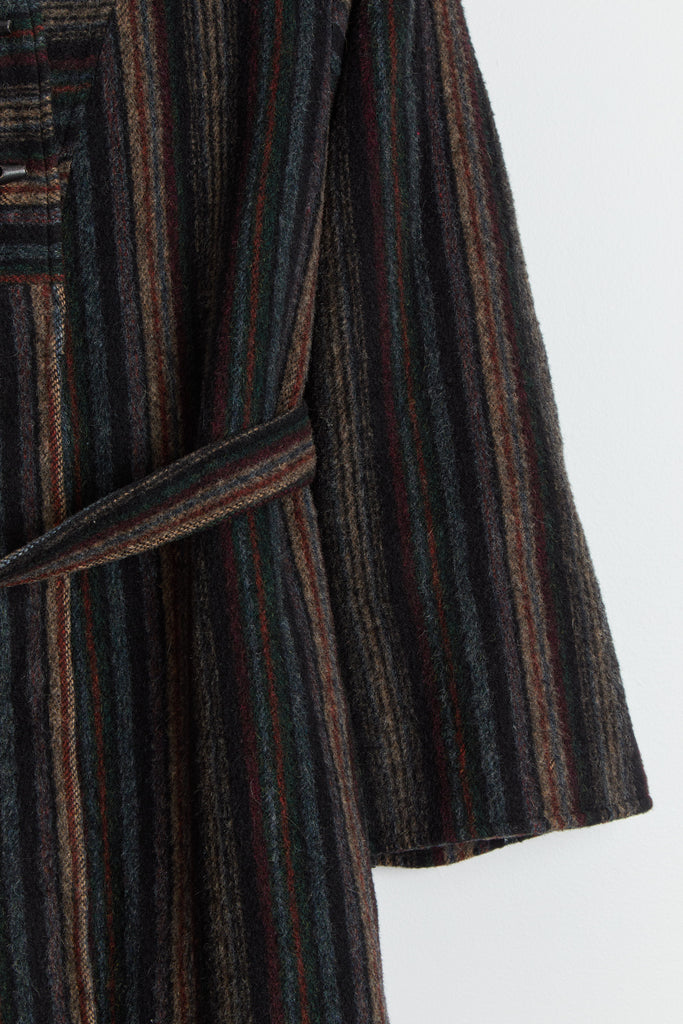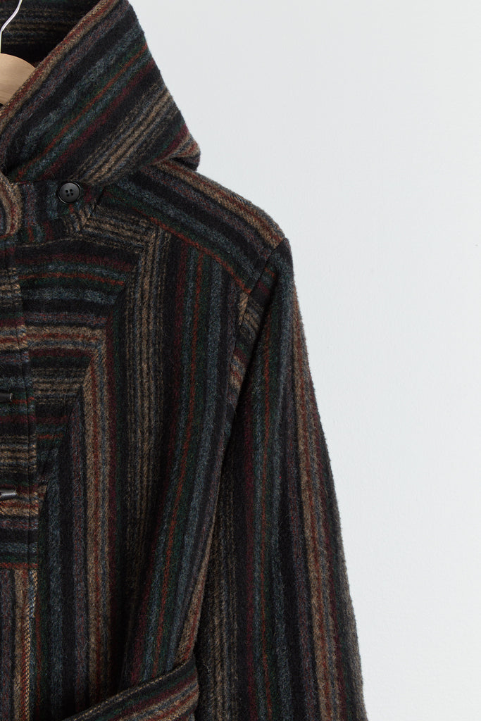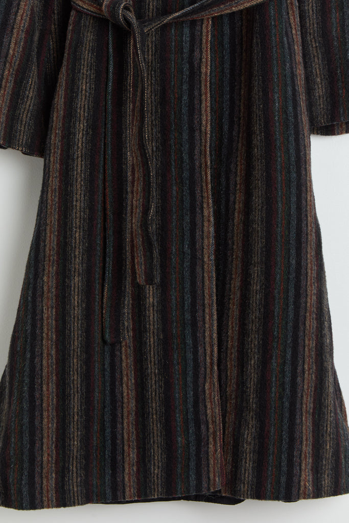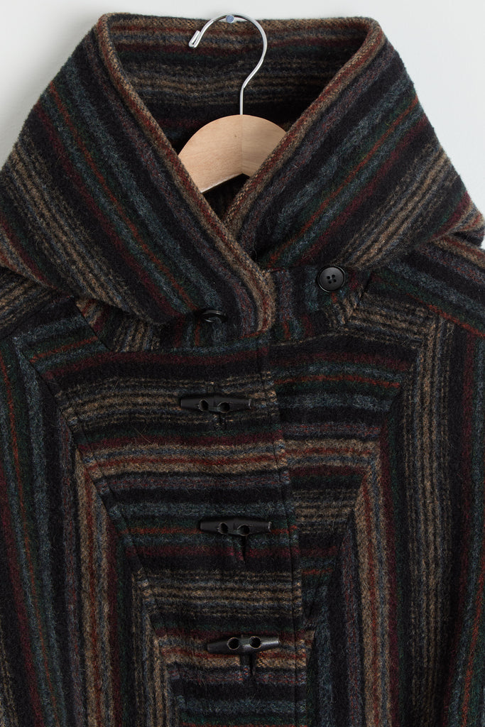 70s Black Multicolor Striped Wool Blanket Wrap Coat M