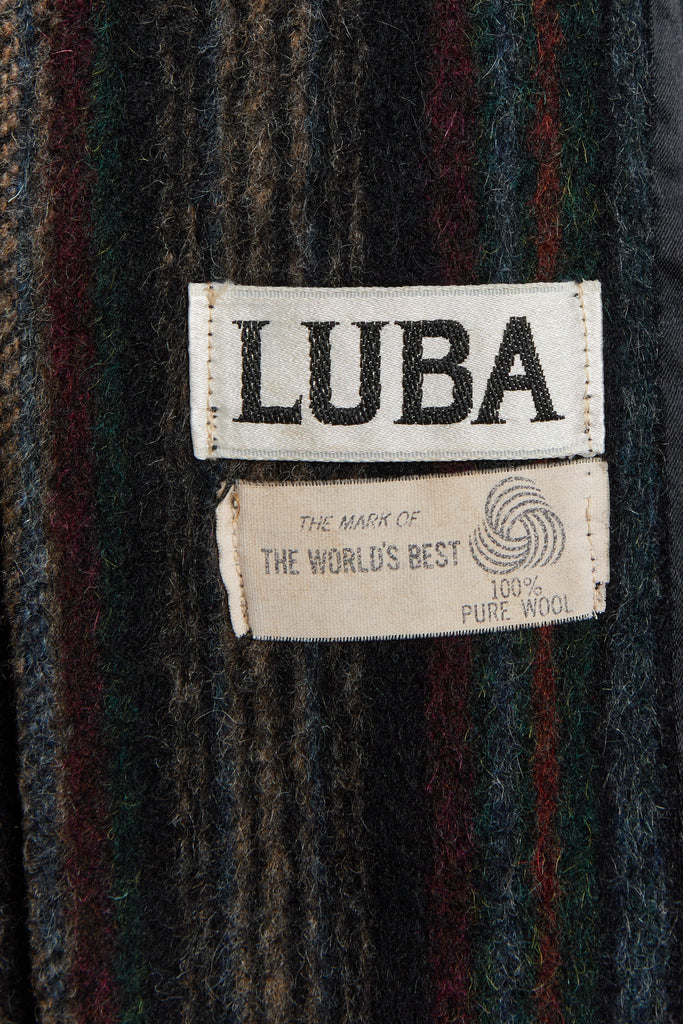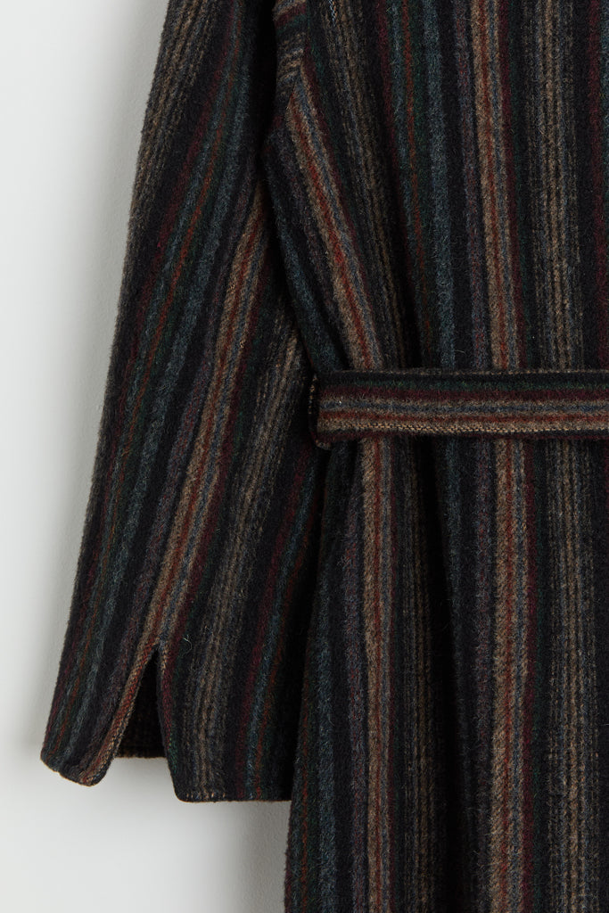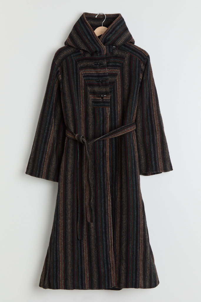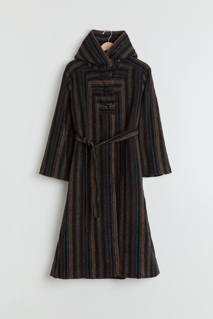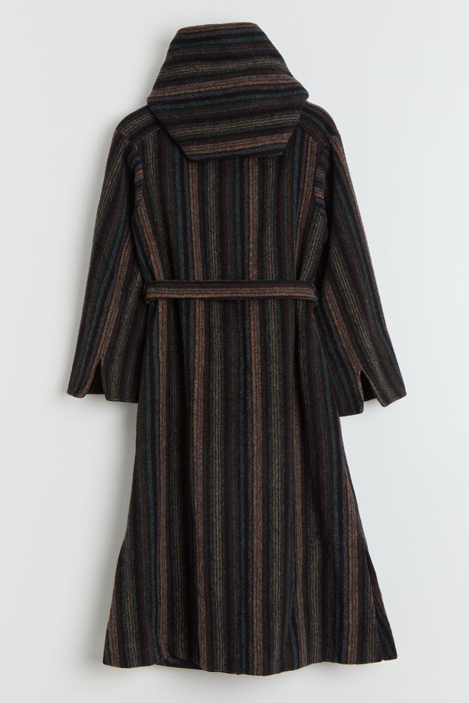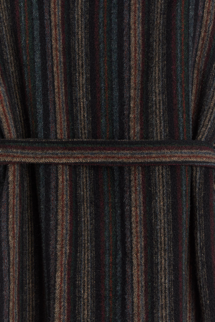 70s Black Multicolor Striped Wool Blanket Wrap Coat M