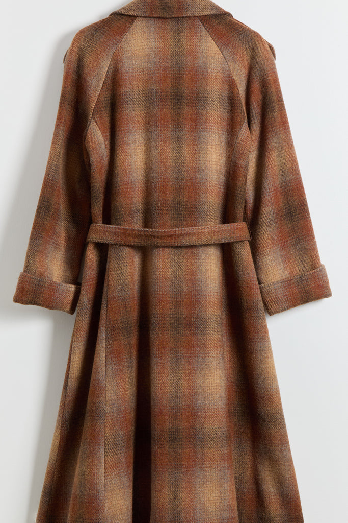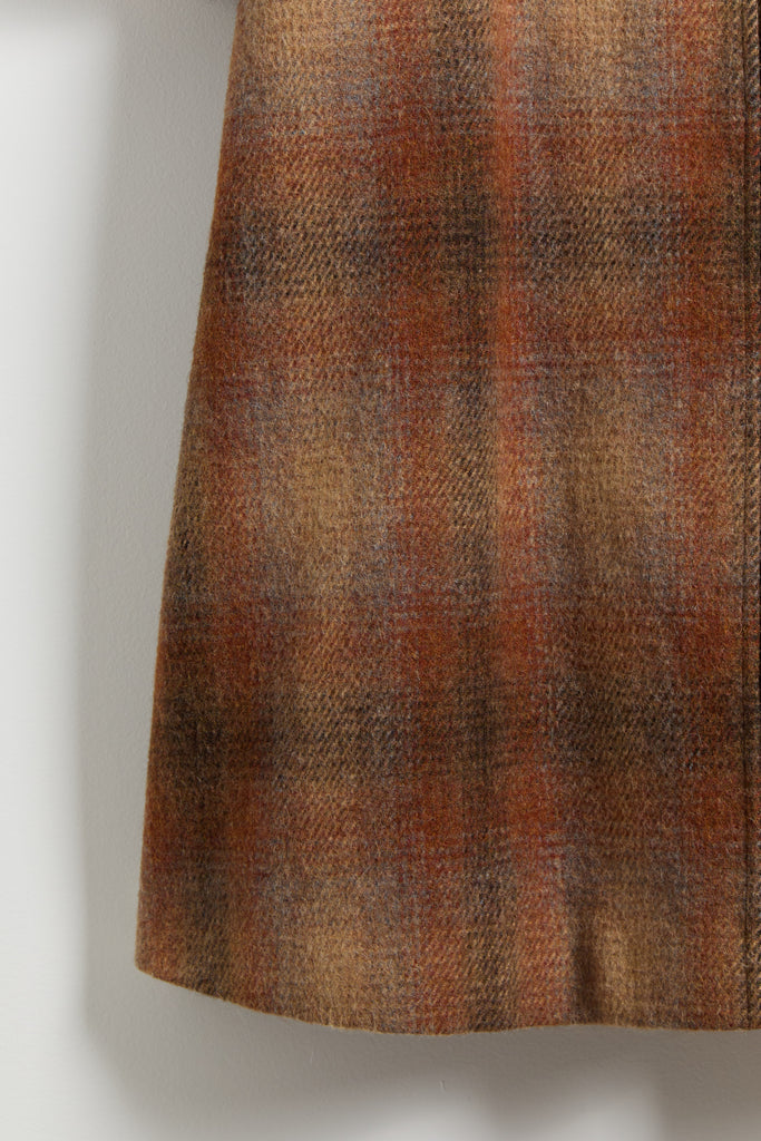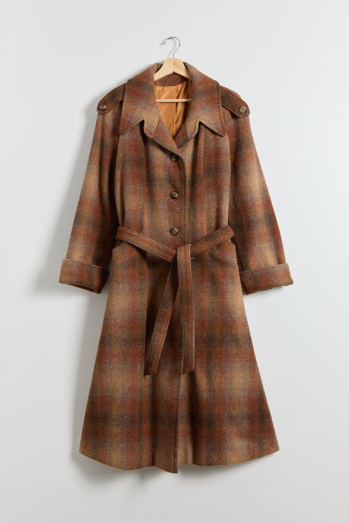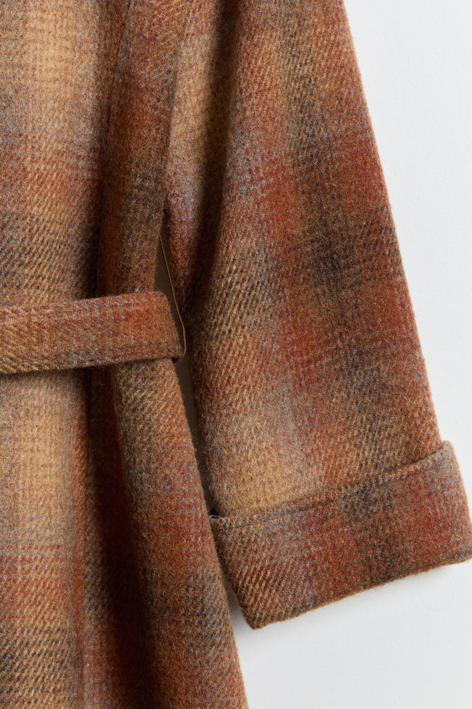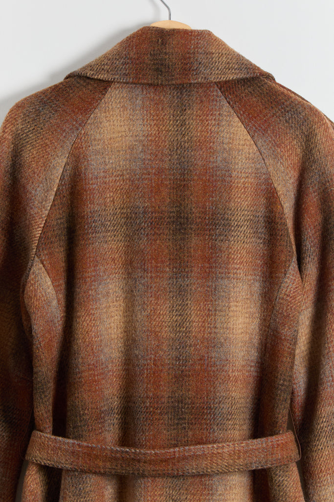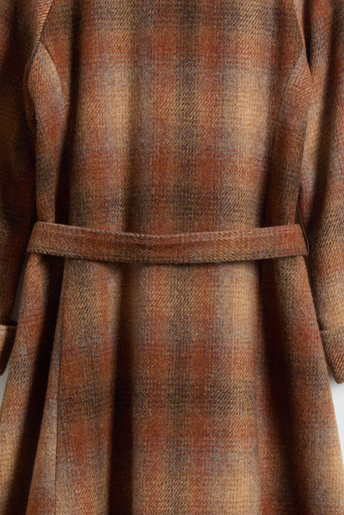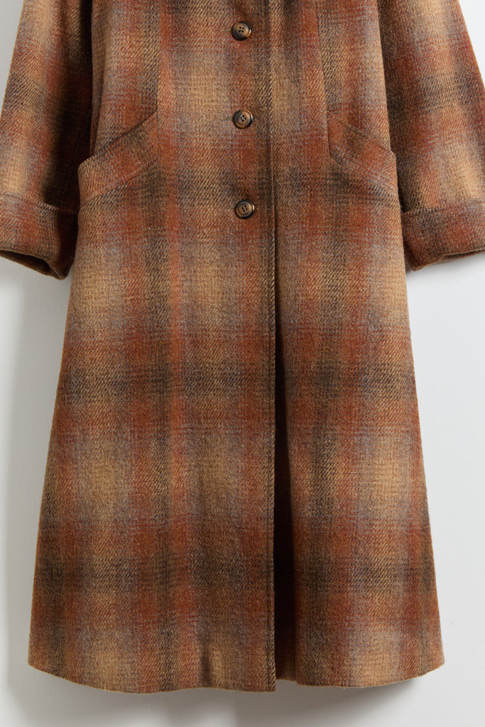 70s Brown Wool Plaid Long Wrap Coat M/L