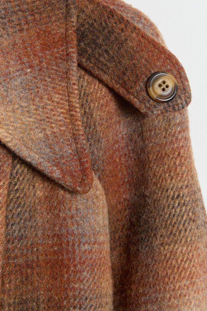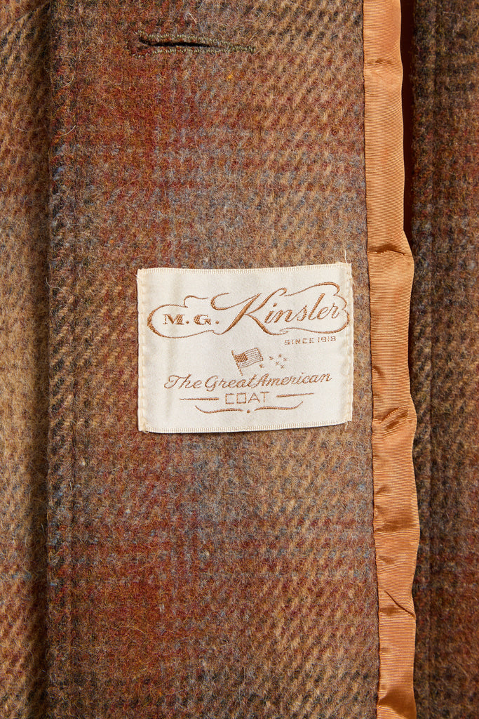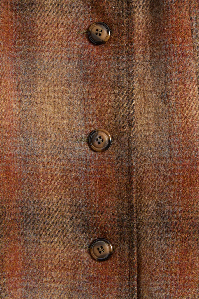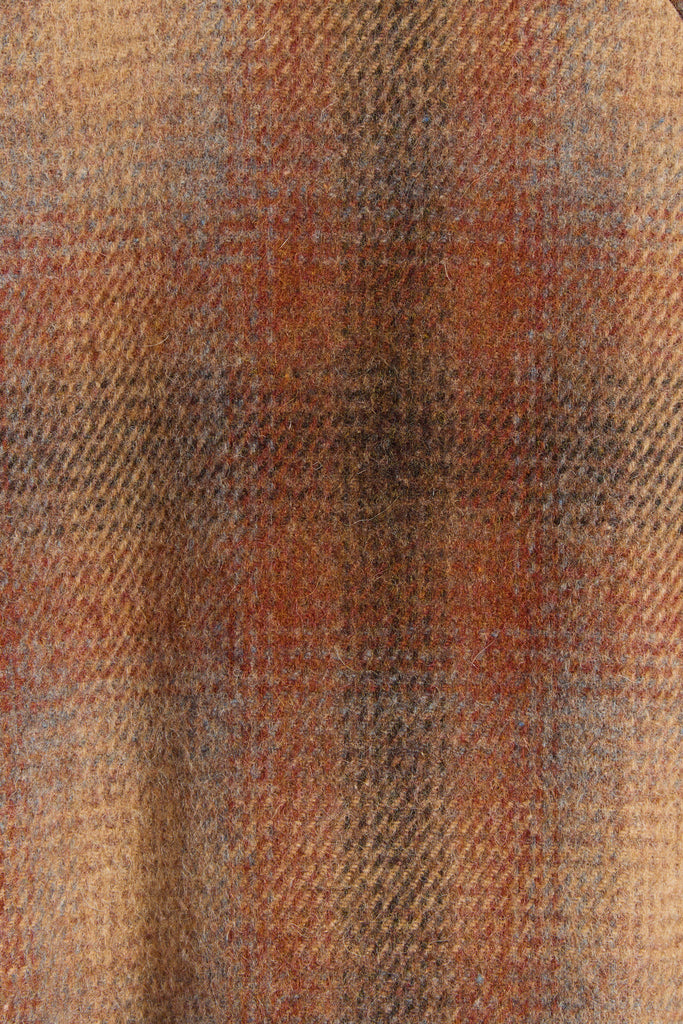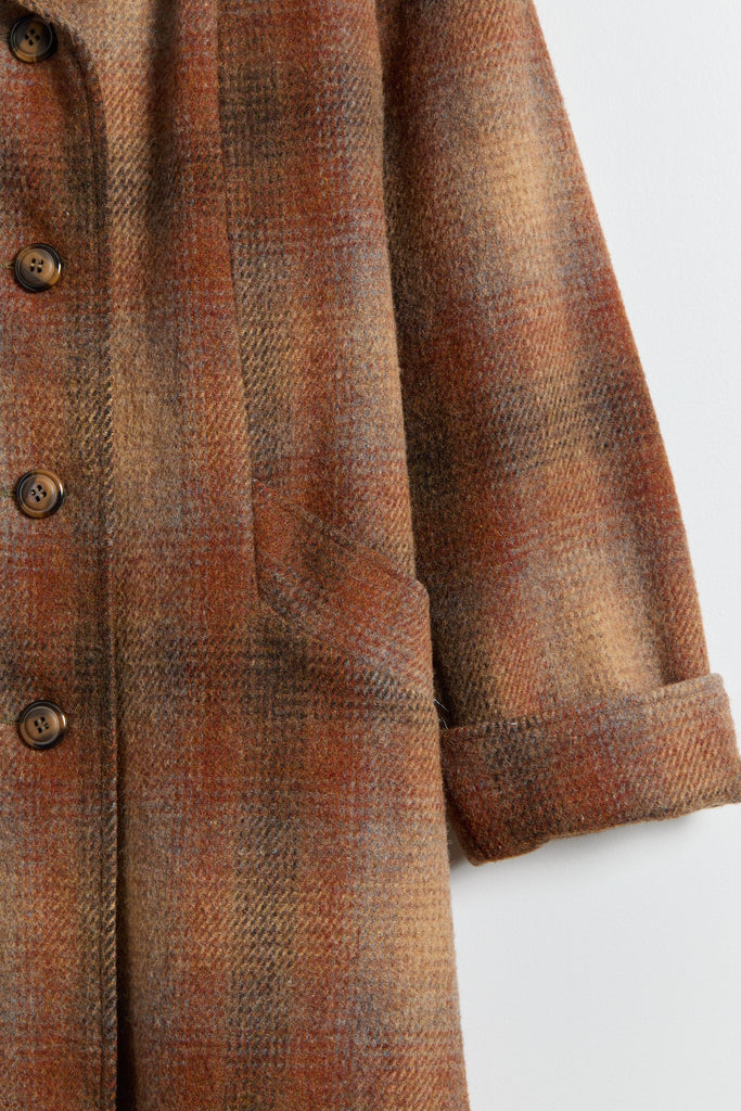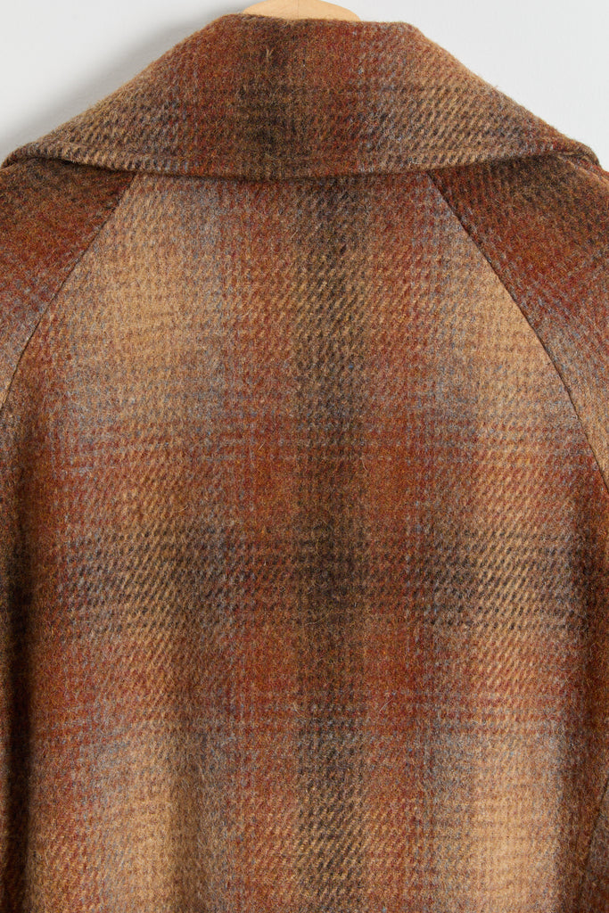 70s Brown Wool Plaid Long Wrap Coat M/L