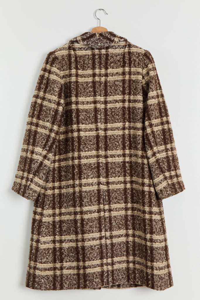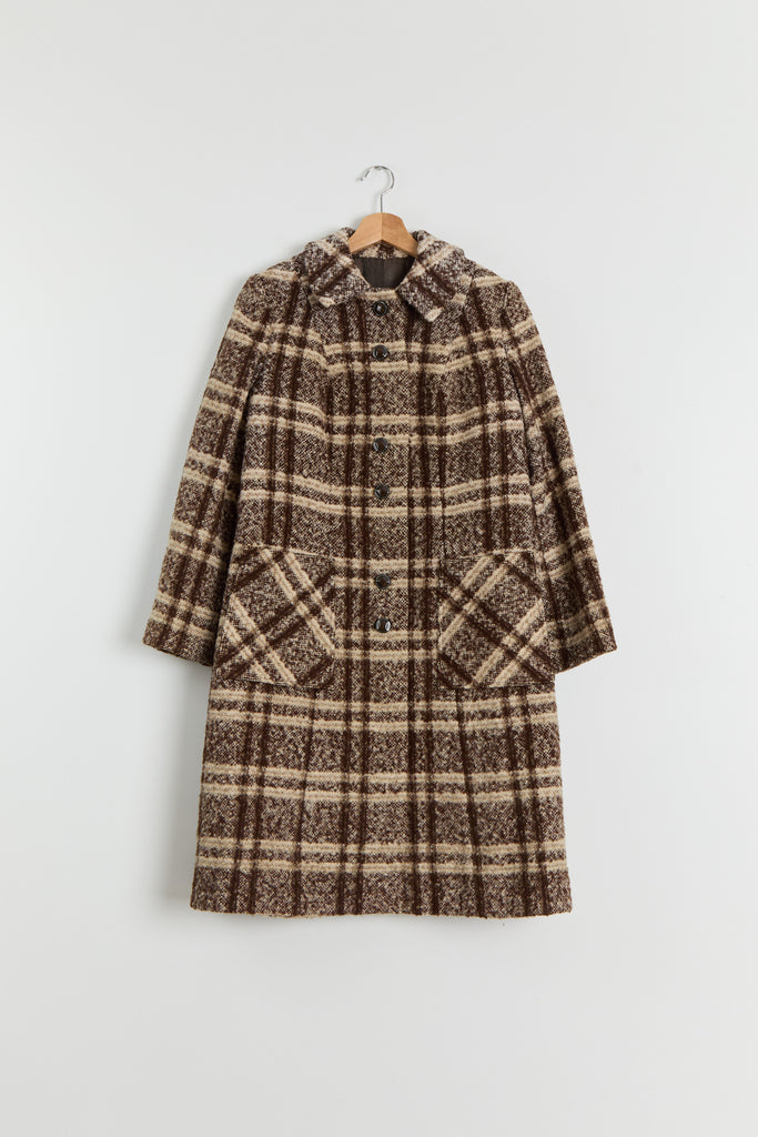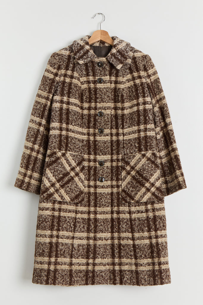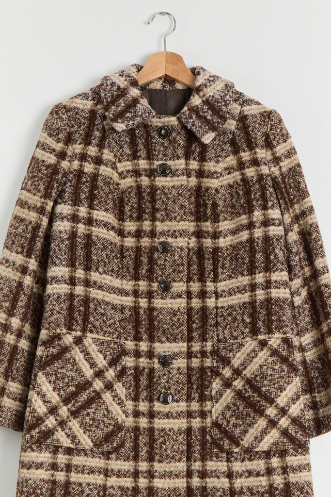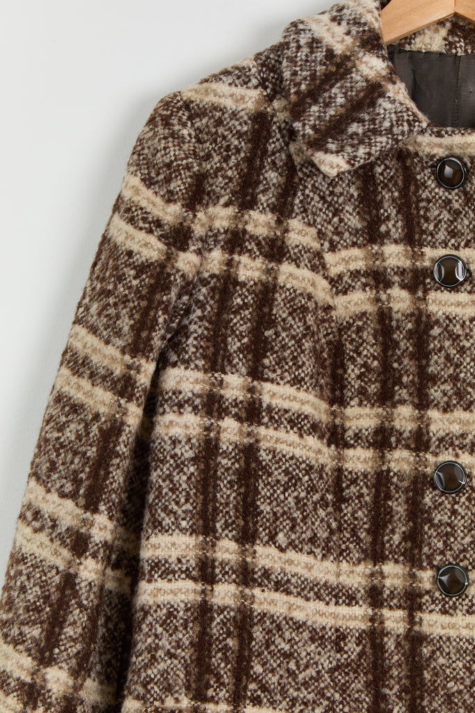 70s Brown Wool Plaid Pocket Coat L