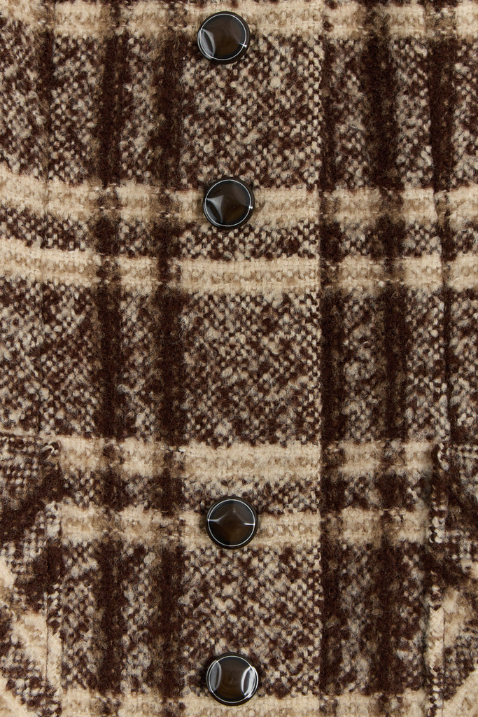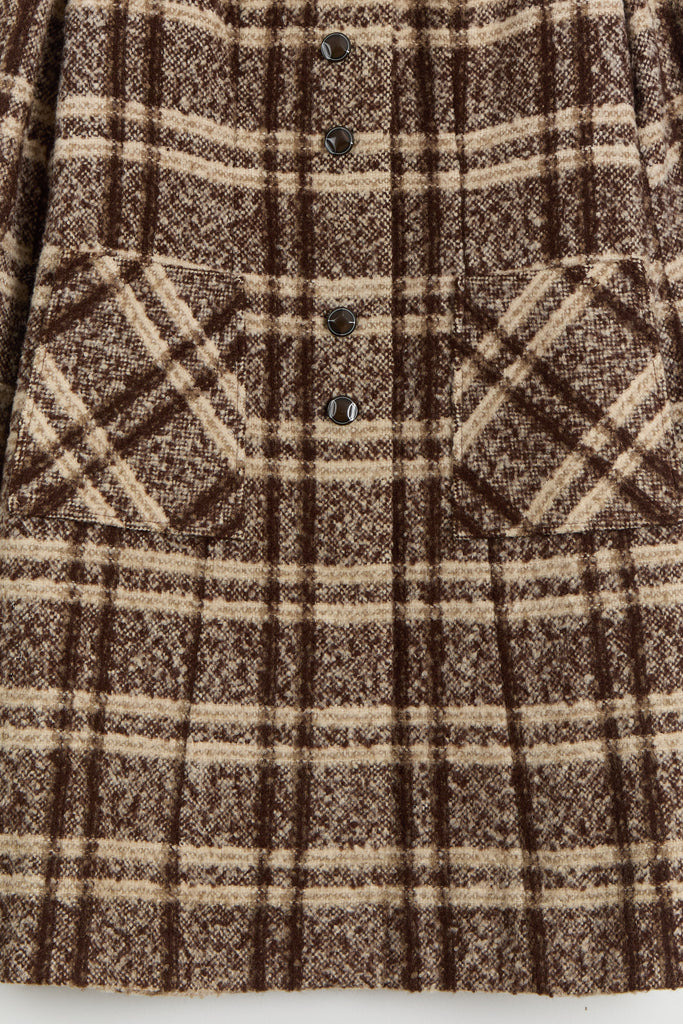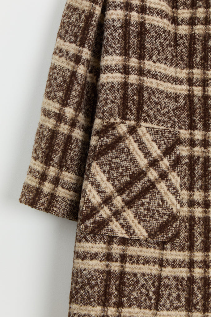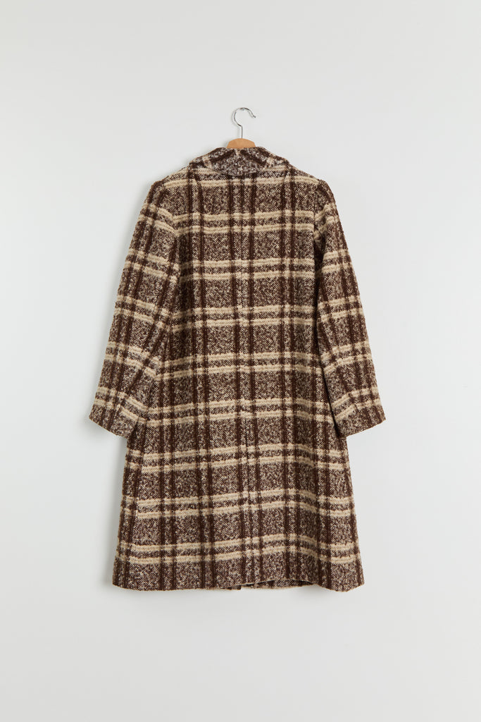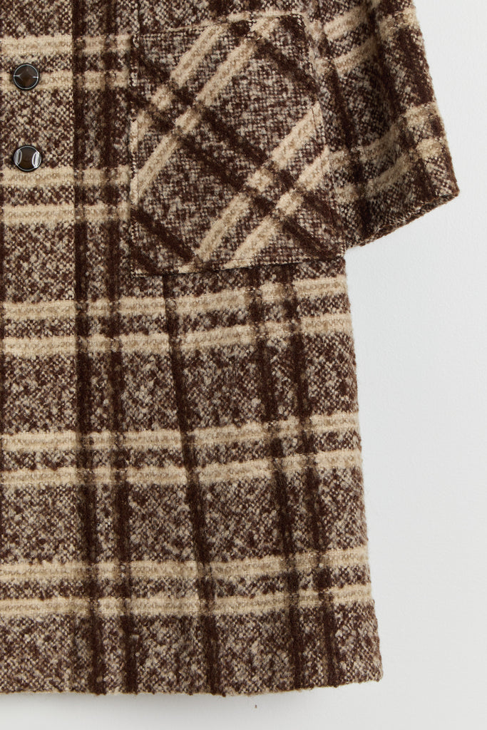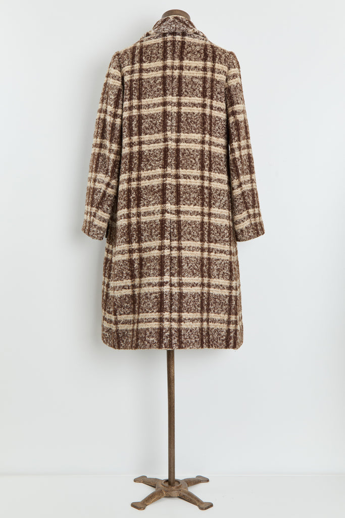 70s Brown Wool Plaid Pocket Coat L