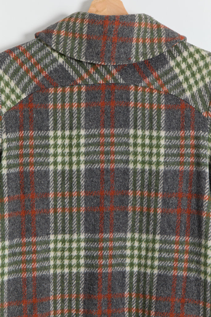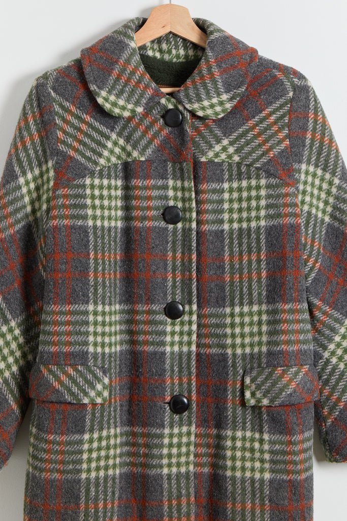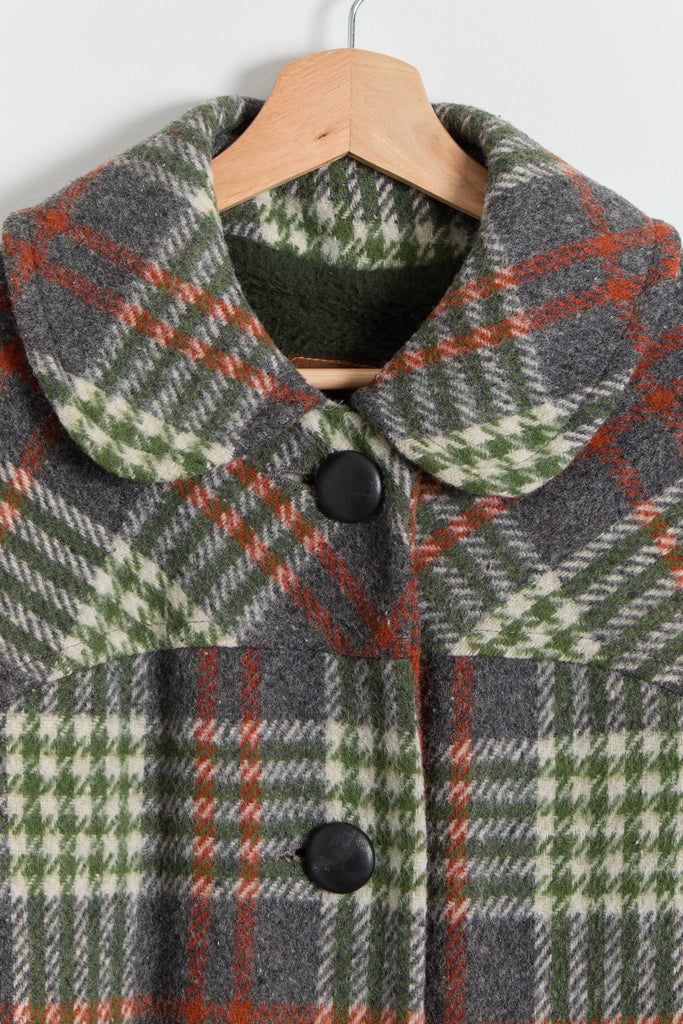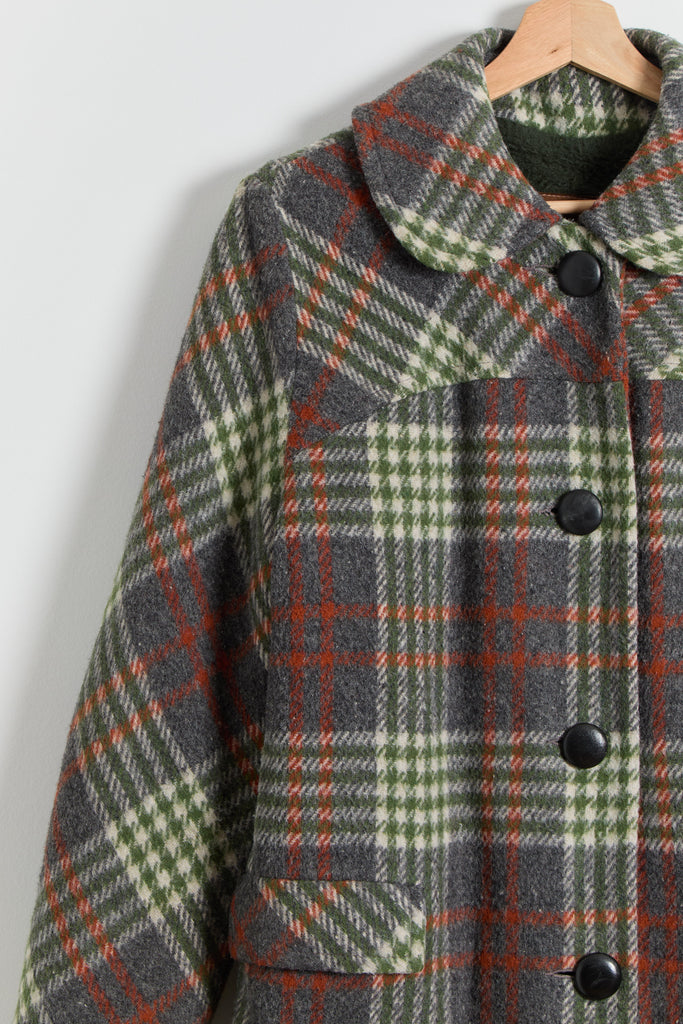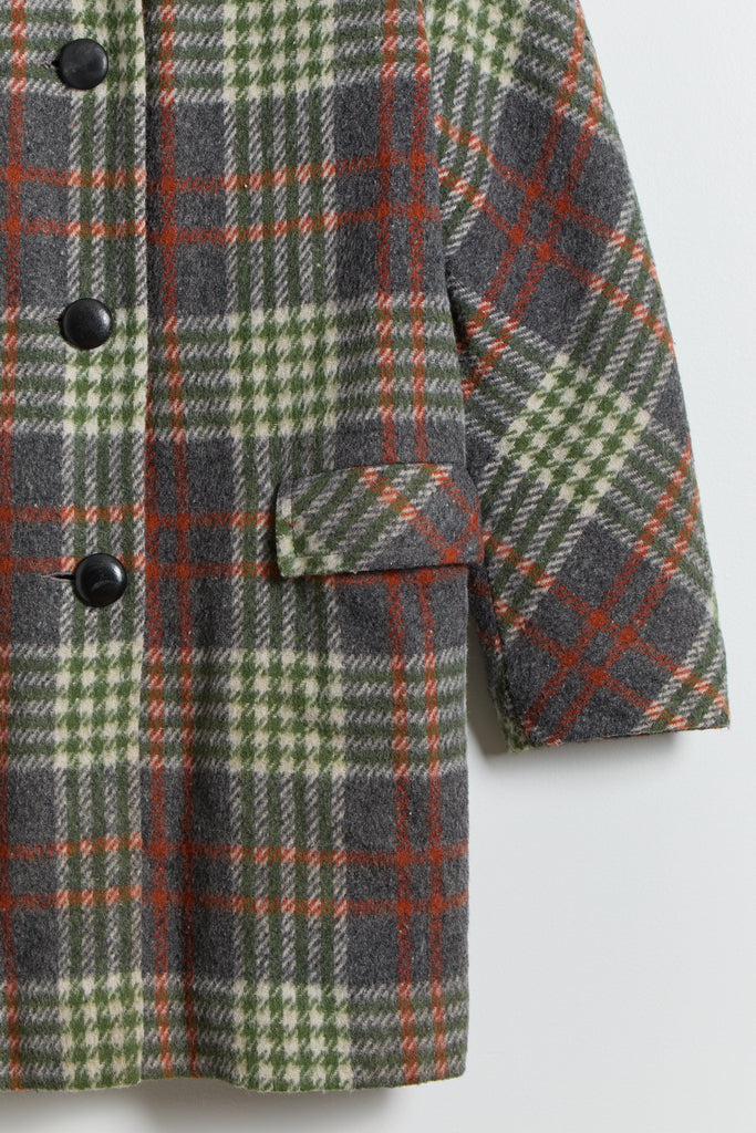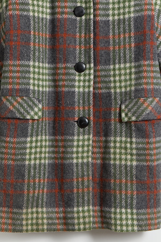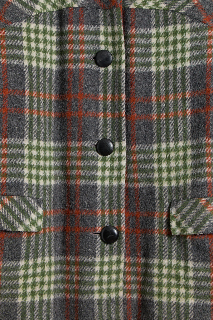 70s Grey Rust Olive Plaid Wool Coat M/L