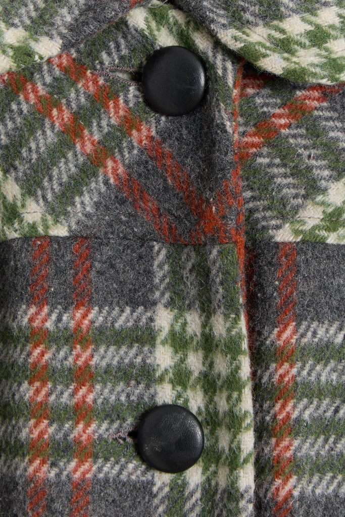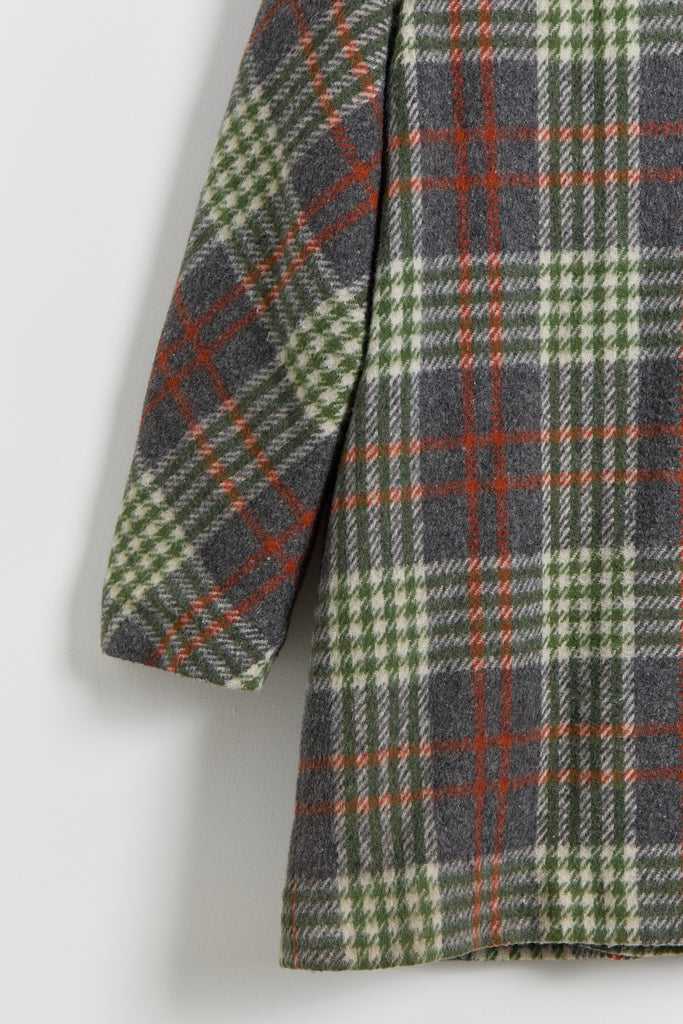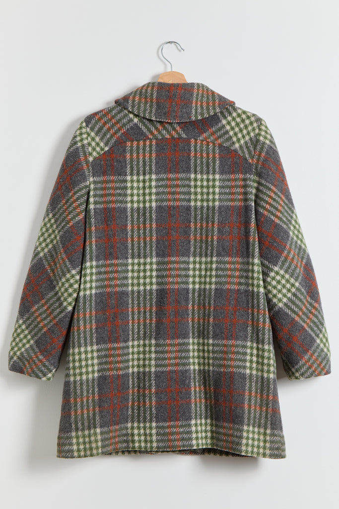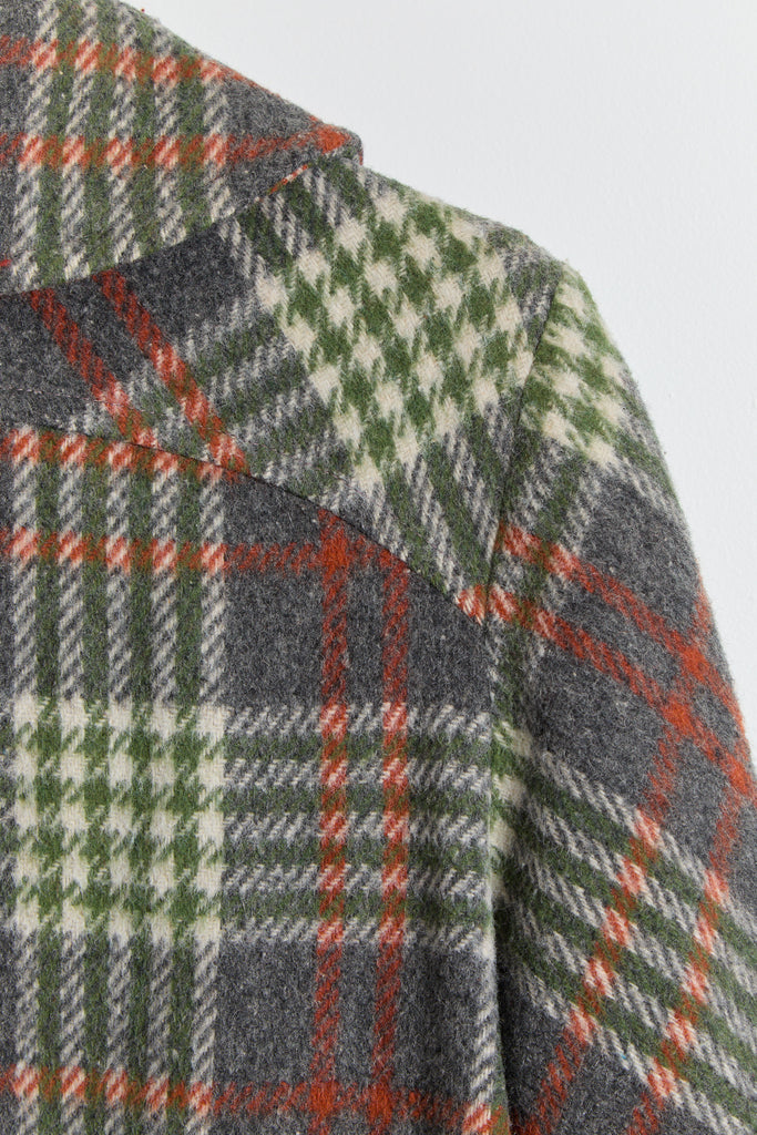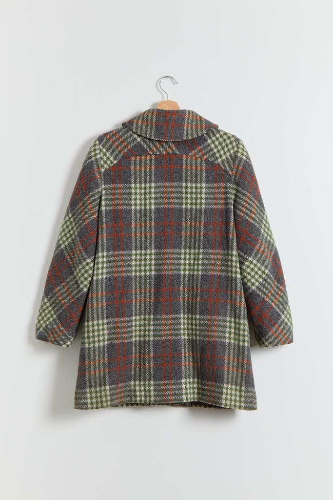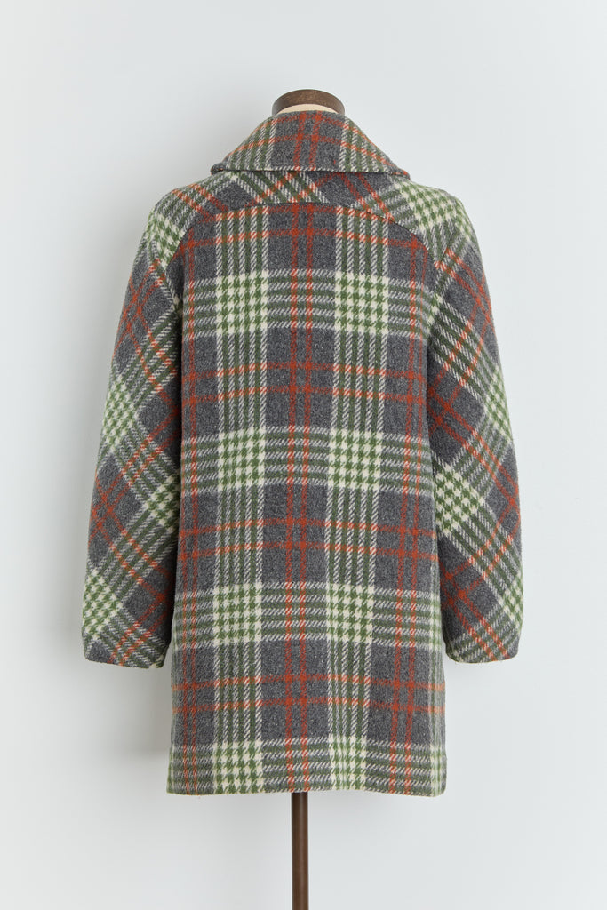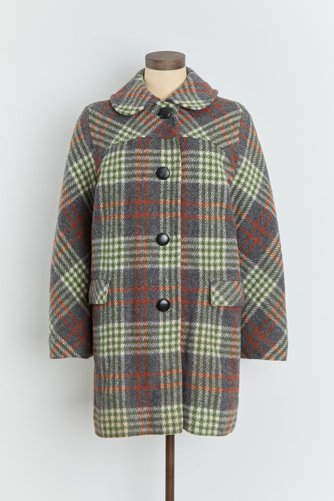 70s Grey Rust Olive Plaid Wool Coat M/L