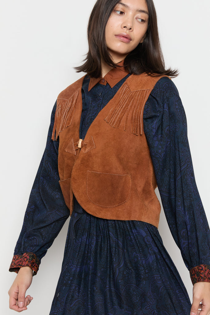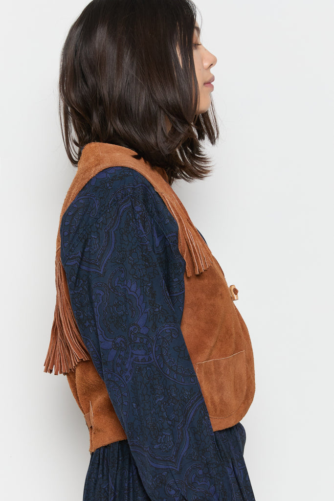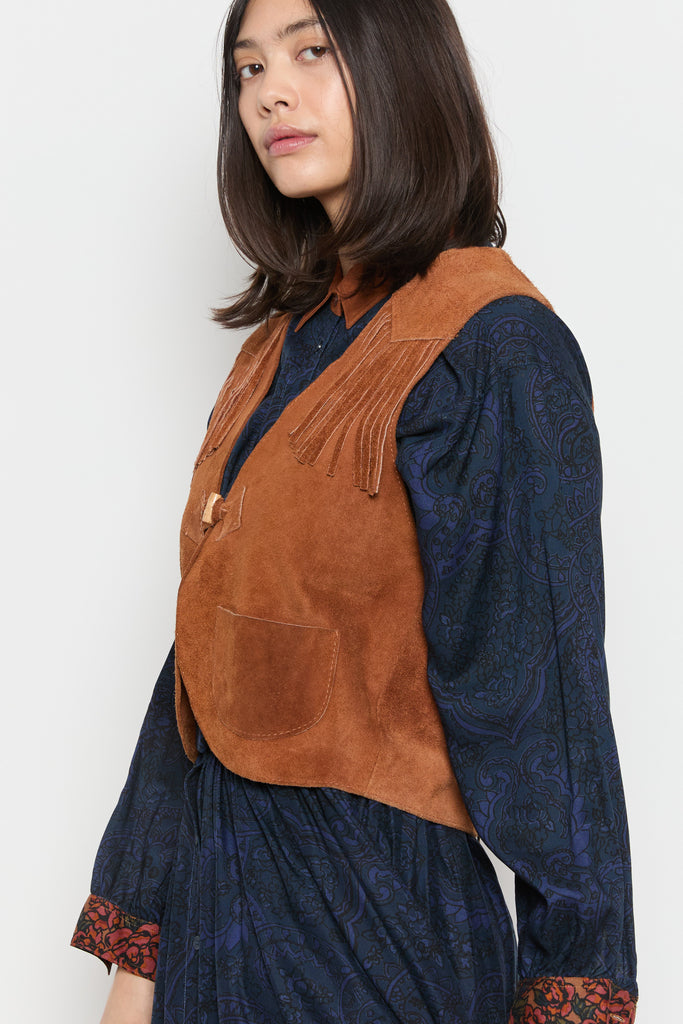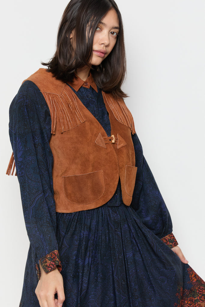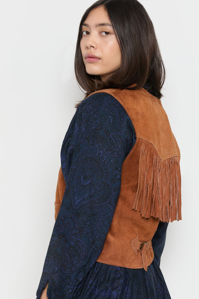 70s Whiskey Suede Fringe Vest M