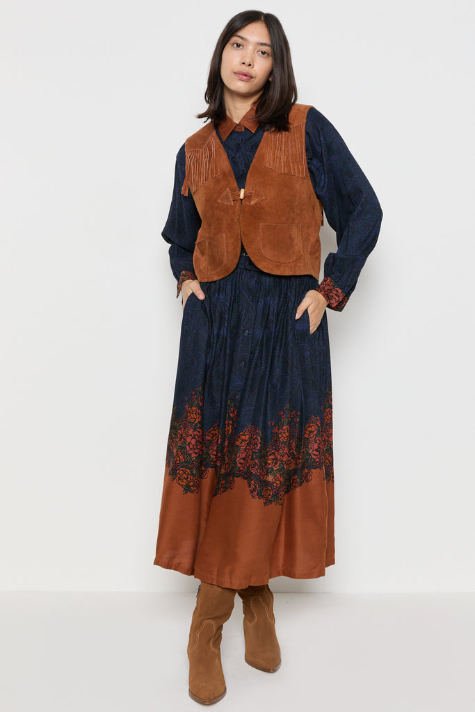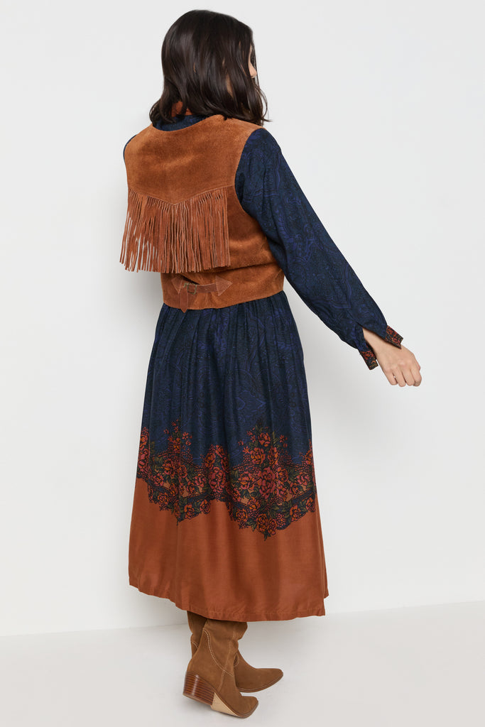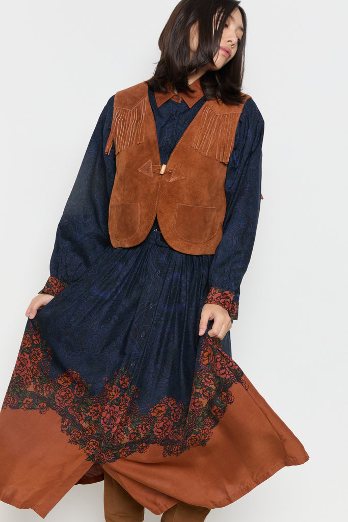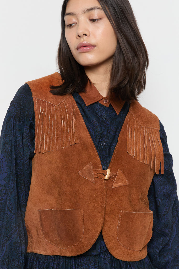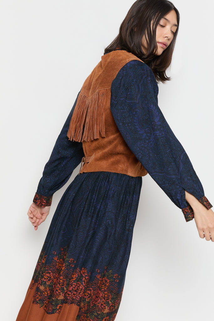 70s Whiskey Suede Fringe Vest M