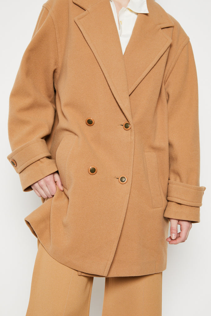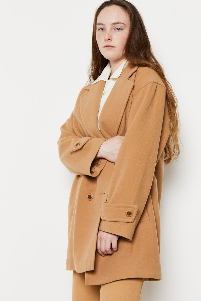 80s Camel Wool Pea Coat L