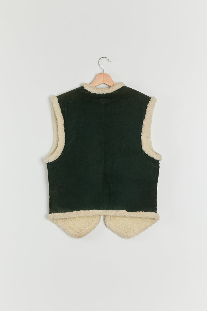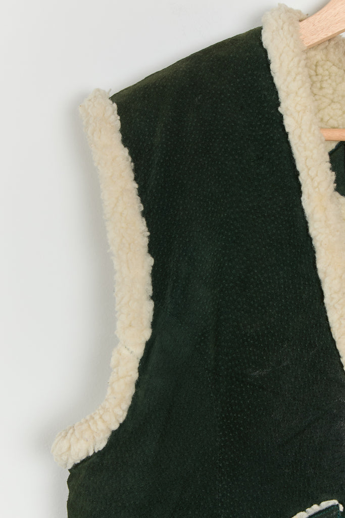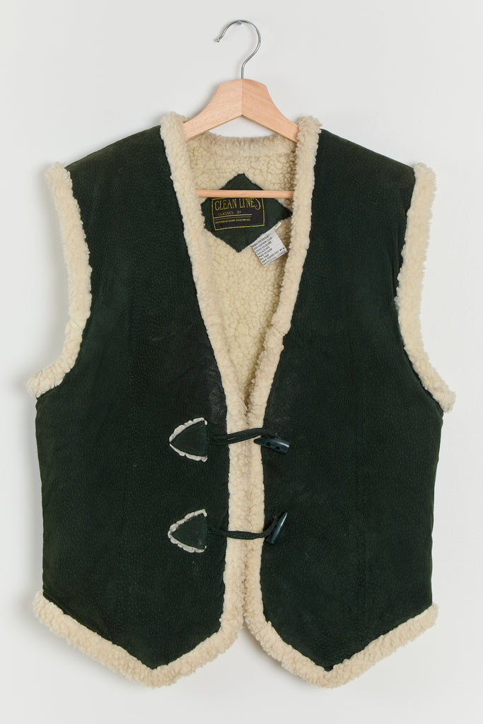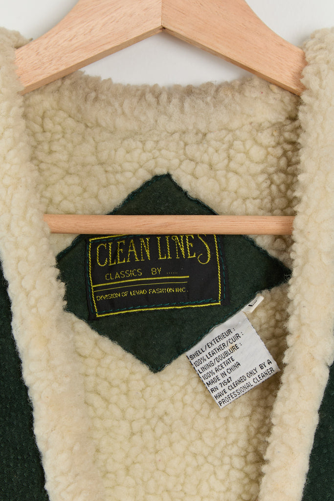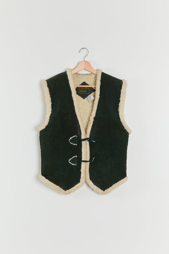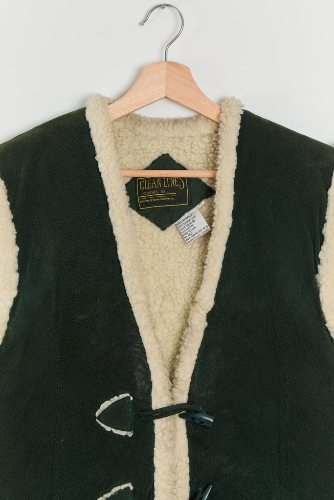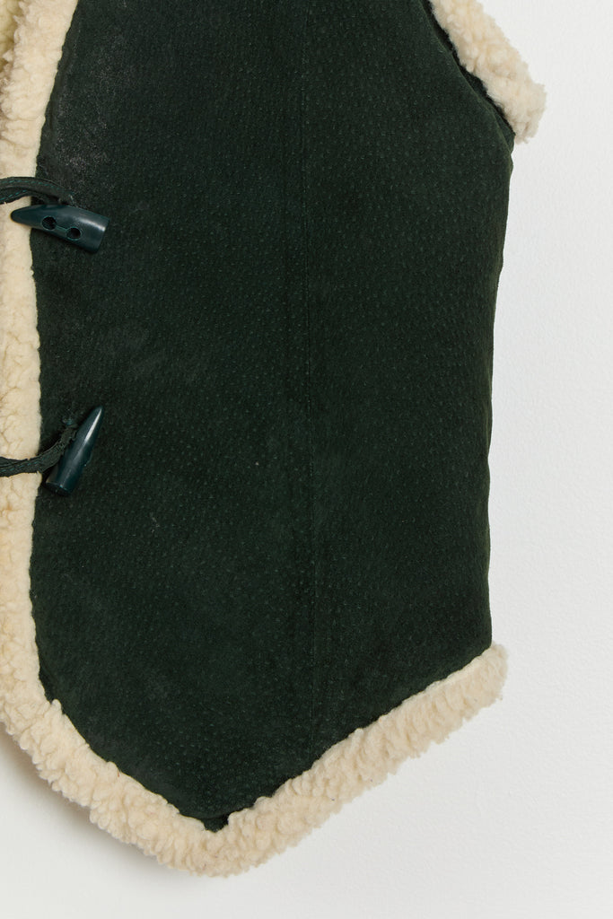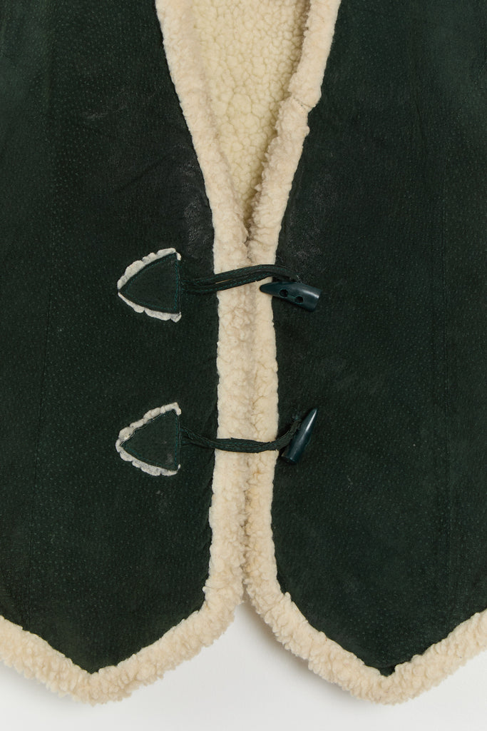 CONDITION / Fair, sherpa lining has some discoloration on inside, suede has some marks and toggle loops are fraying