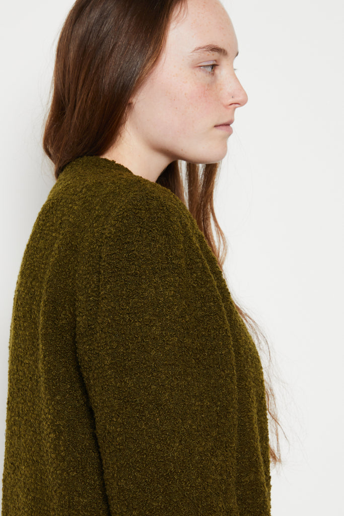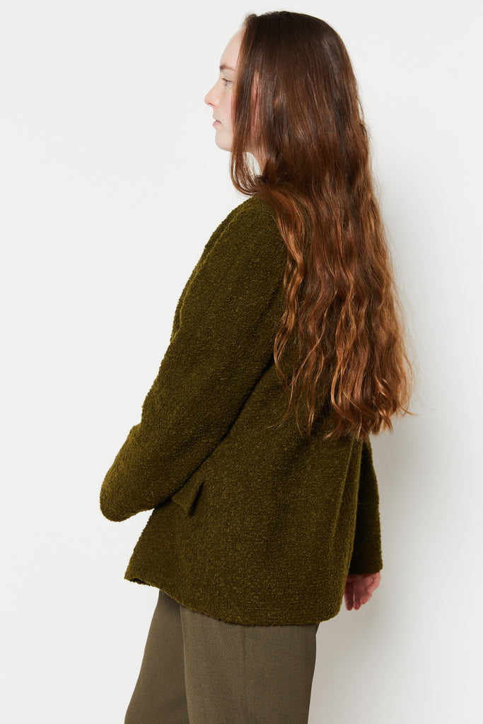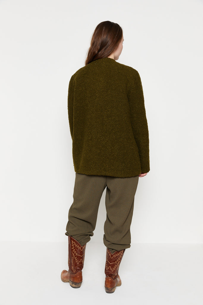 80s Nubby Olive Collarless Jacket L