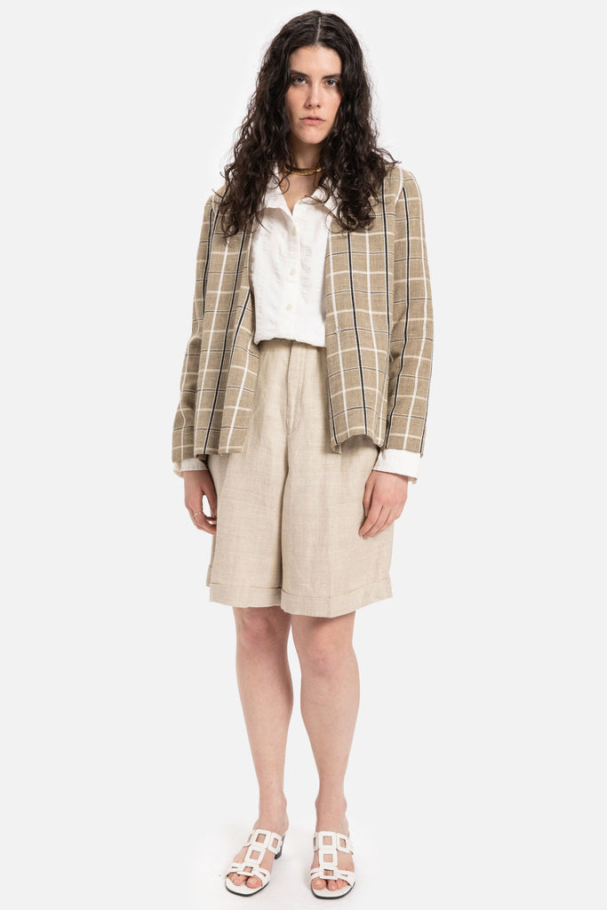 MATERIAL / N/A, feels like a linen or blend, lightweight woven fabric, fully lined