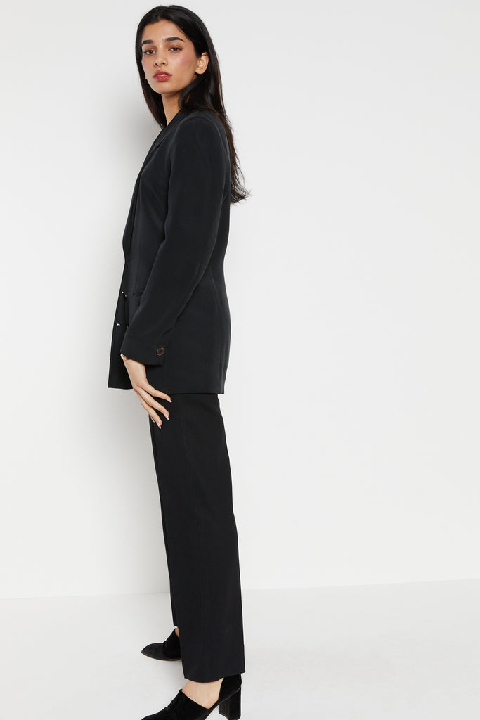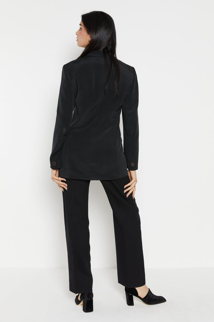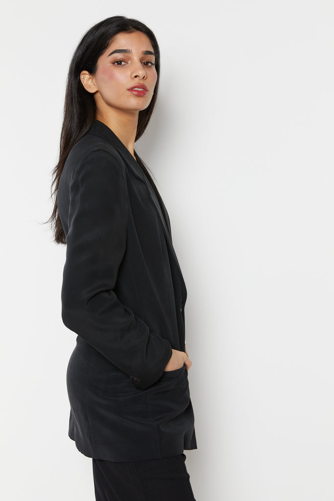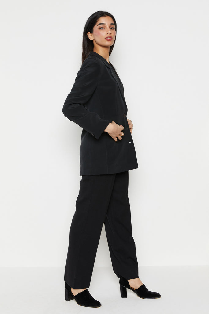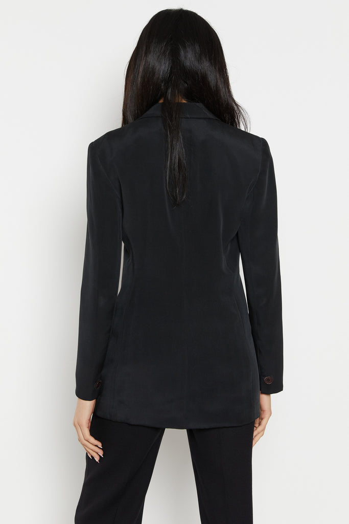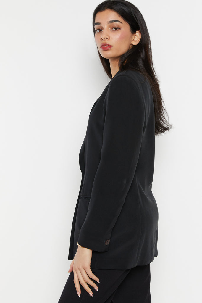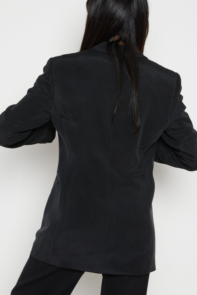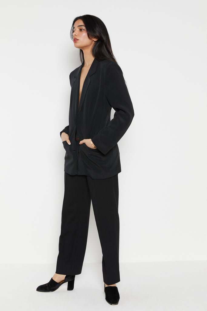 90s Black Minimal Silk Blazer S