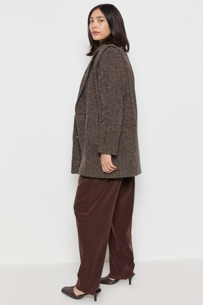 FIT / Would look great on smaller sizes for an oversized fit. For reference, model is 5’7 and wears a size 4/6