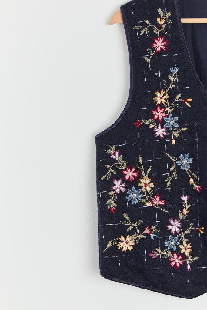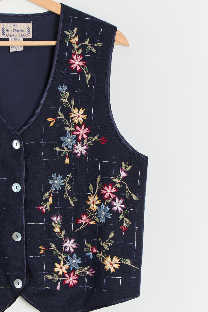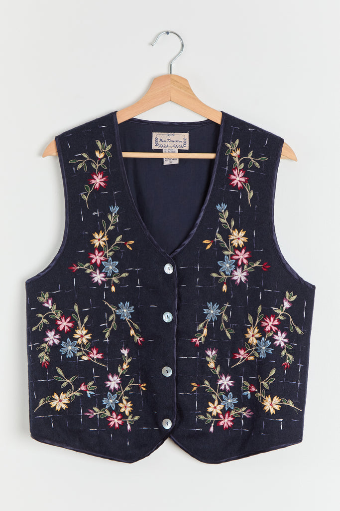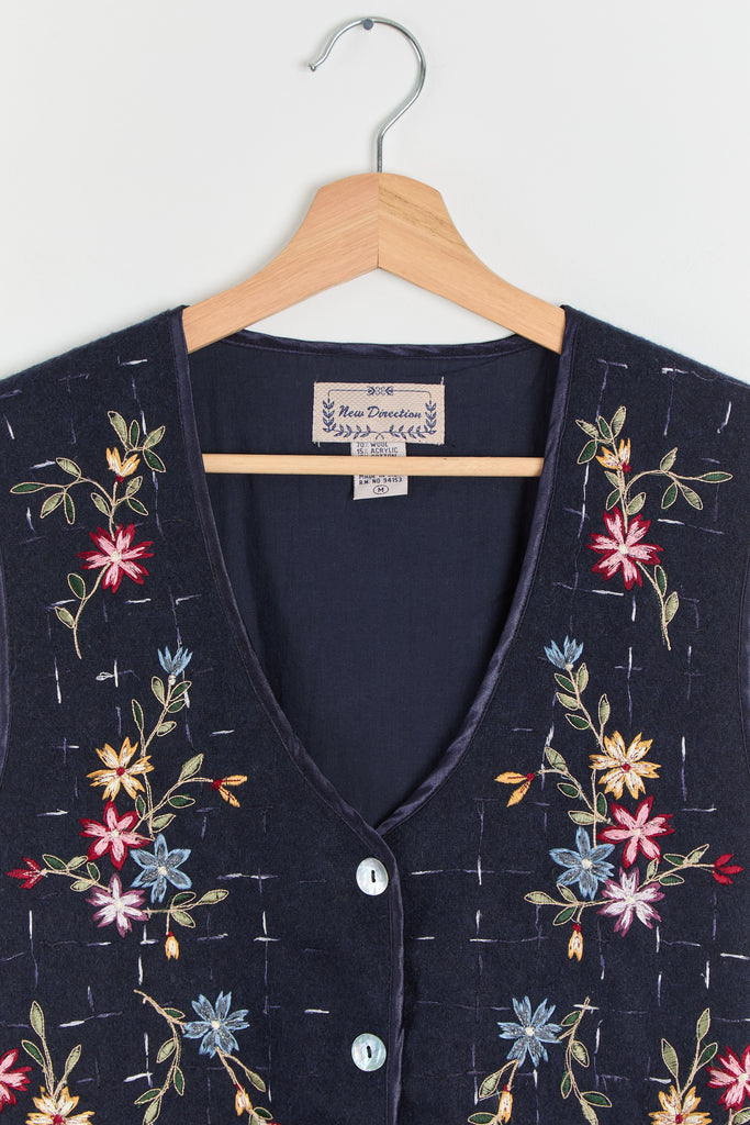 90s Midnight Floral Embroidered Vest M/L