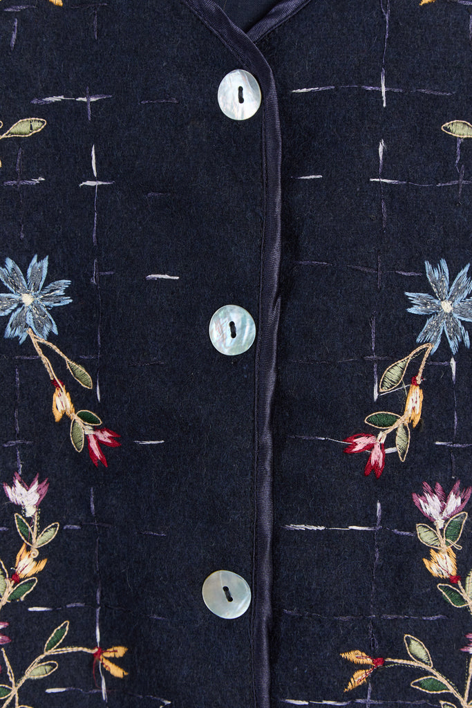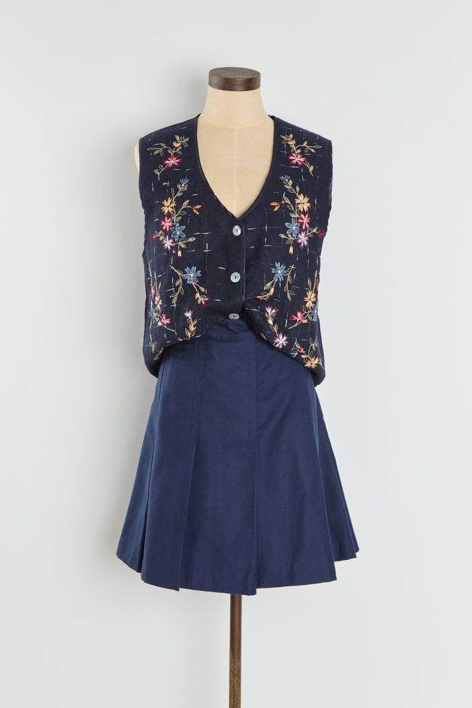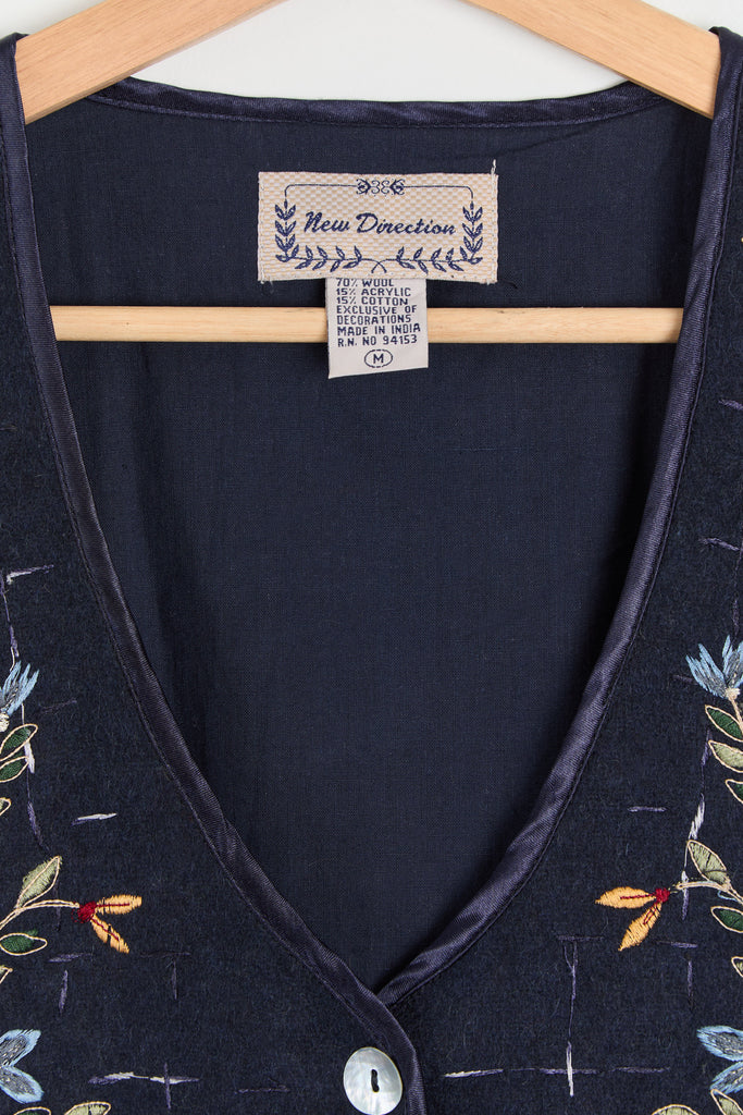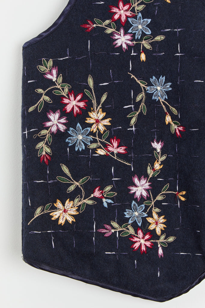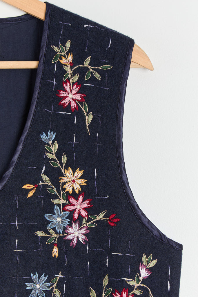 90s Midnight Floral Embroidered Vest M/L