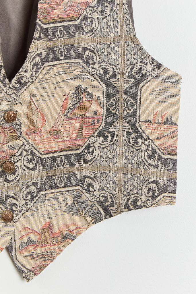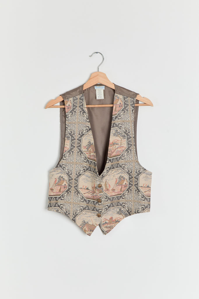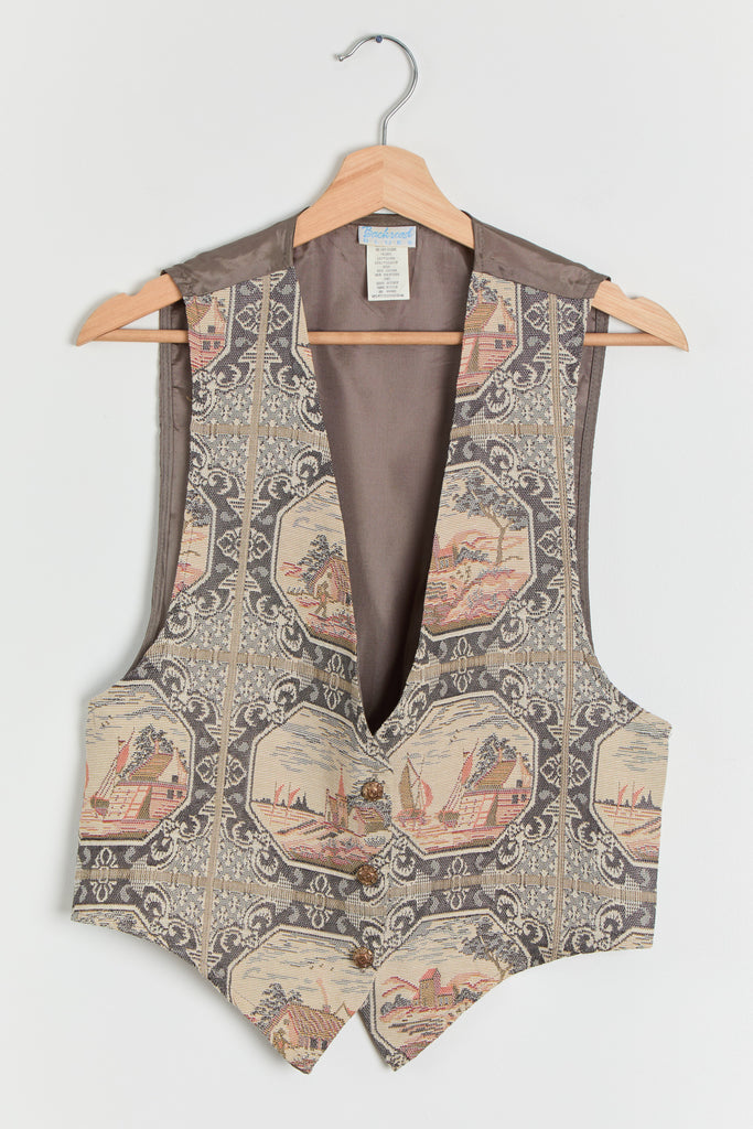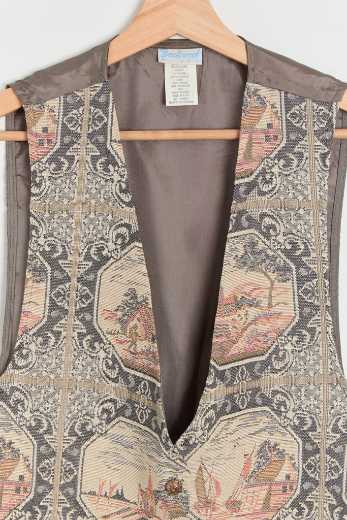90s Pewter Countryside Tapestry Front Vest M