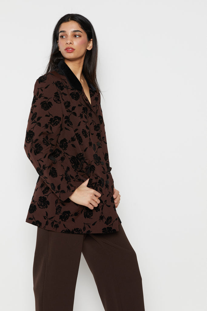 MATERIAL / Polyester, velvet flocked light weight suiting, fully lined