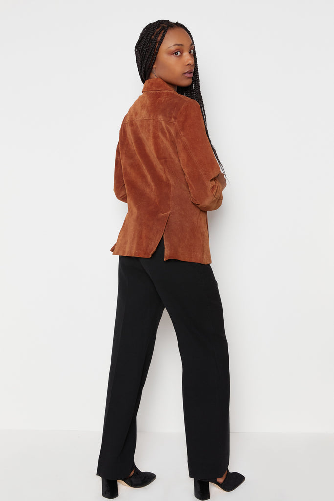 MATERIAL / Genuine leather / Polyester lining, medium weight soft but structured suede, fully lined