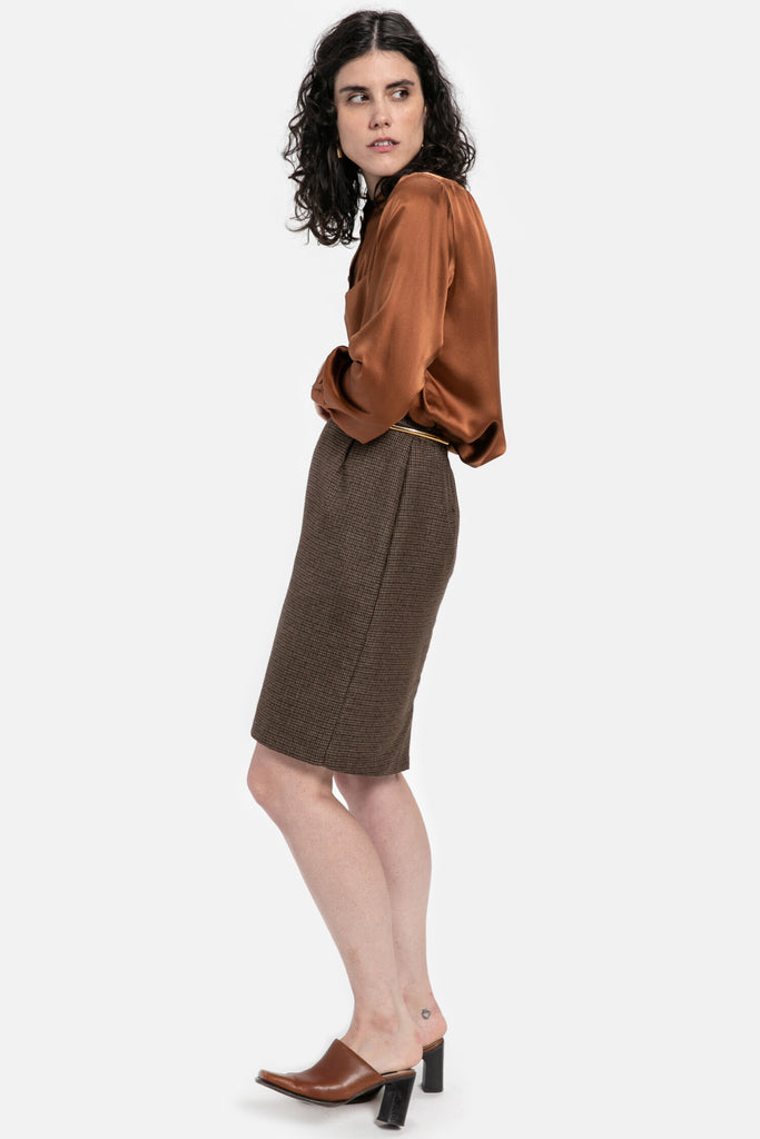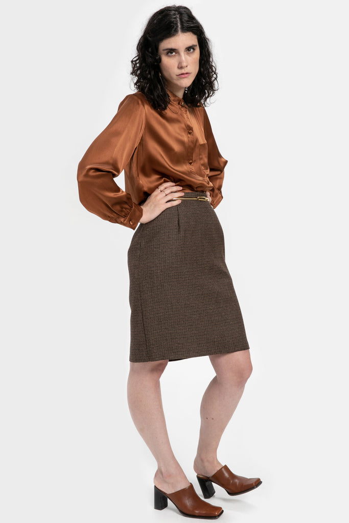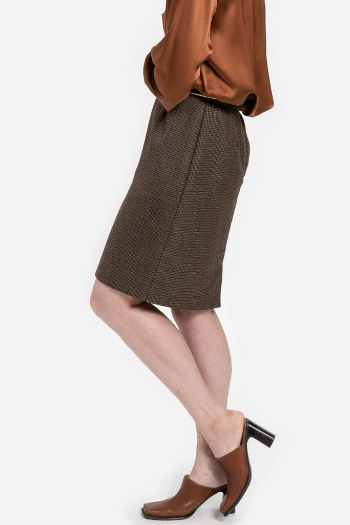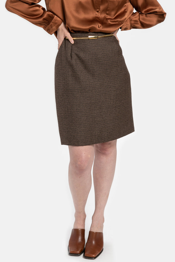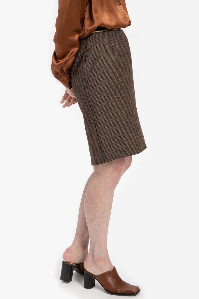 80s Brown Plaid Skirt M