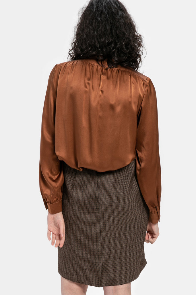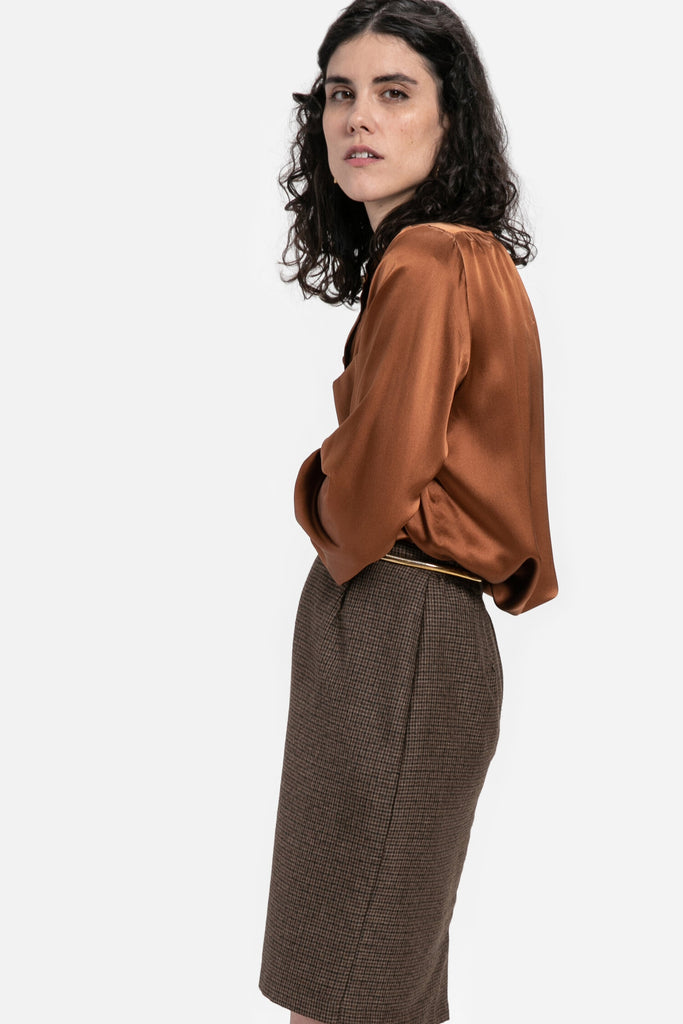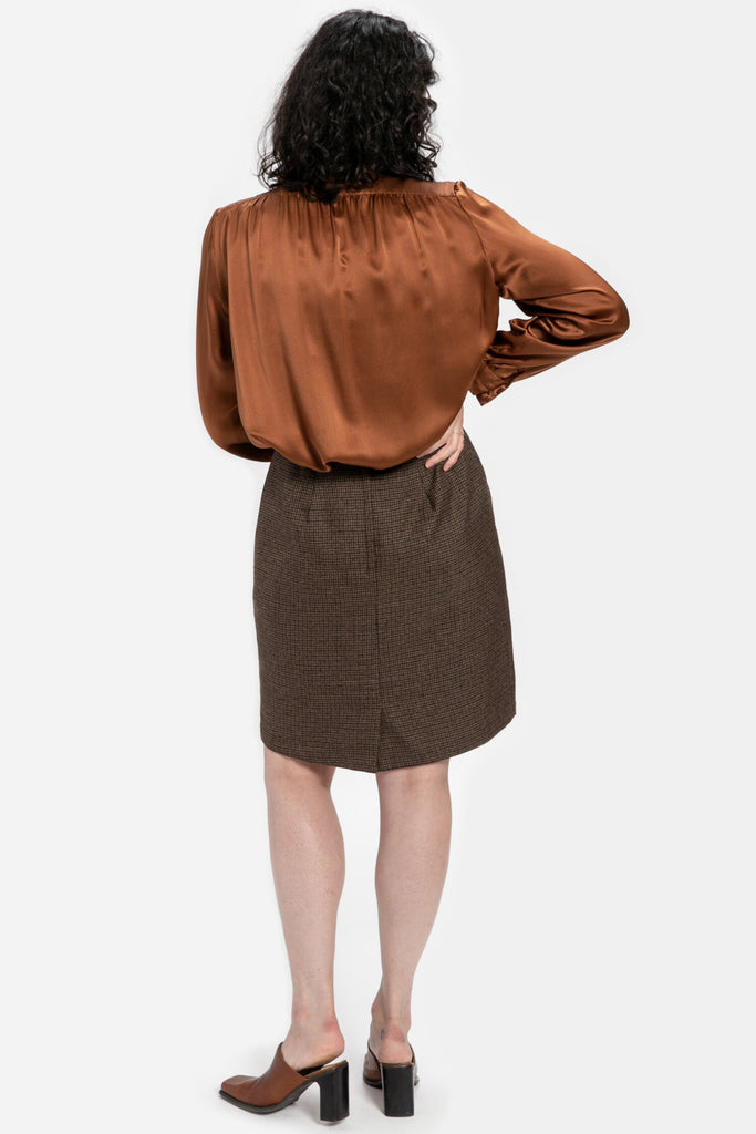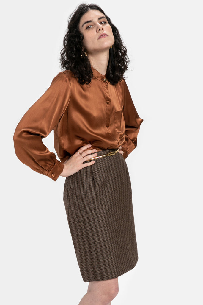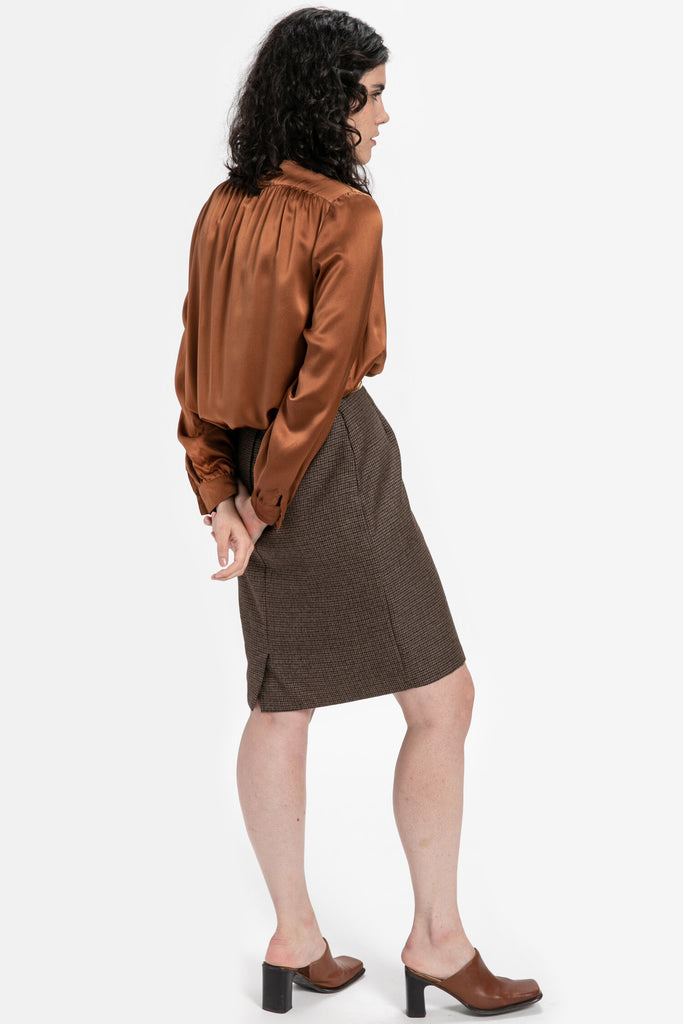 80s Brown Plaid Skirt M