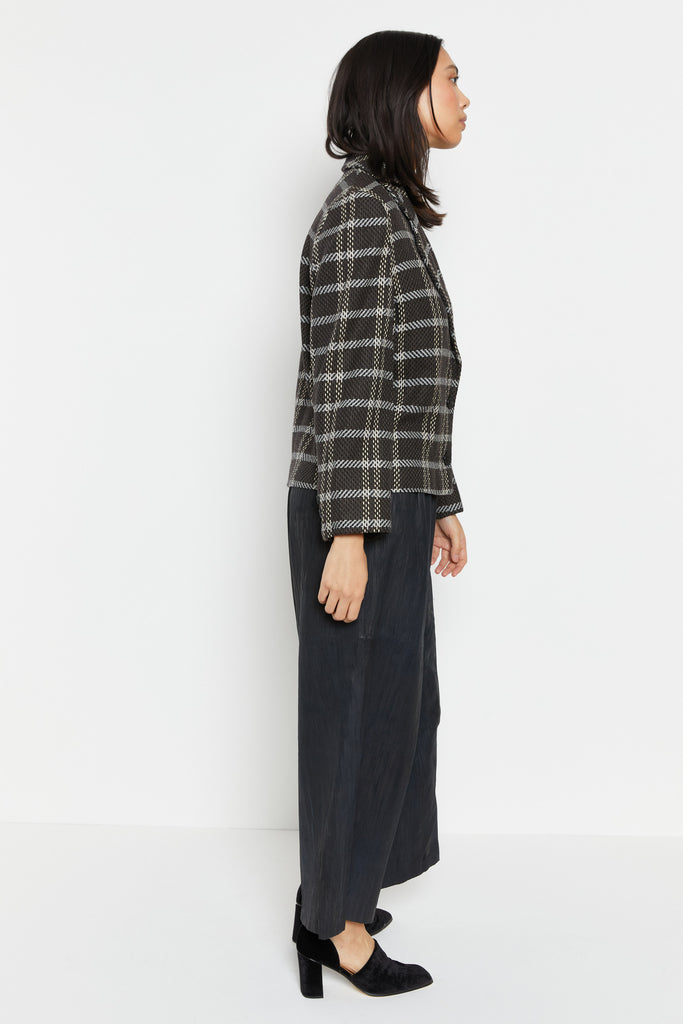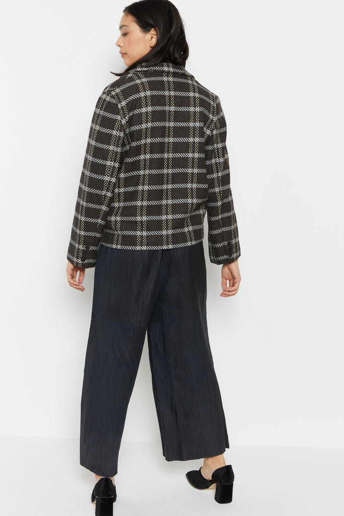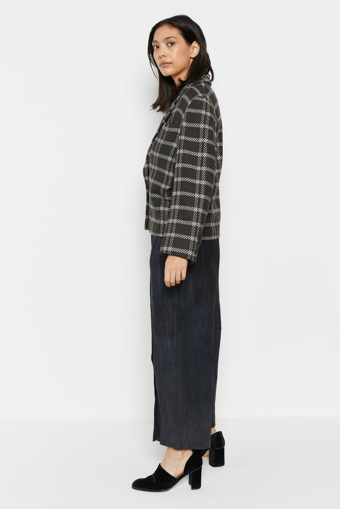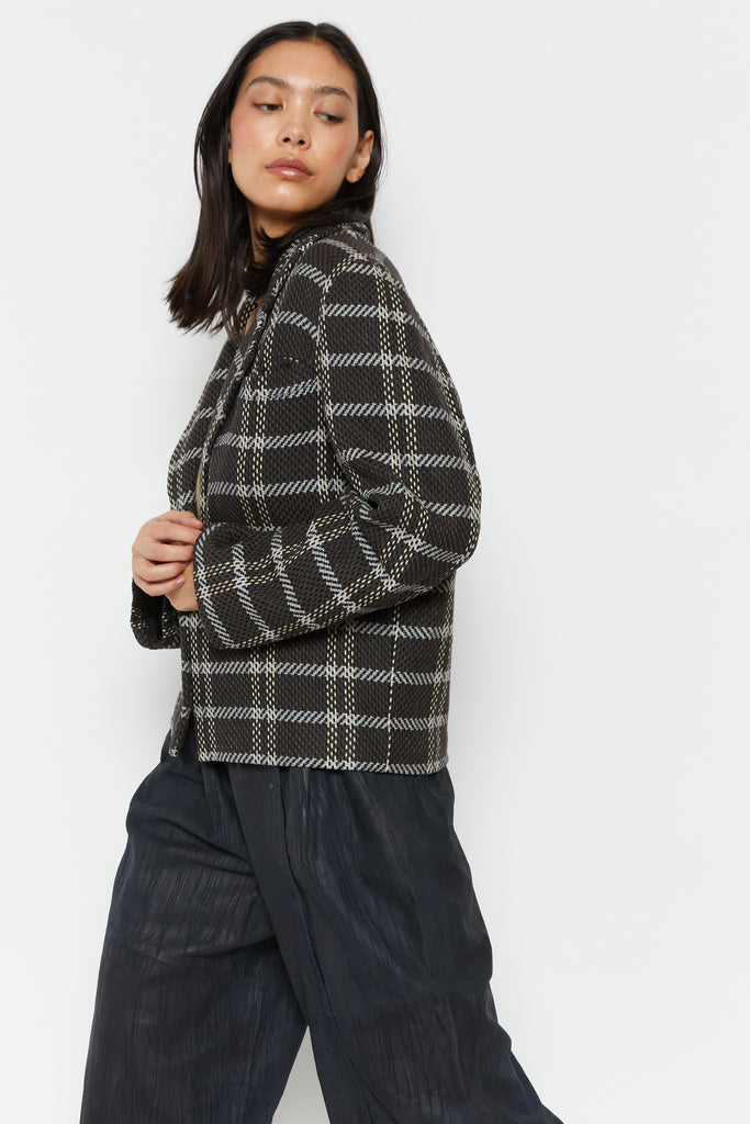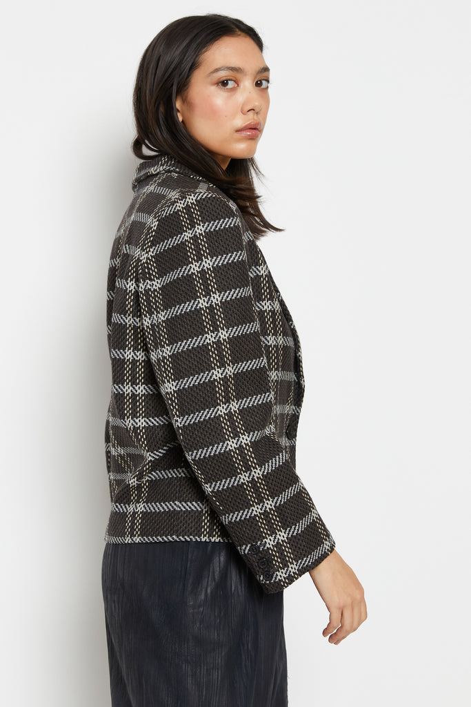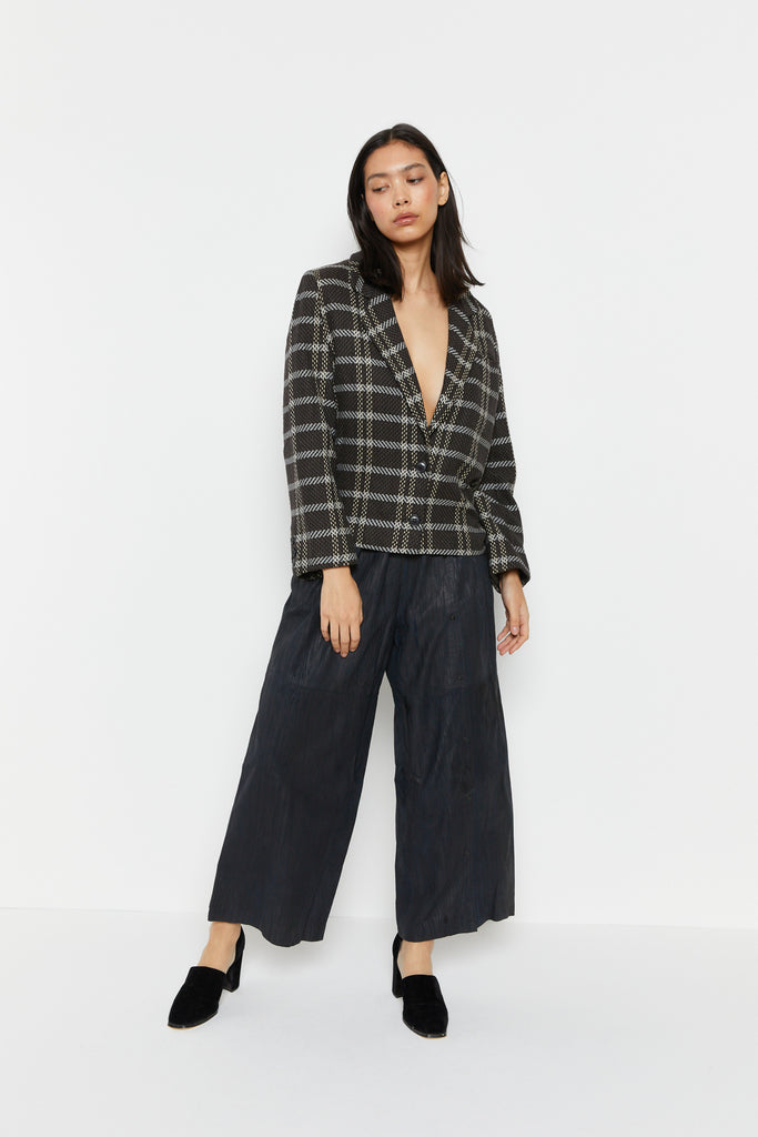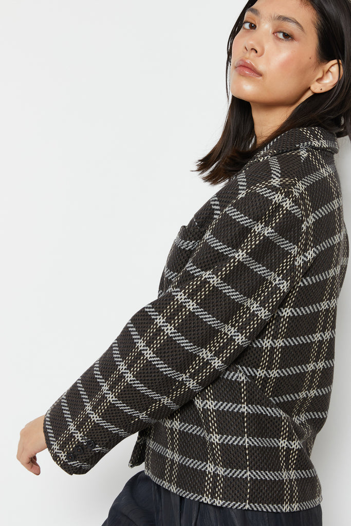 80s Charcoal Knit Plaid Blazer L