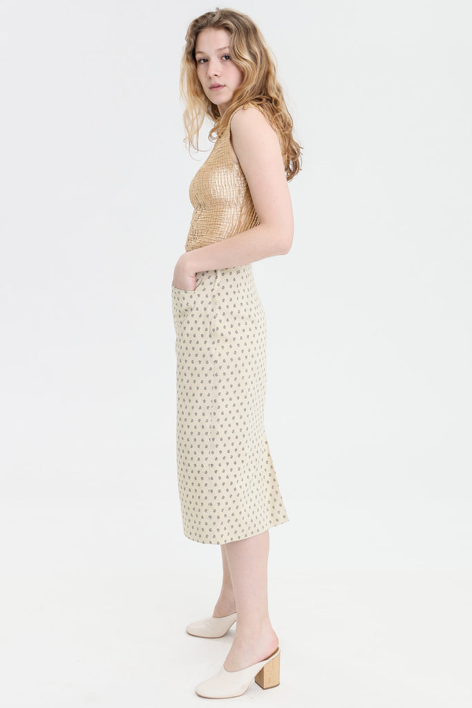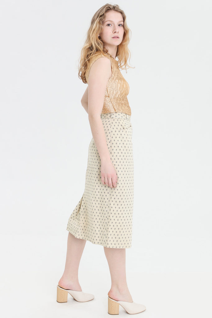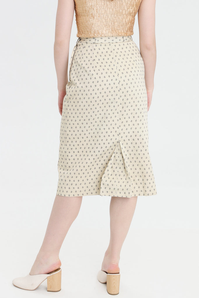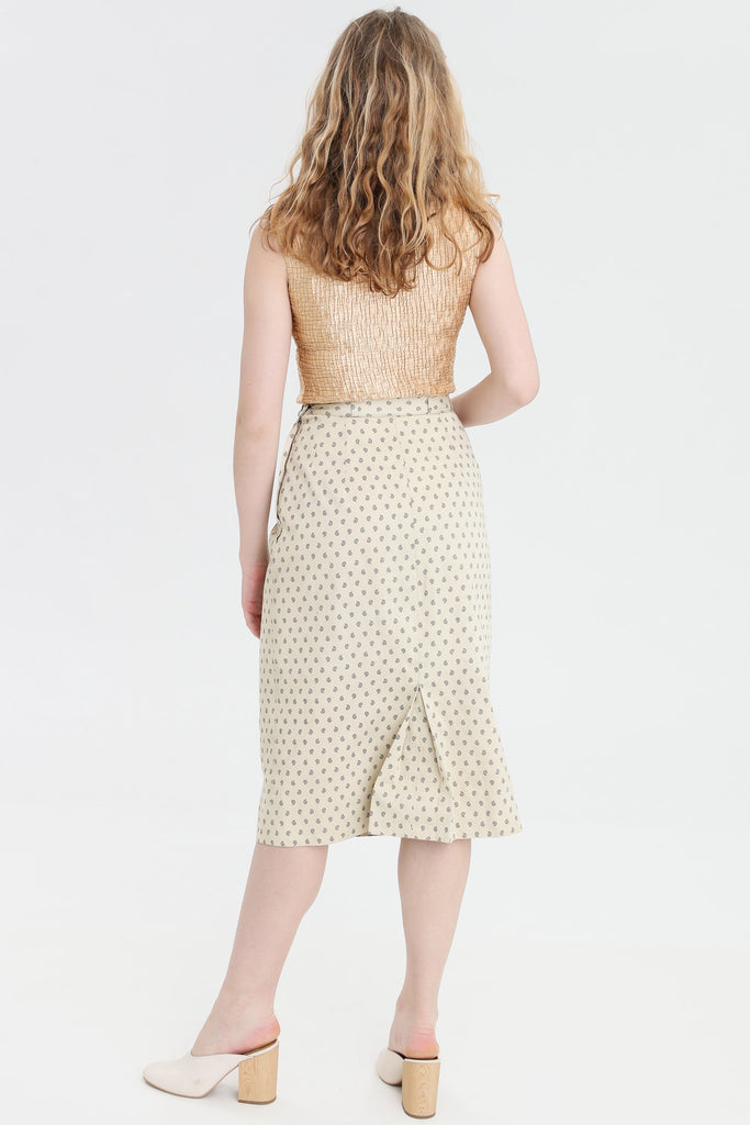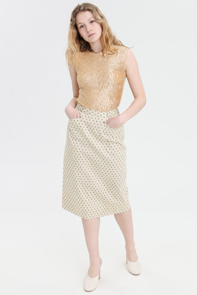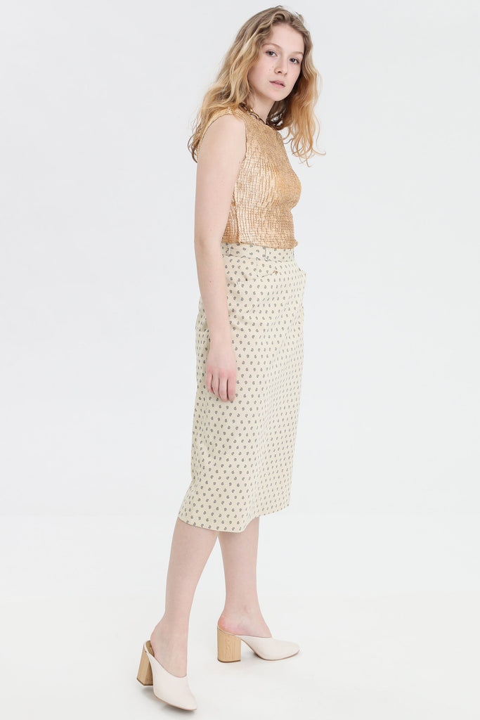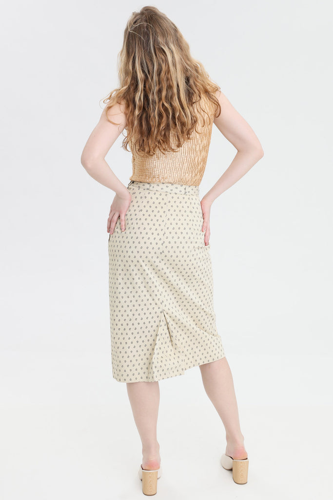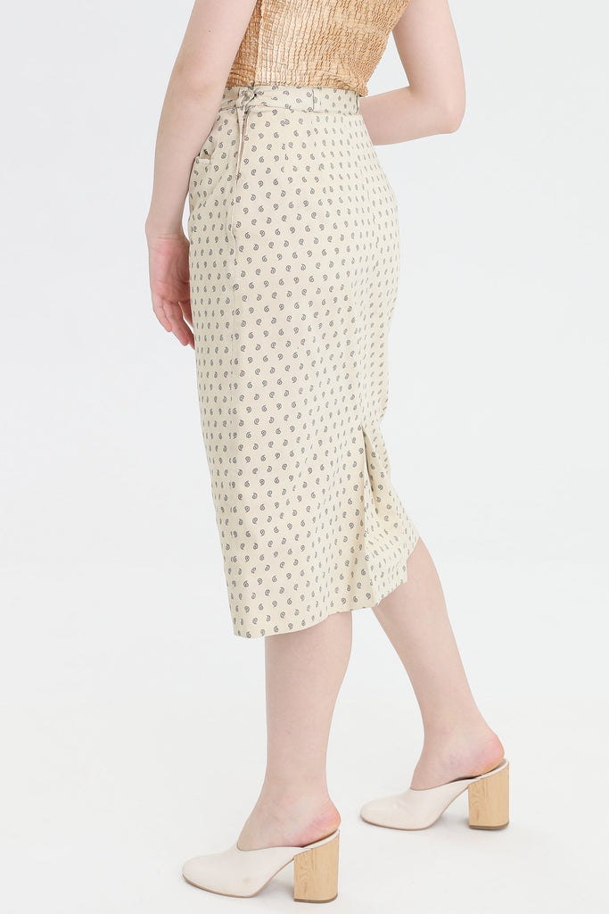 80s Cream Paisley Pencil Skirt S