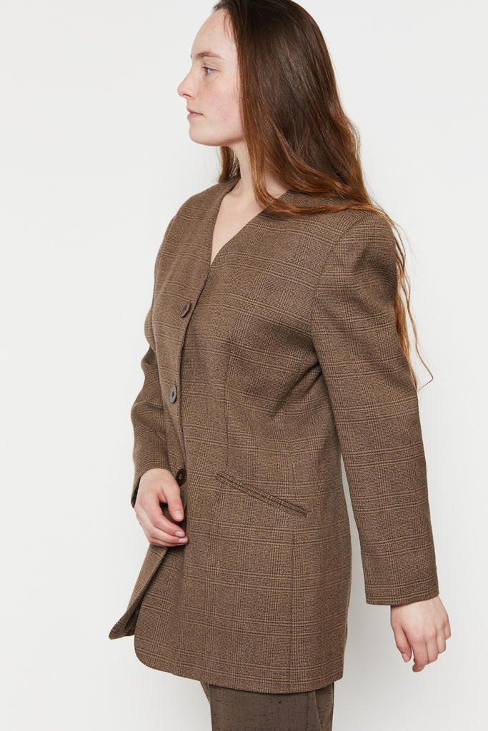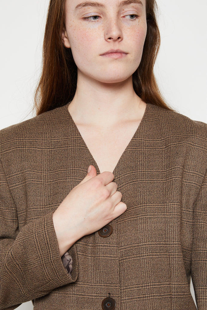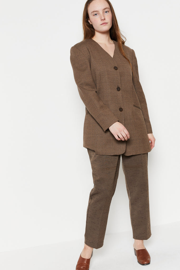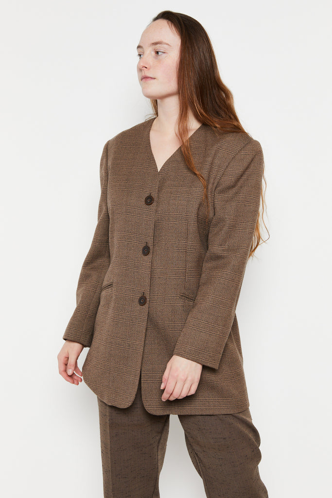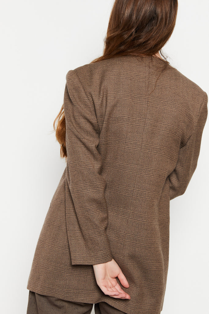 80s Oversized Brown Plaid Blazer L