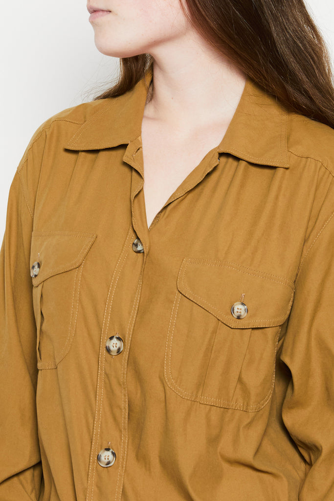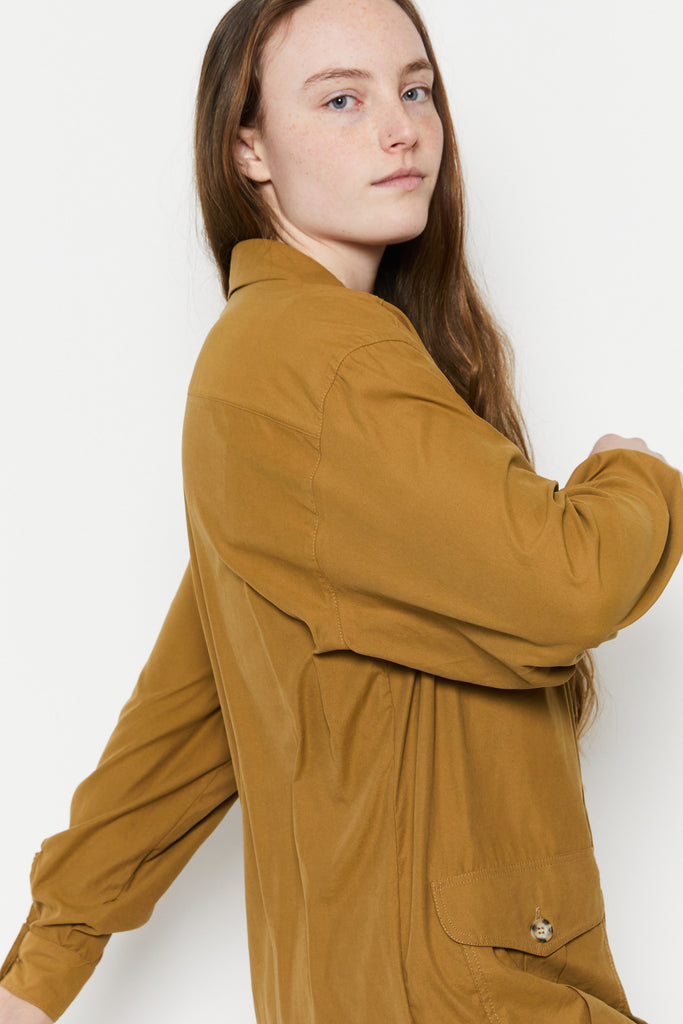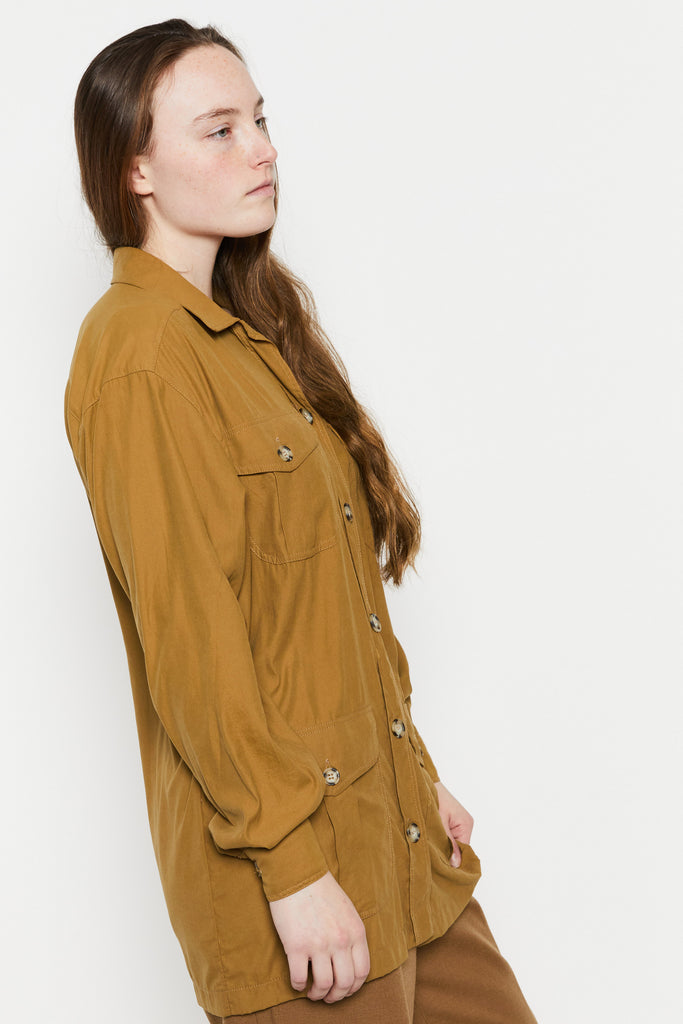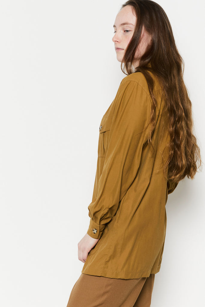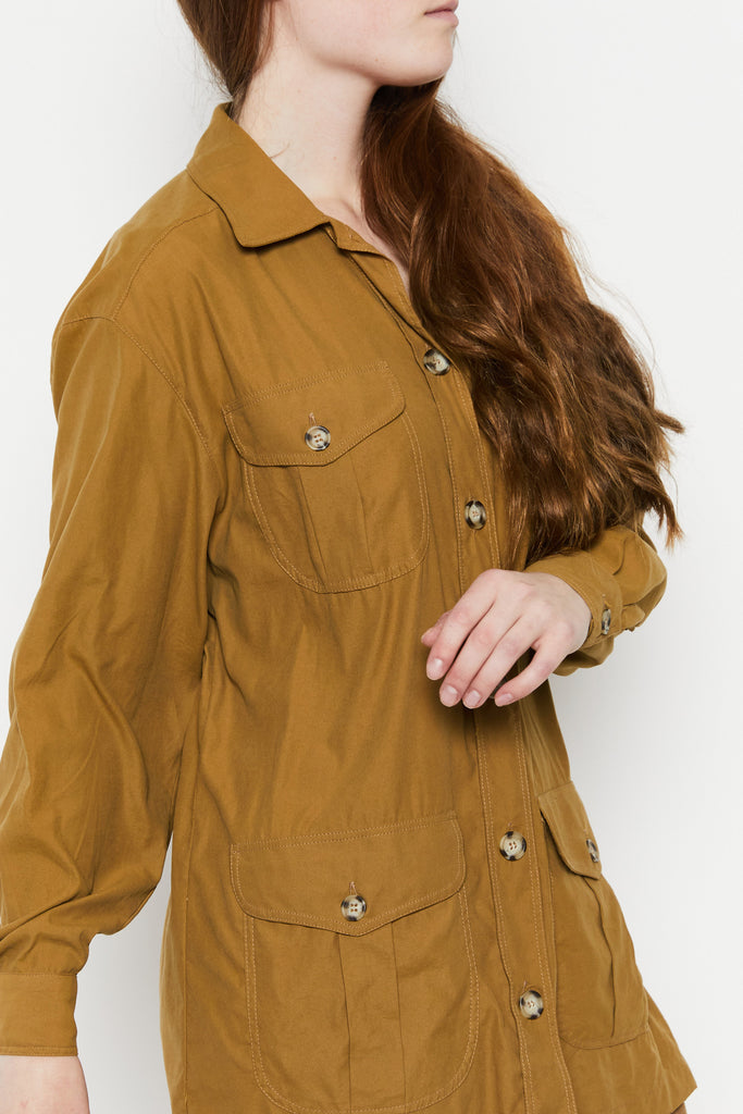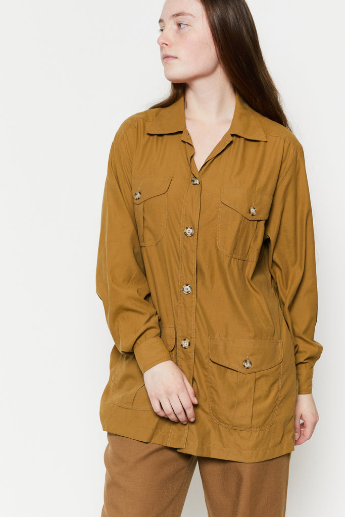 80s Tan Silk Safari Tunic L