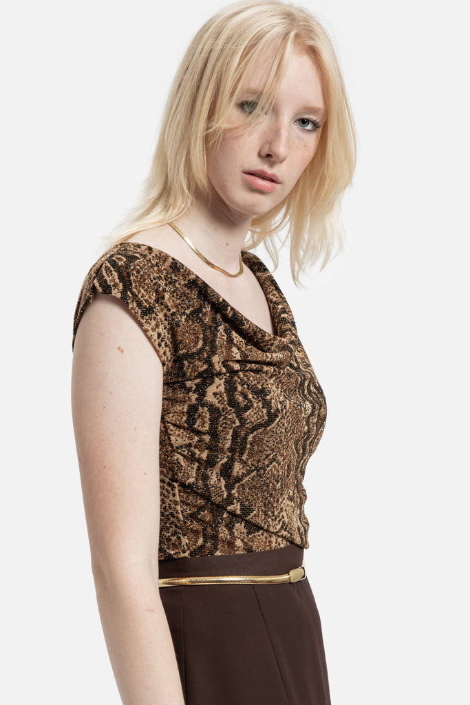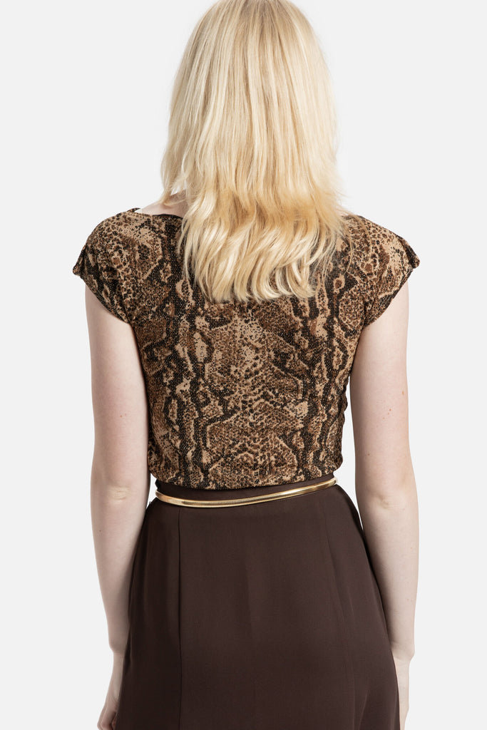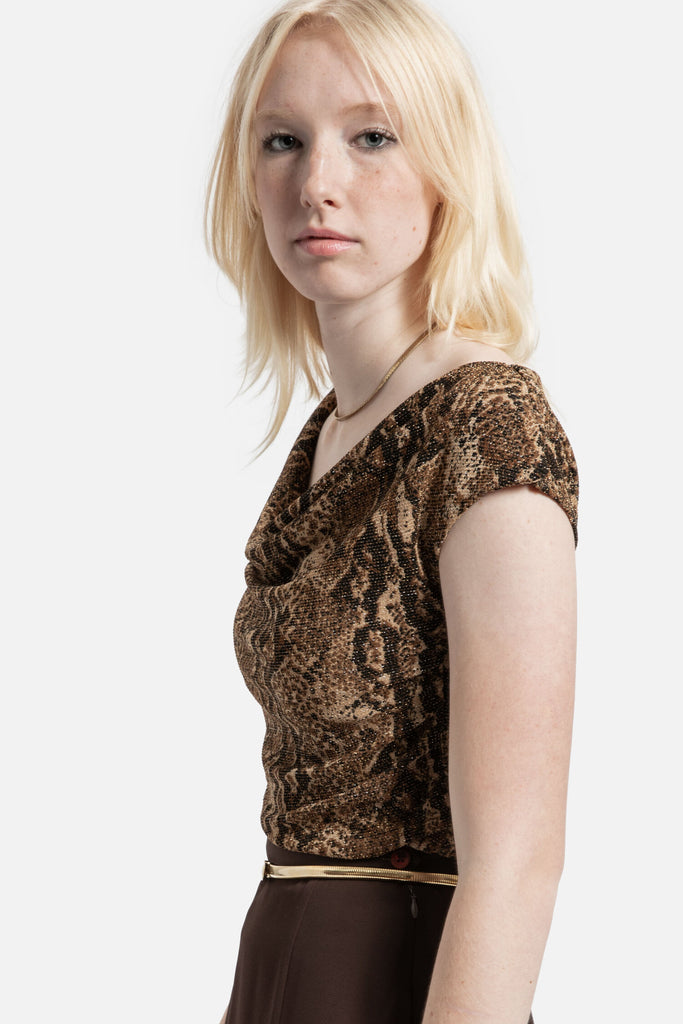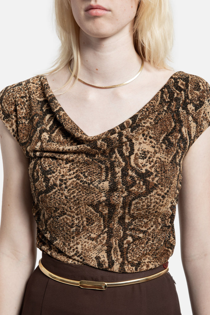 90s Metallic Lurex Slinky Snake Print Top S/M