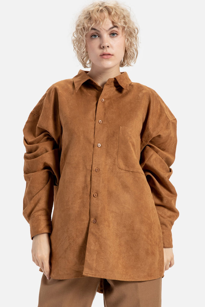 MATERIAL / Polyester, medium weight woven sueded microfiber fabric