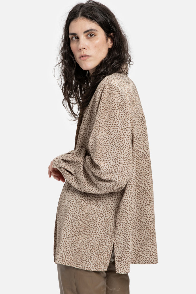 FIT / Would look great on smaller sizes for an oversized fit. For reference, model is 5’9 and wears a size 2/4.