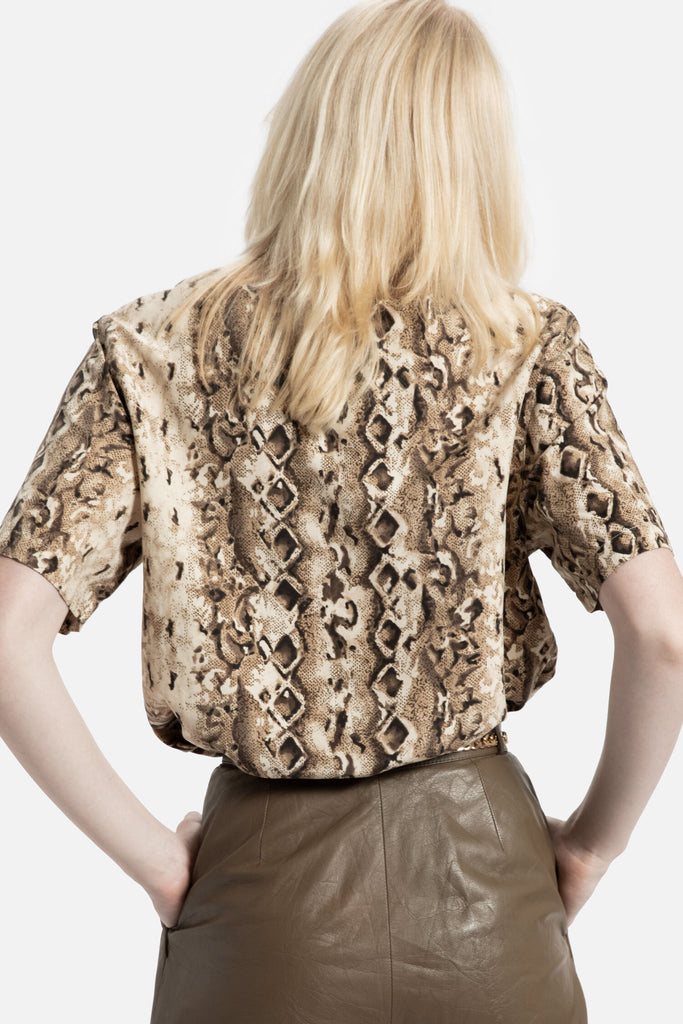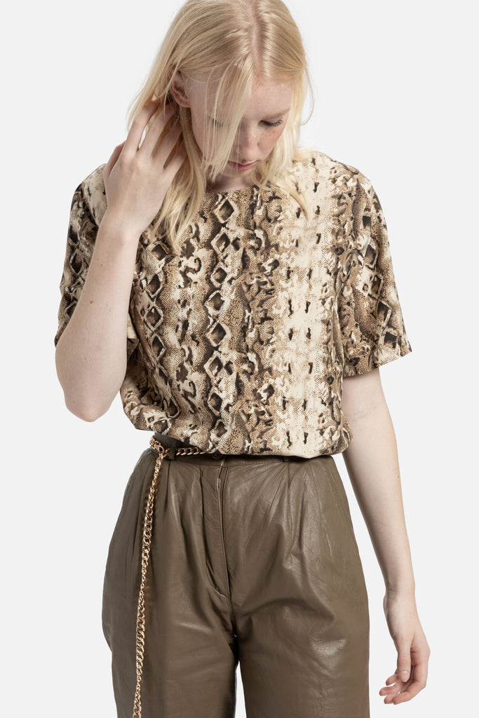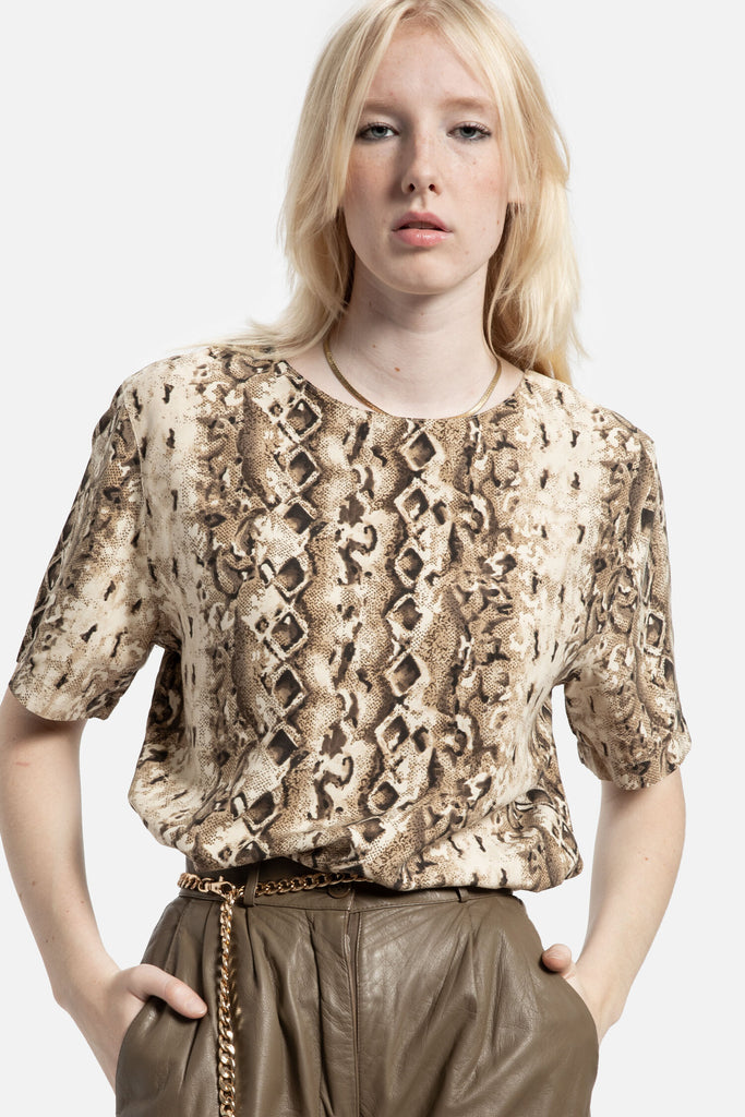 90s Taupe Snake Print Top L
